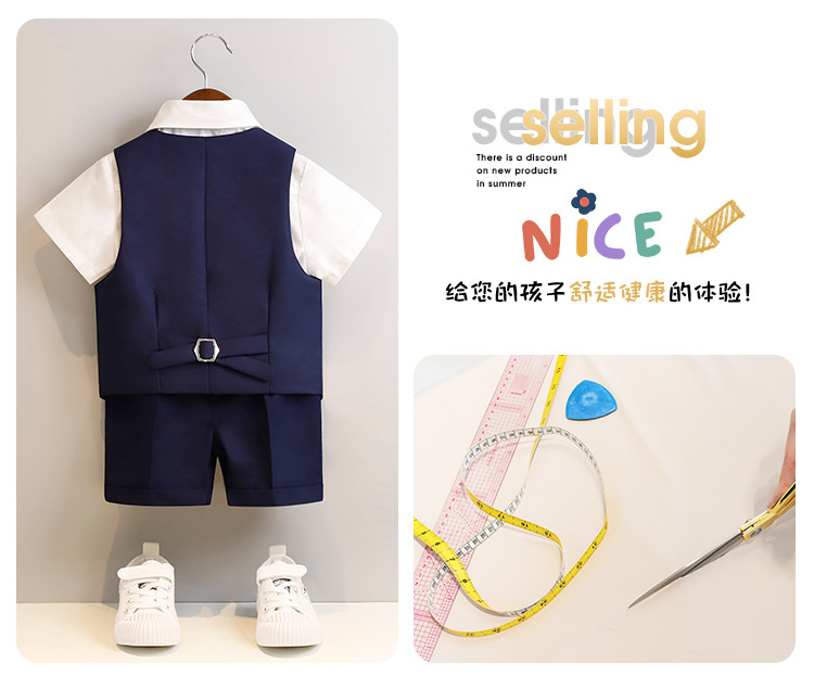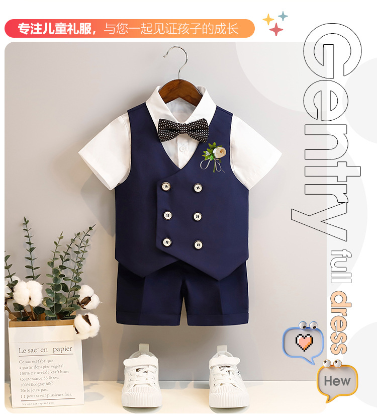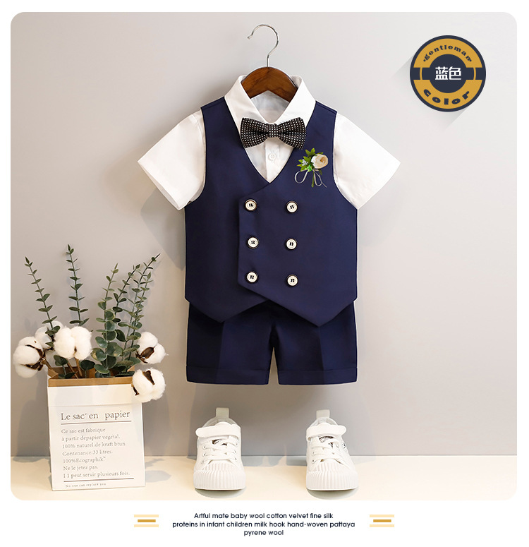 • 네이비 5 종 세트 (조끼 + 반바지 + 반팔 셔츠 + 코사지 + 나비 넥타이)
