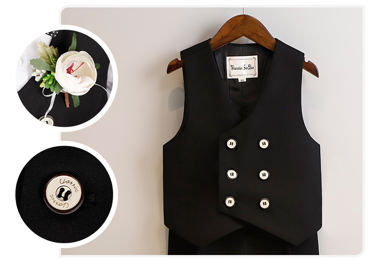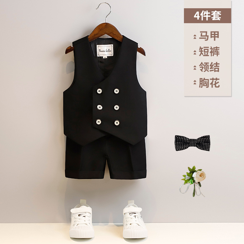 • 블랙 4 종 세트 (조끼 + 반바지 + 코사지 + 나비 넥타이)