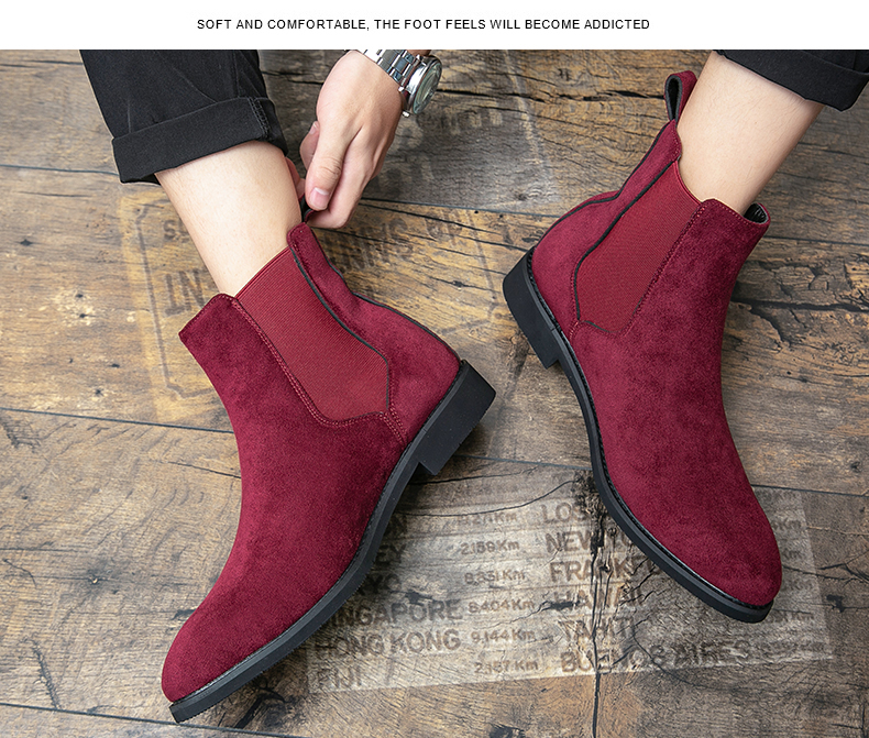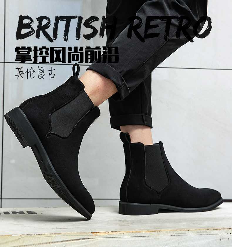 첼시 부츠 가을과 겨울 남성 캐주얼 하이탑 가죽 신발 영국 인기 청소년 유행 부츠 마틴 가죽 부츠