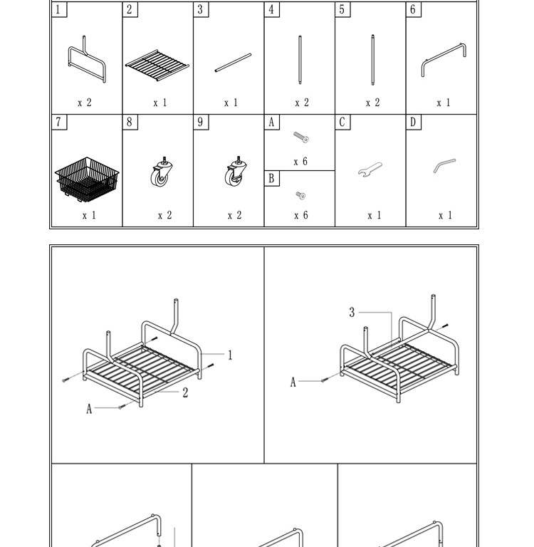 • 바구니 카트 + 옷 레일 + 블랙 휠