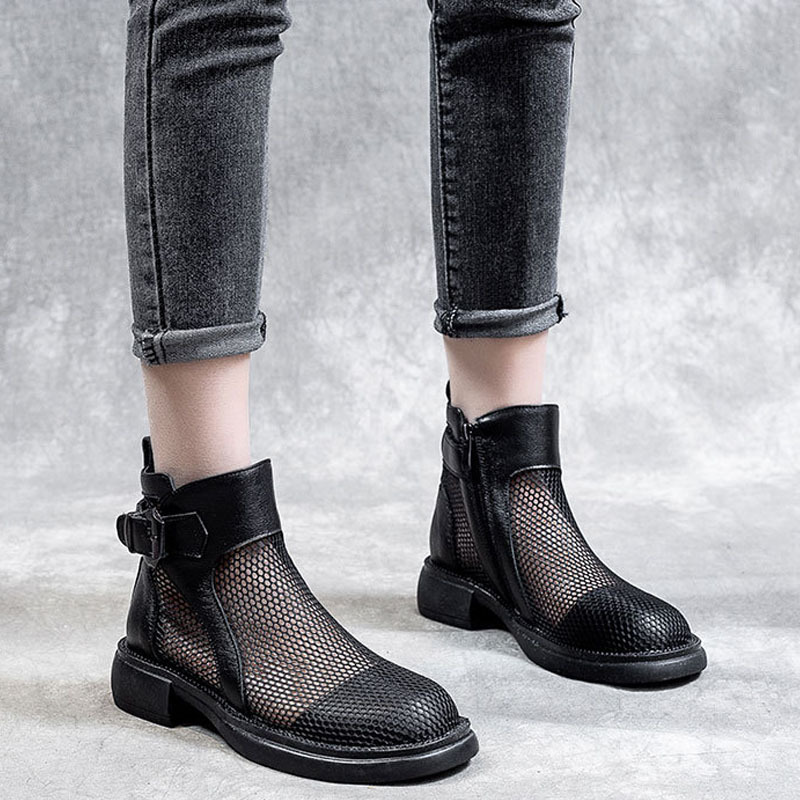 도매 여름 그물 부츠 여성의 통기성 메쉬 얇은 탑 레이어 소가죽 마틴 부츠 중공 메쉬 캐주얼 여름 부츠스토어 가기