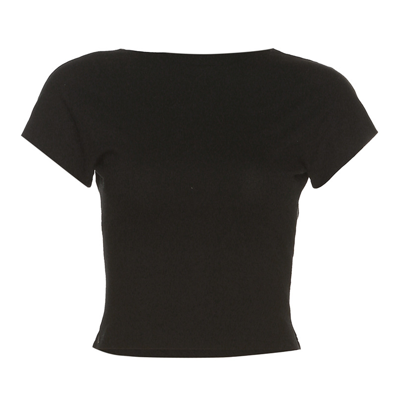 INS 크로스 보더 유럽과 미국 스타일 2023 봄과 여름 새로운 여성의 단색 슬림 핏 패션 라운드 넥 섹시한 등이없는 티셔츠 여성용스토어 가기