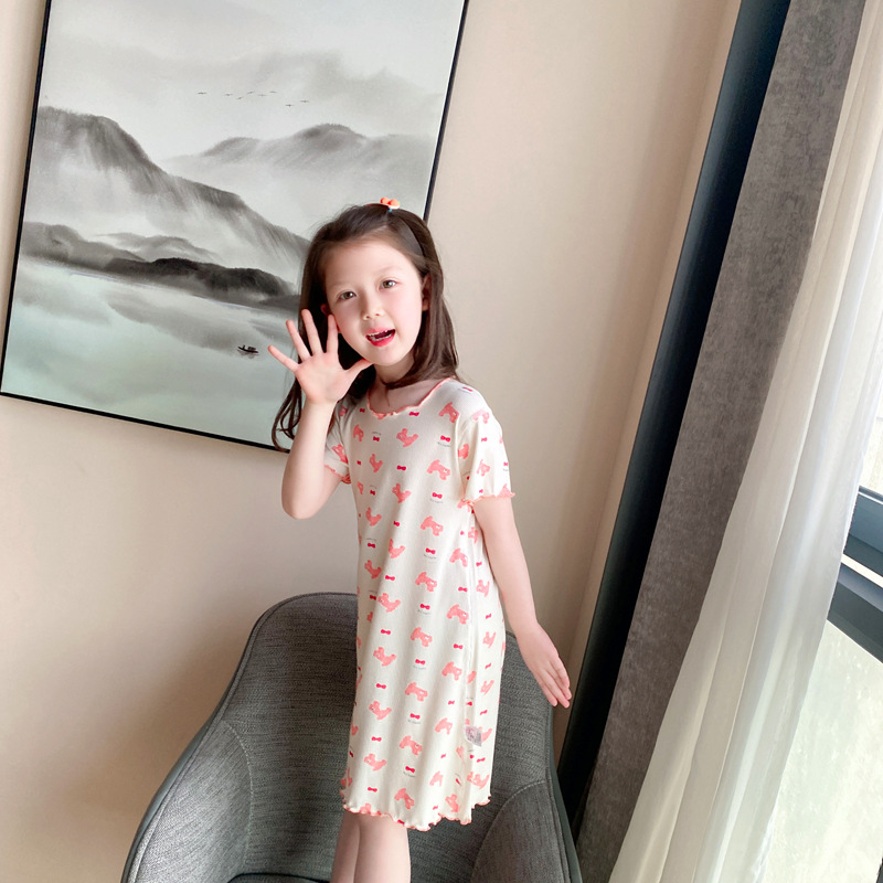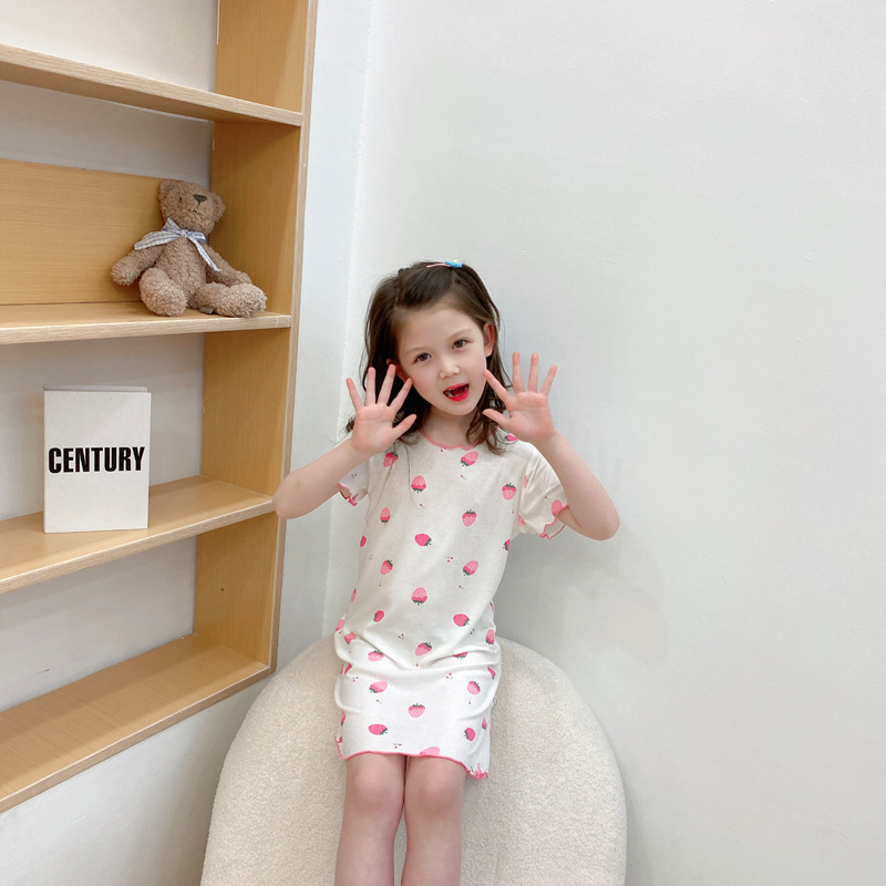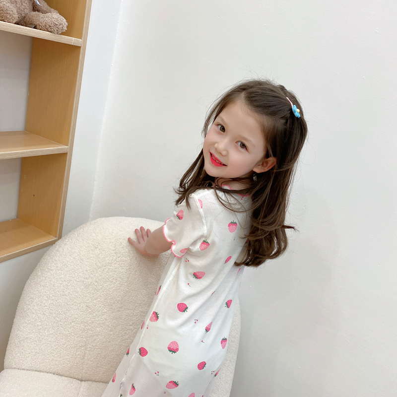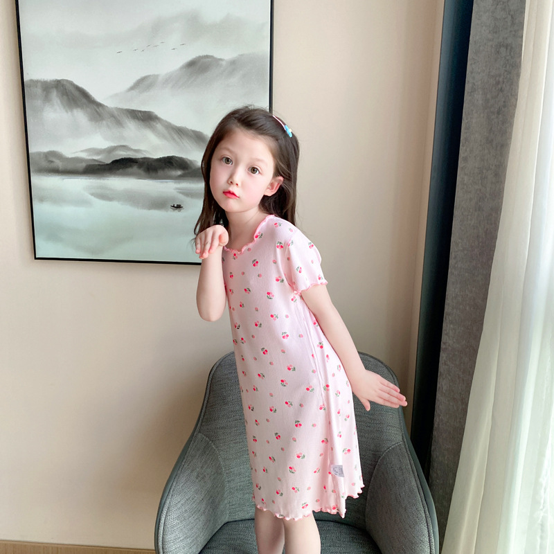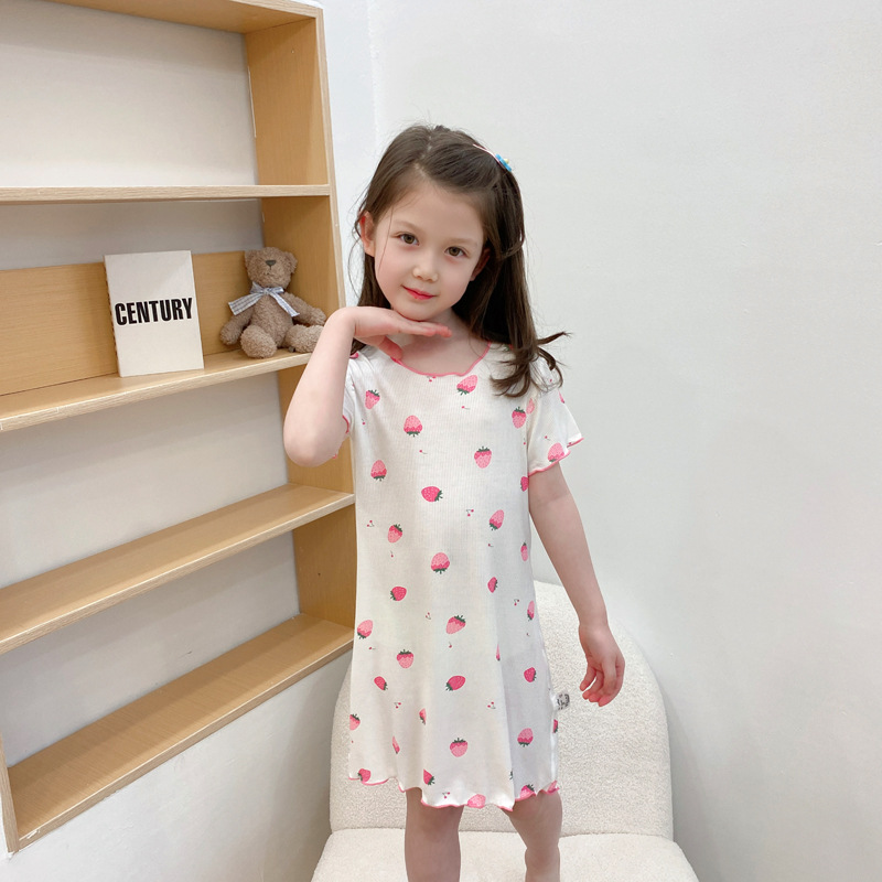Y 한국 스타일 여아 모달 잠옷 아기 뼈없는 어린이 여름 얇은 에어컨 옷 아기 소녀 드레스스토어 가기