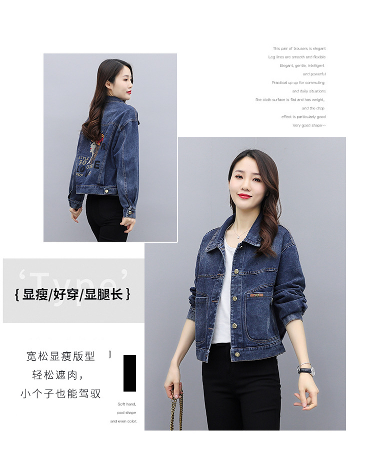 2025 봄 신상 한국 스타일 슬리밍 복고풍 자수 꽃무늬 데님 숏 재킷 탑 여성용 트렌디 데님 재킷스토어 가기