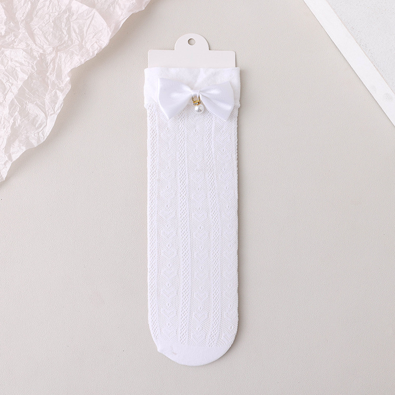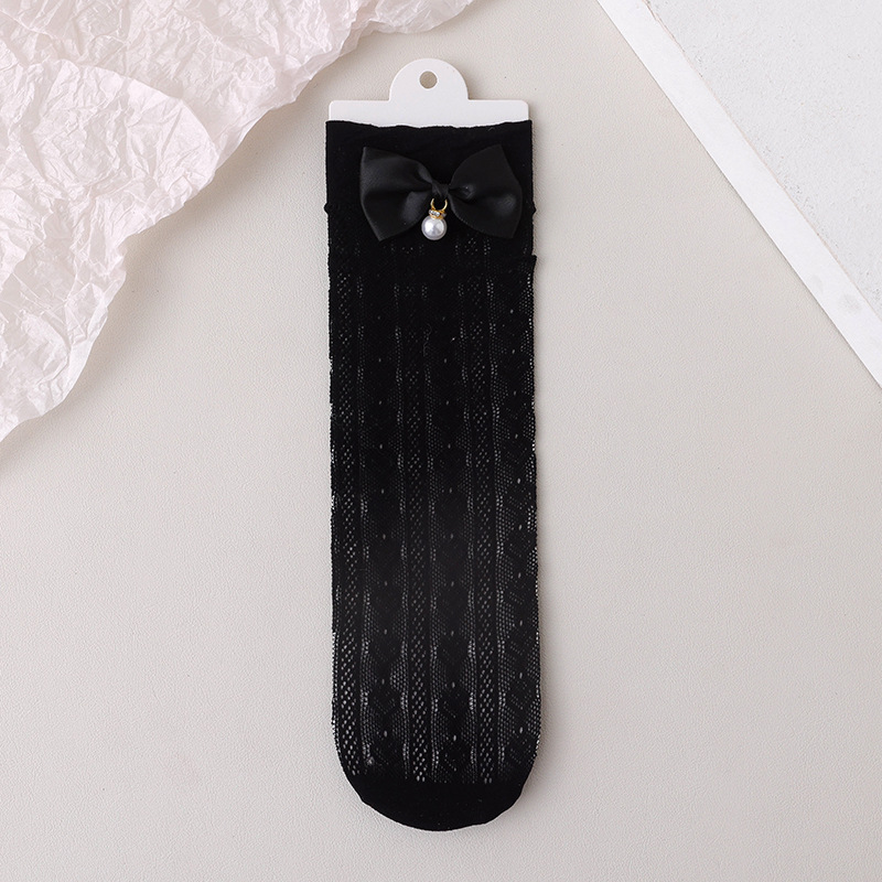 2023 여름 새로운 얇은 사랑 메쉬 구슬 활 어린이 튜브 양말 소녀 송아지 양말