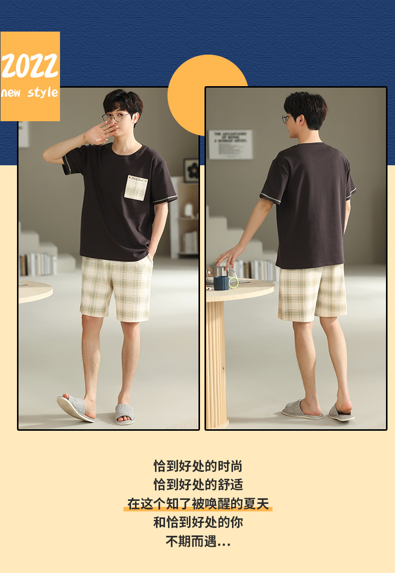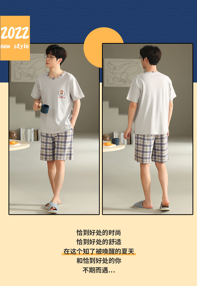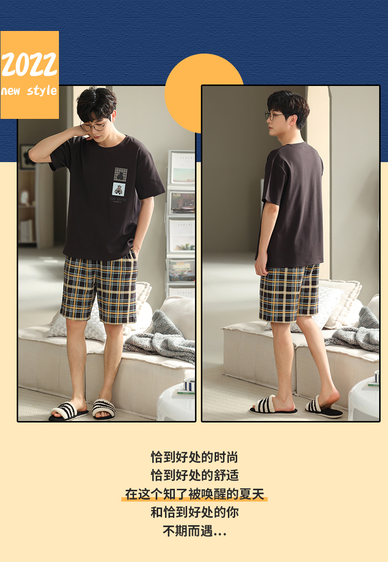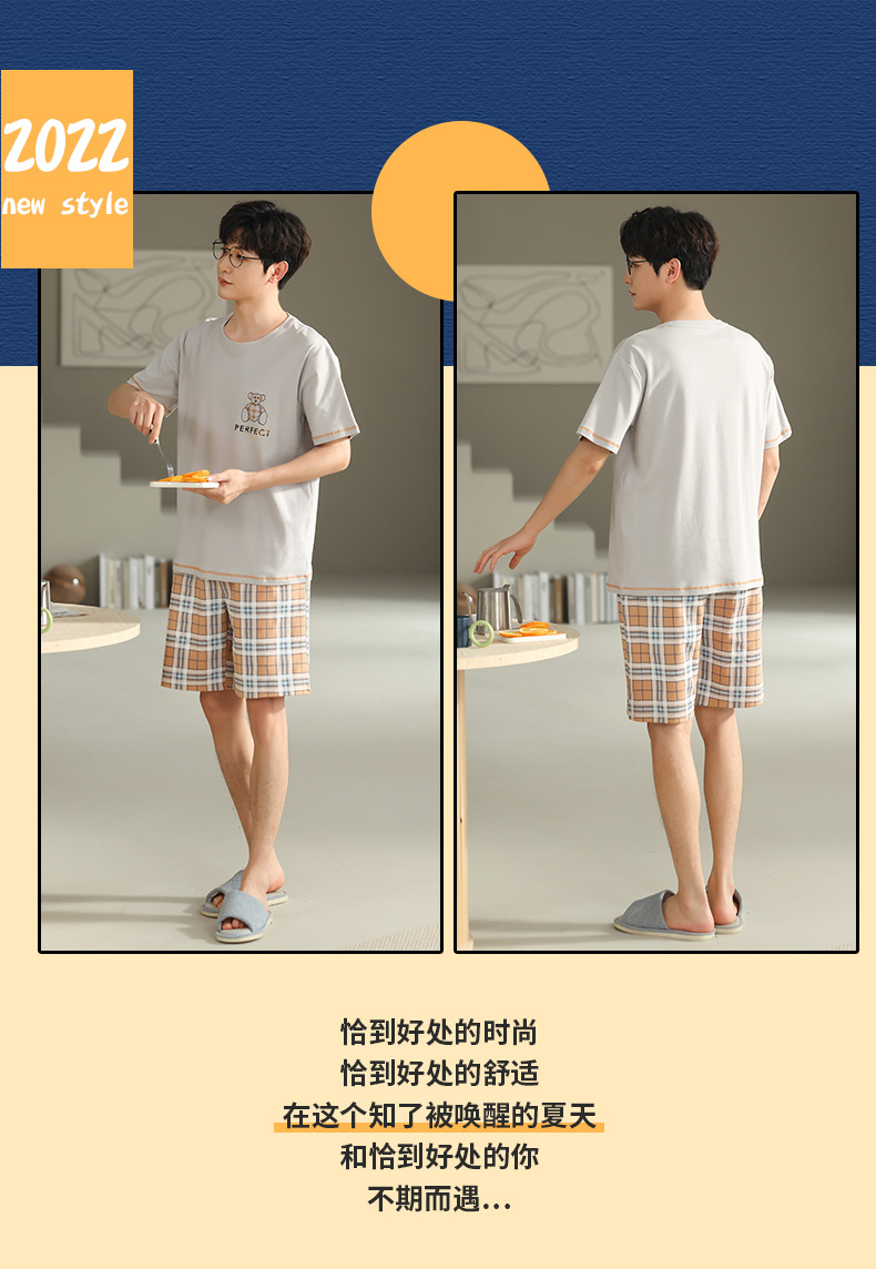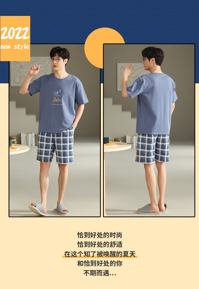 Yingzitong 여름 순면 잠옷 남성 캐주얼 홈 반팔 반바지 투피스 세트 라이브 그룹 구매 가정 의류스토어 가기