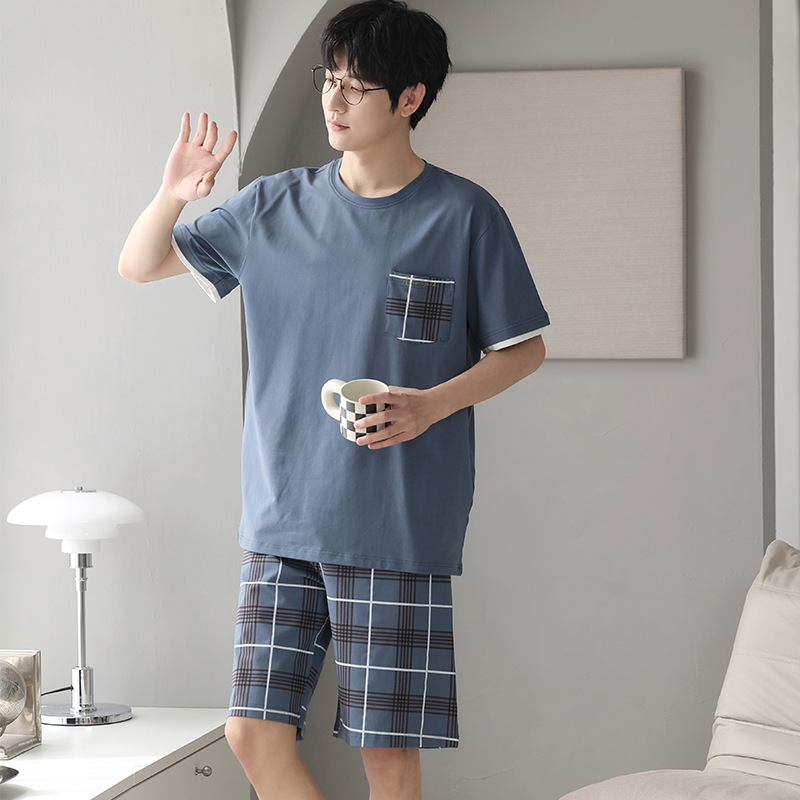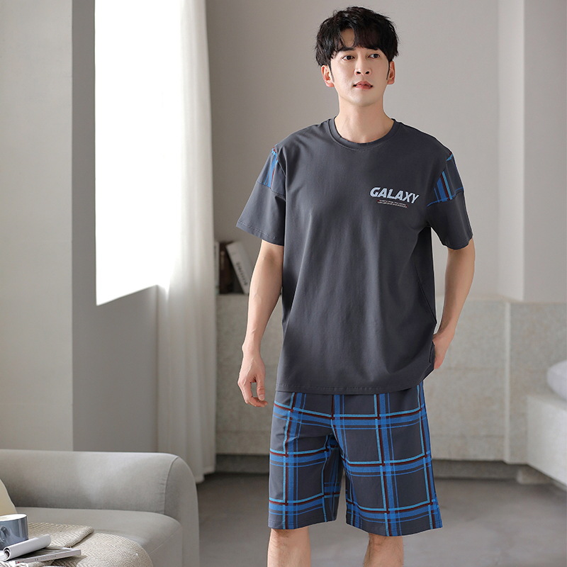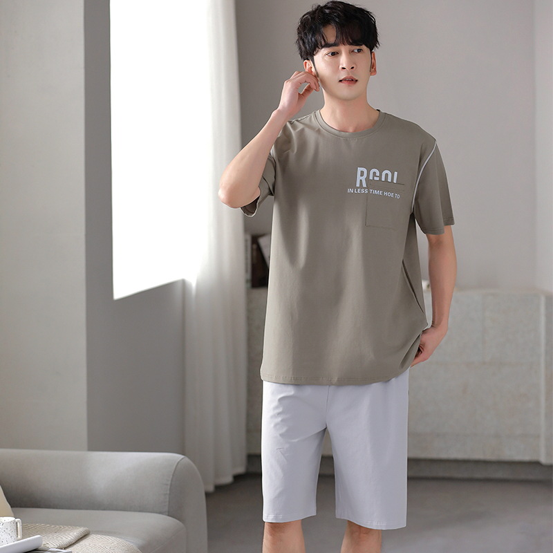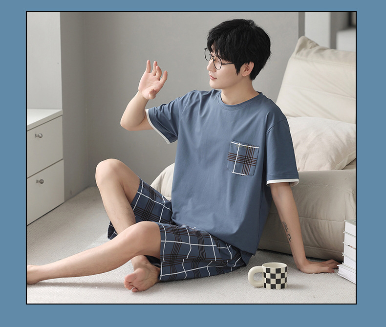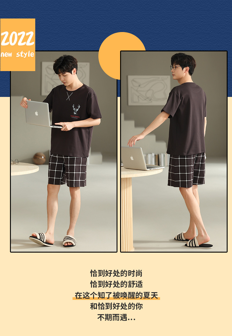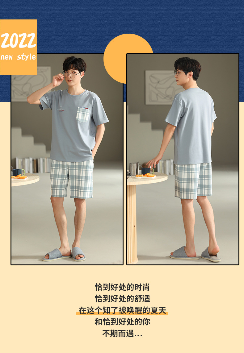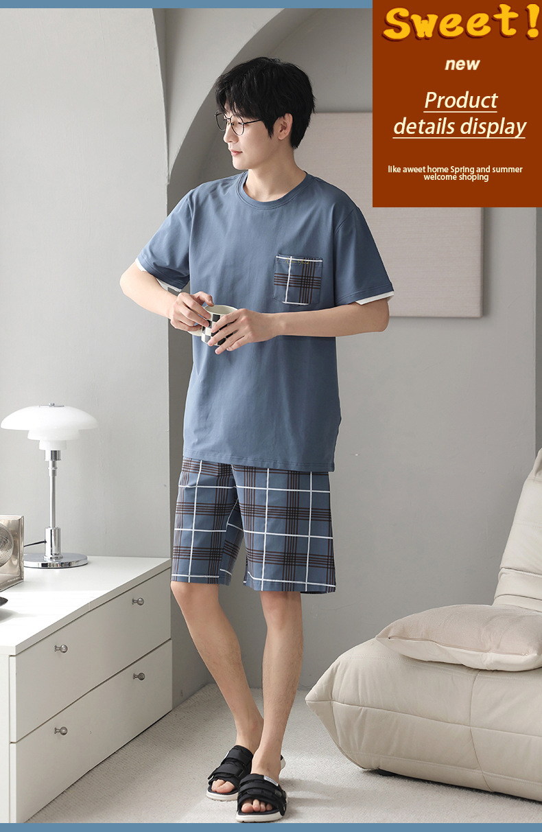 Yingzitong 여름 순면 잠옷 남성 캐주얼 홈 반팔 반바지 투피스 세트 라이브 그룹 구매 가정 의류스토어 가기