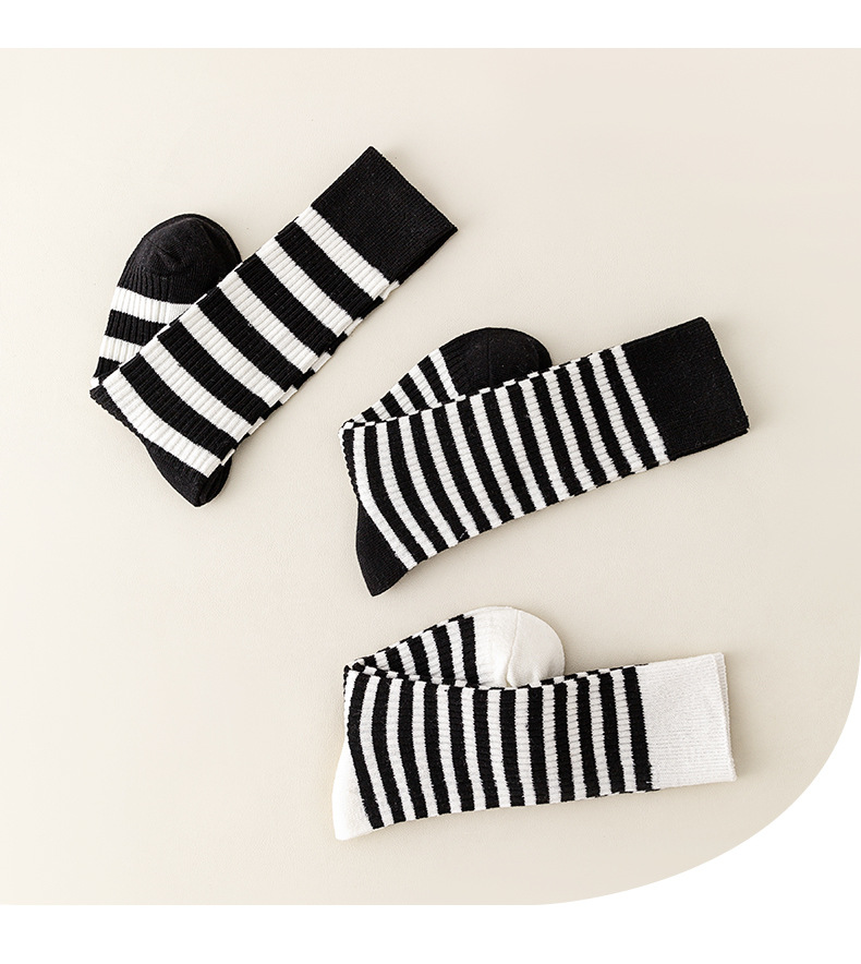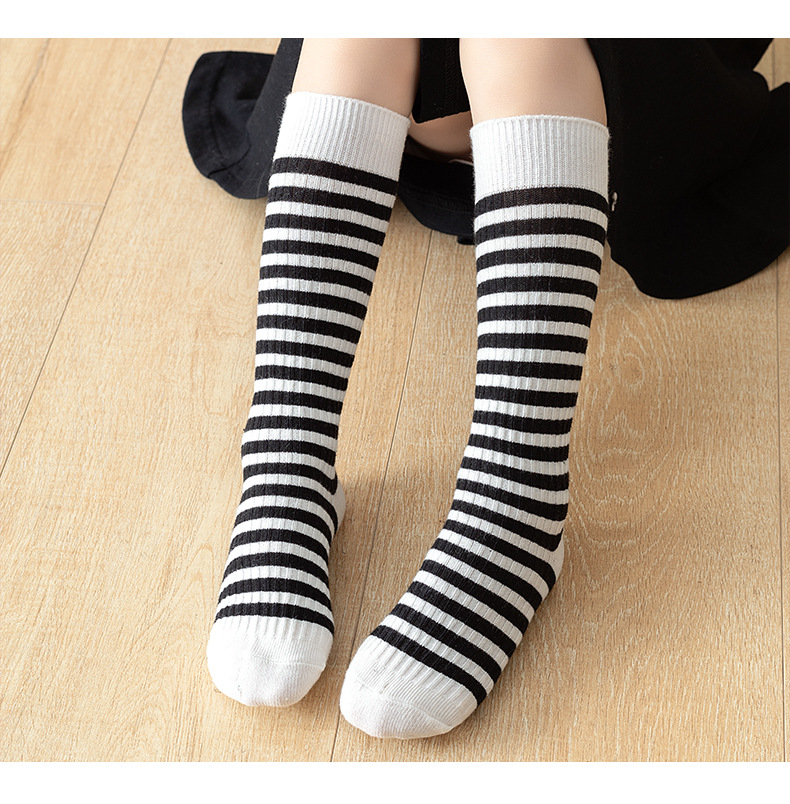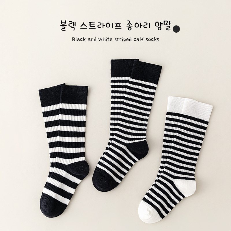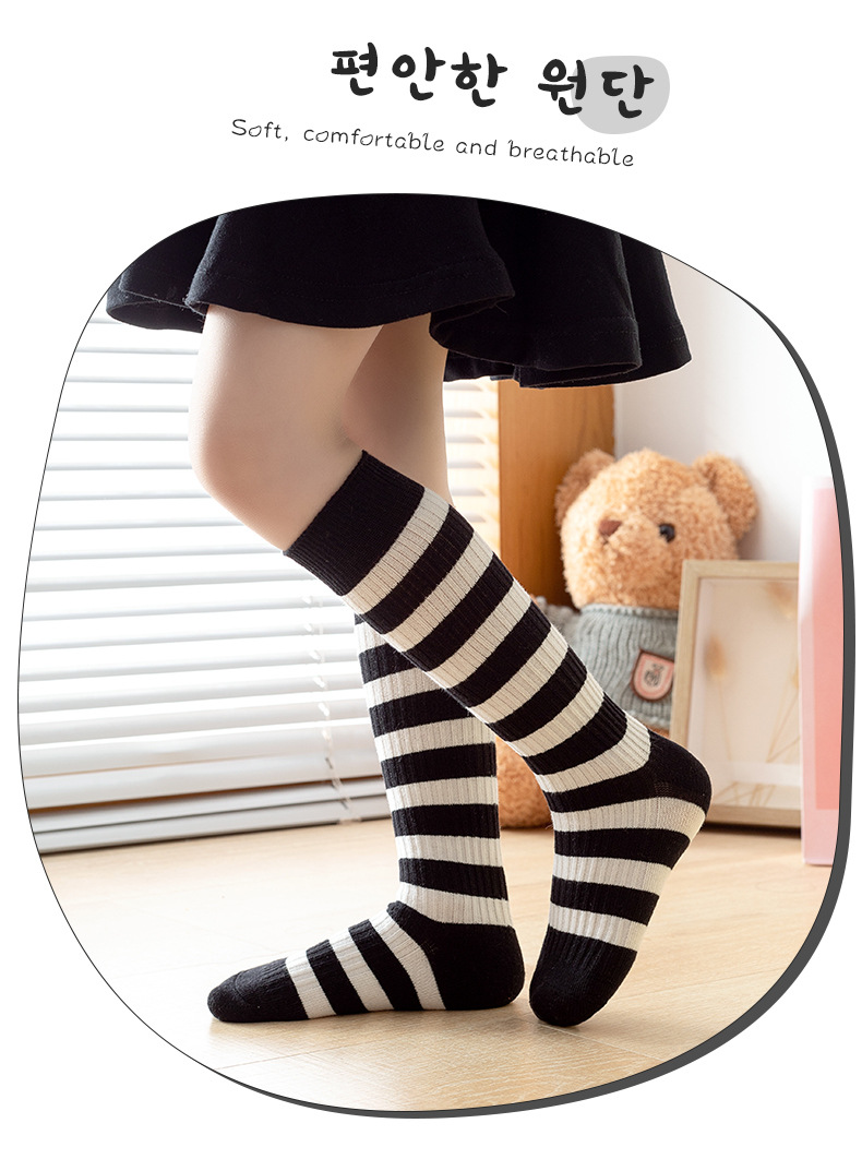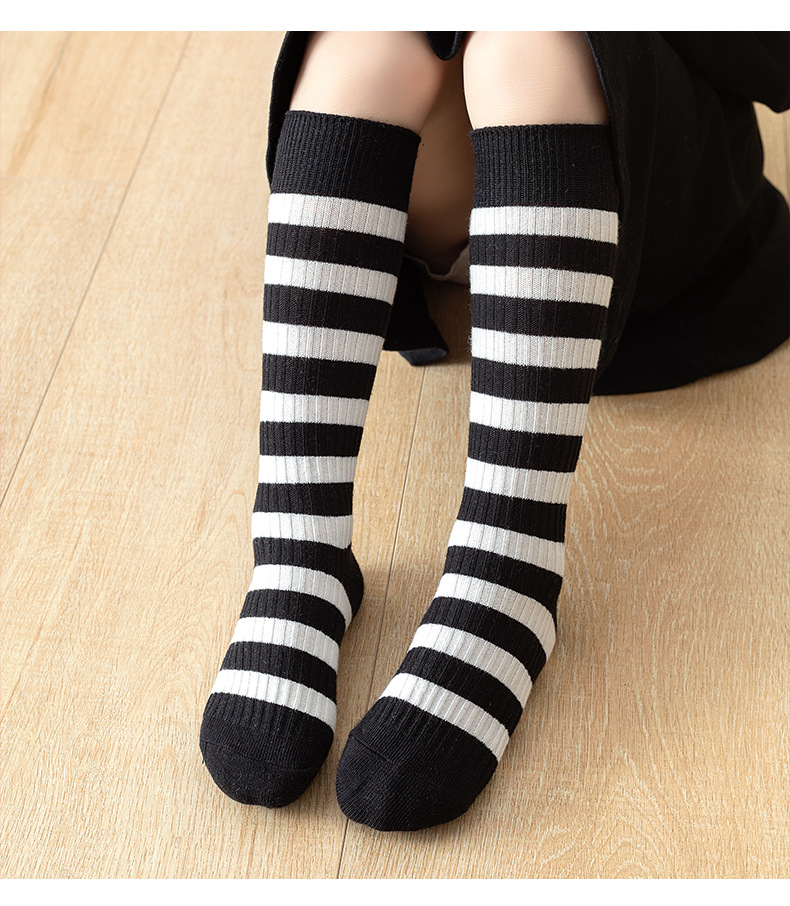 흑백 줄무늬 소년과 소녀 높은 스타킹 봄과 가을 빗질 된 면 얼룩말 어린이 양말 대학 스타일 아기 스택 양말