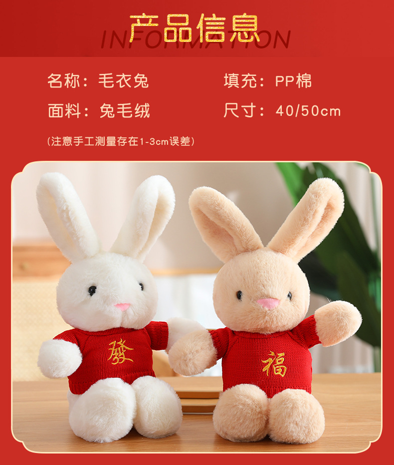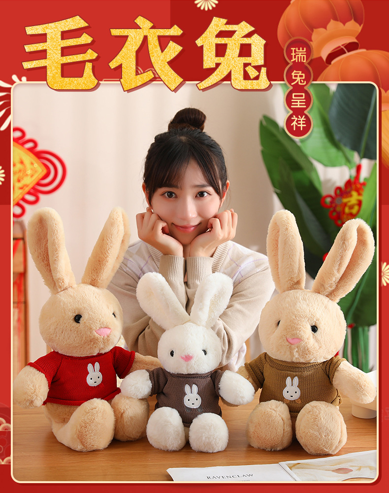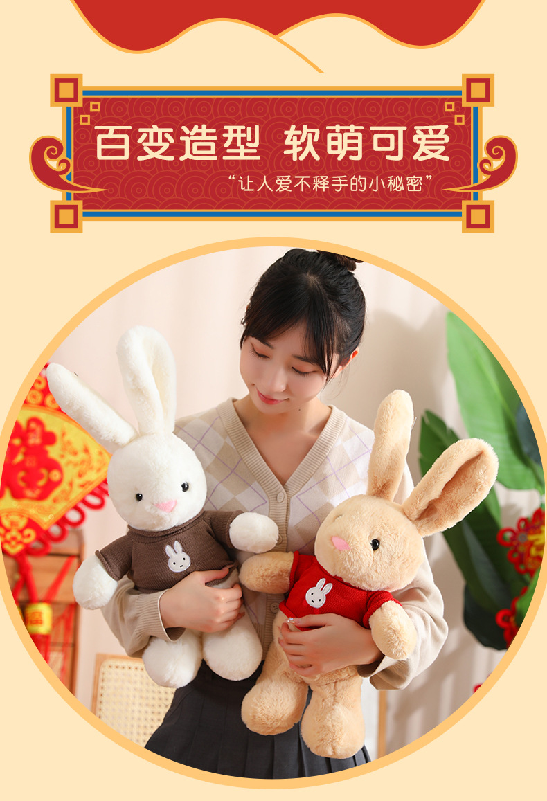 드레싱 토끼 2023 년 토끼 마스코트 좋은 토끼 인형 조디악 인형 잠자는 베개 스카프 인형스토어 가기