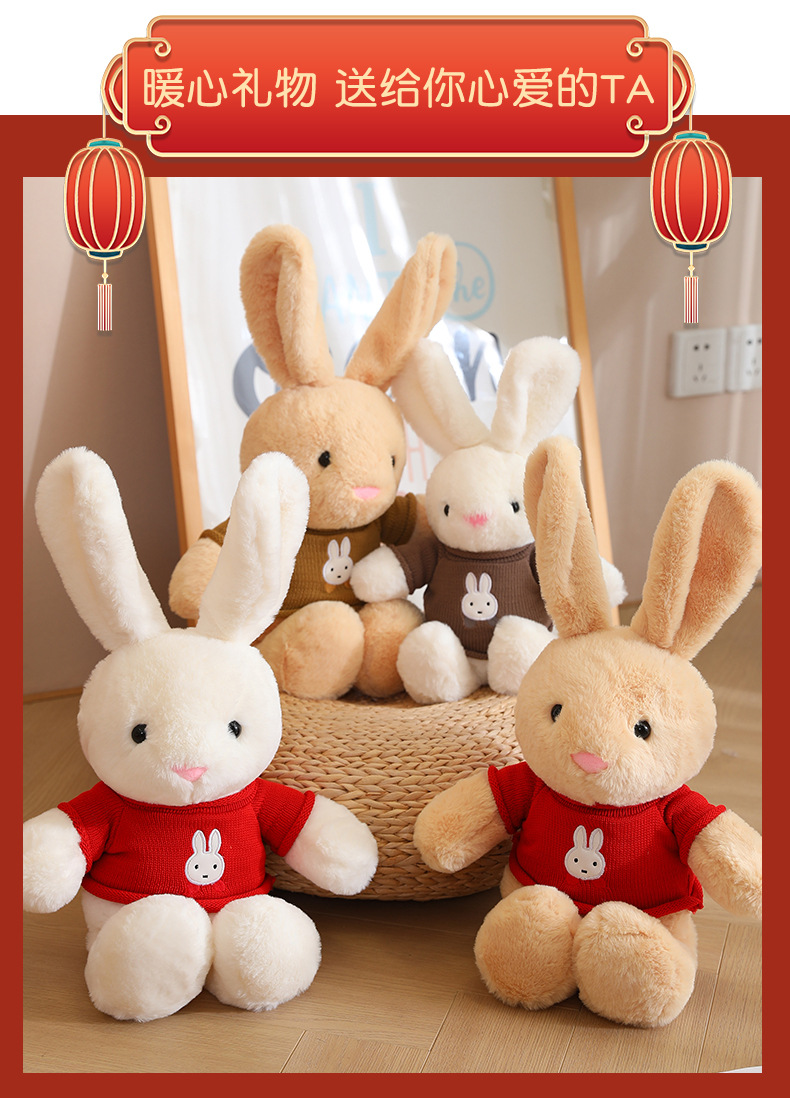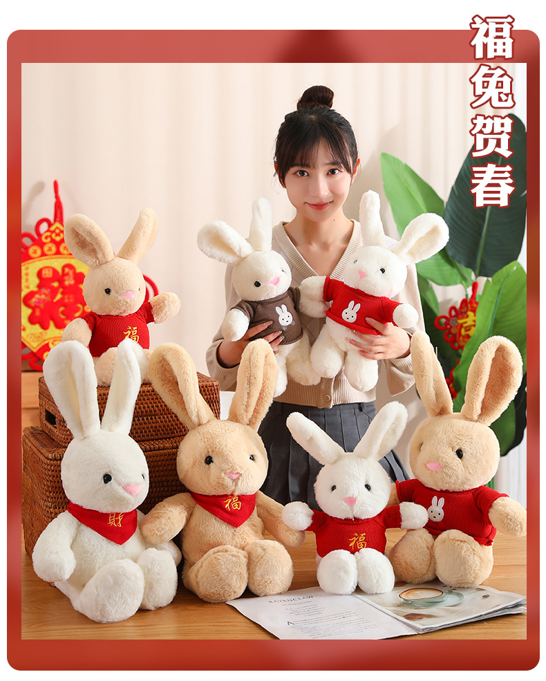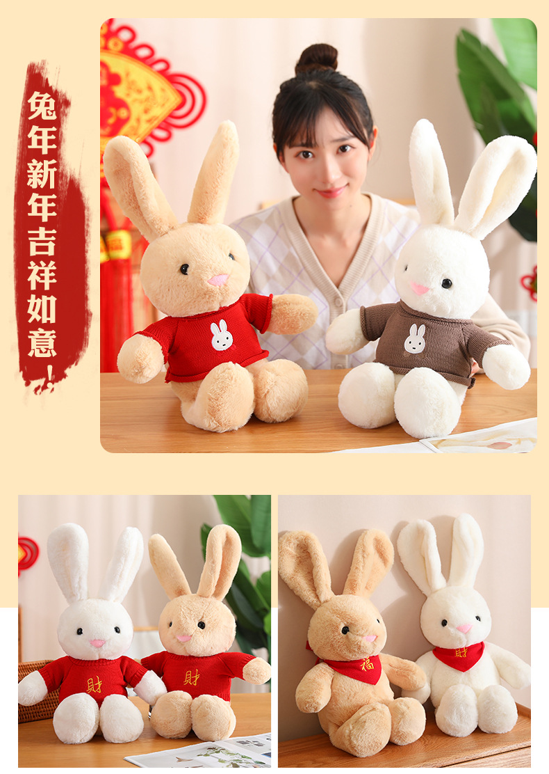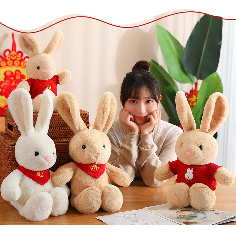 드레싱 토끼 2023 년 토끼 마스코트 좋은 토끼 인형 조디악 인형 잠자는 베개 스카프 인형
