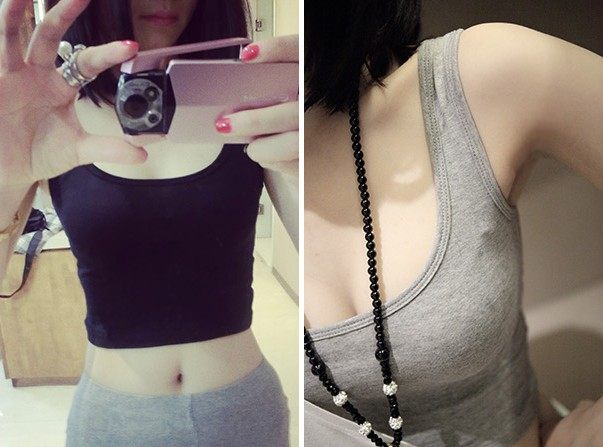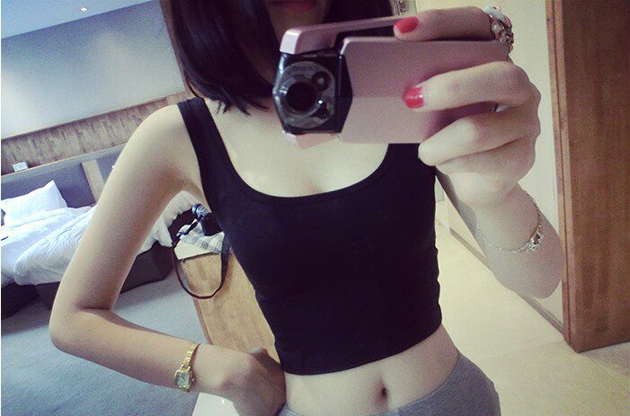 재고 캐미솔 여성용 여름 짧은 배꼽 노출 작은 캐미솔 I 자형 베이스 민소매 아우터 탑 (가슴 패드 포함)스토어 가기