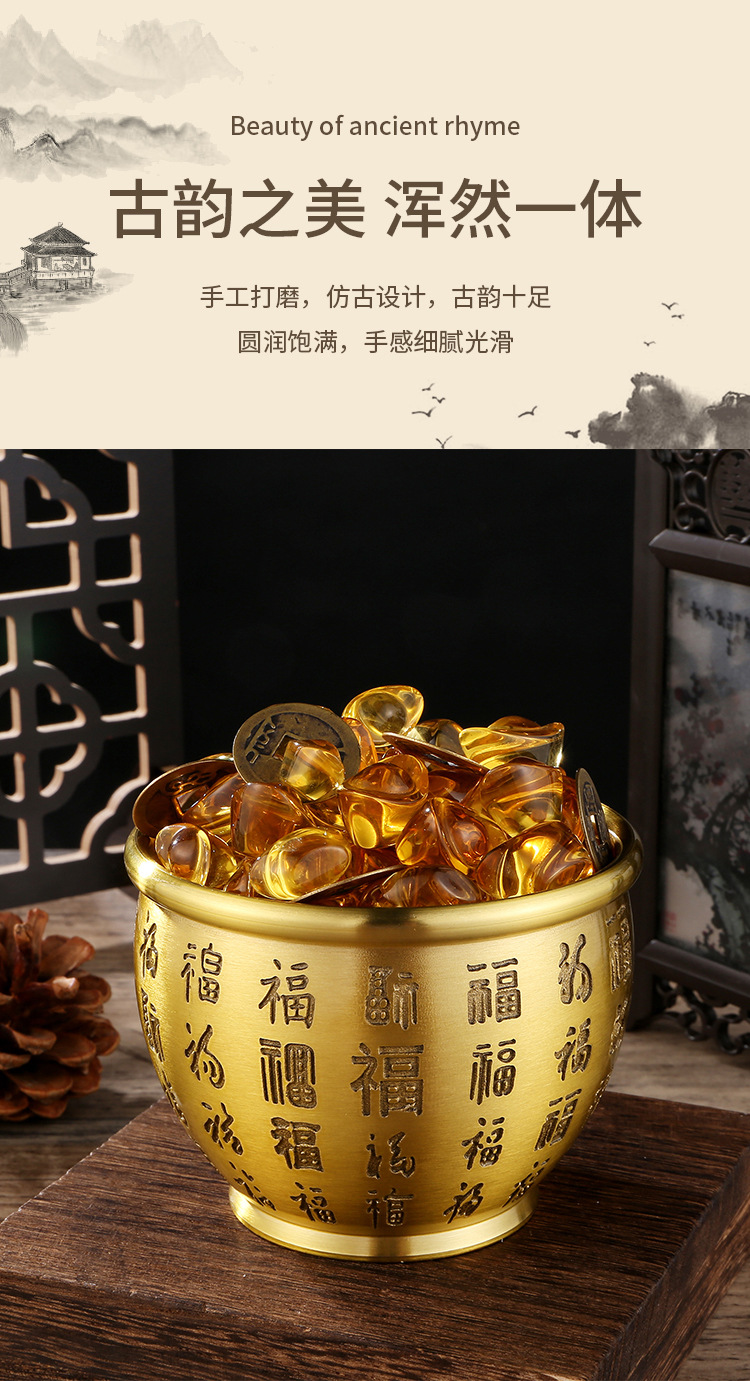 황동 레트로 황금 매미 Baifu 실린더 Cornucopia 홈 장식품 공예 조각 쌀 실린더 물 공급 컵 청동 도자기스토어 가기