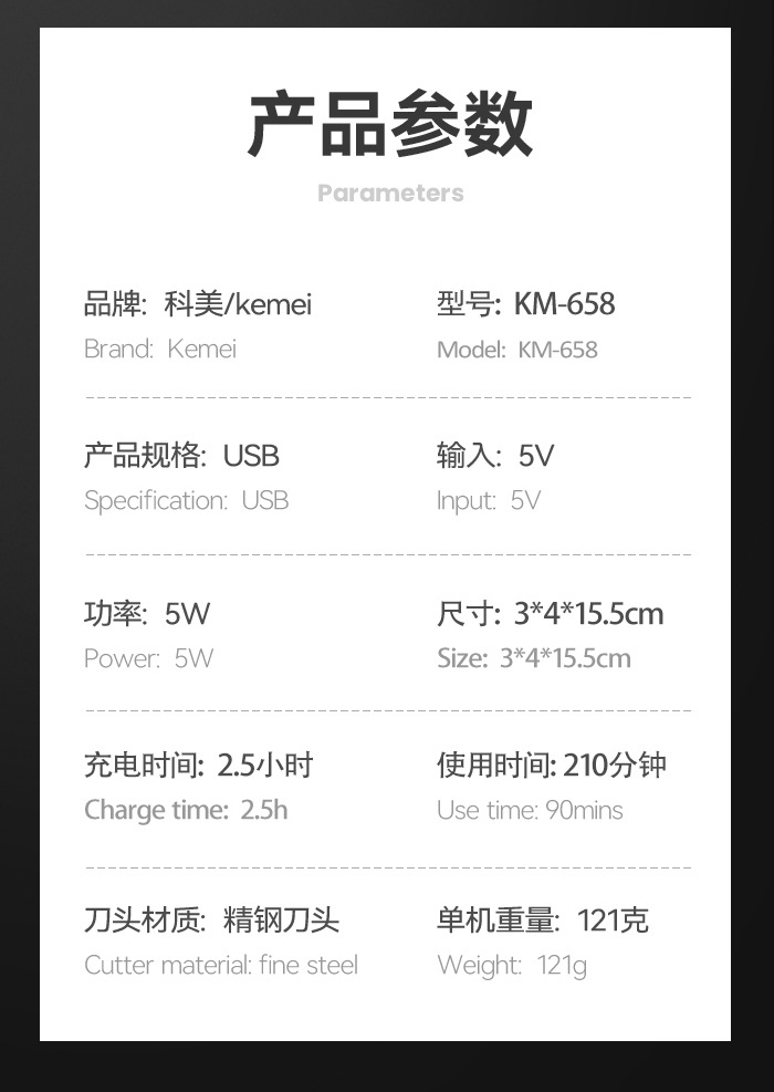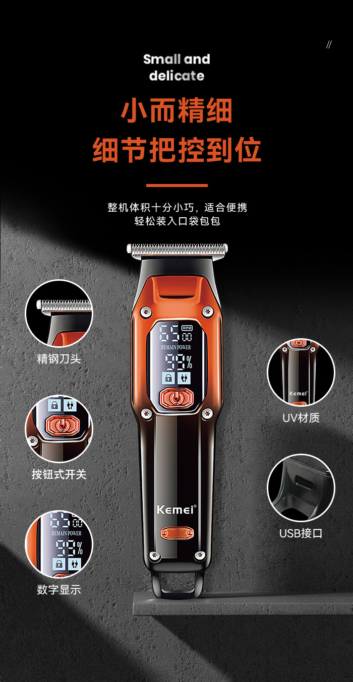 Comey 전기 클리퍼 KM-658 크로스 보더 새로운 LED LCD 디지털 디스플레이 USB 고속 충전 전기 클리퍼 미용실 헤어 클리퍼