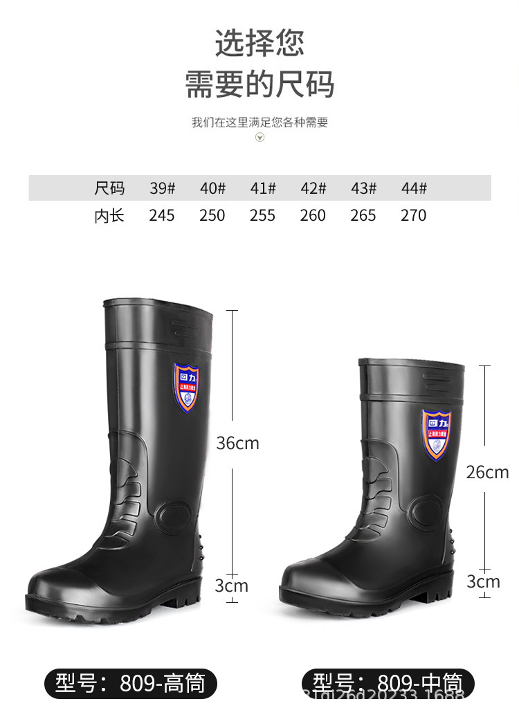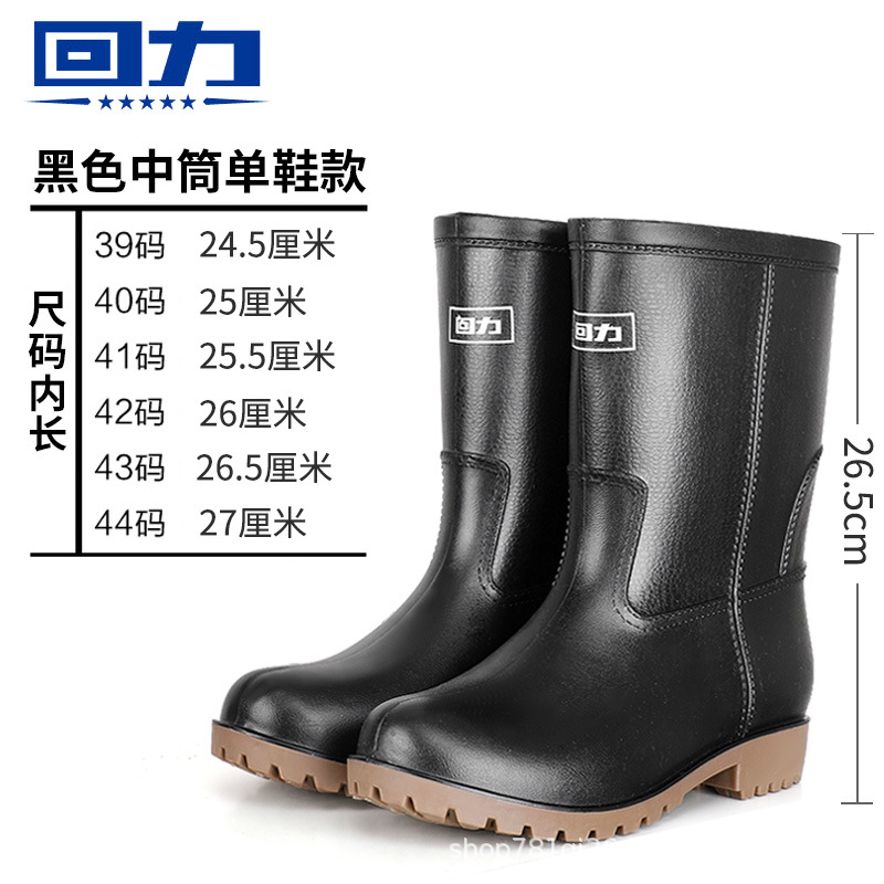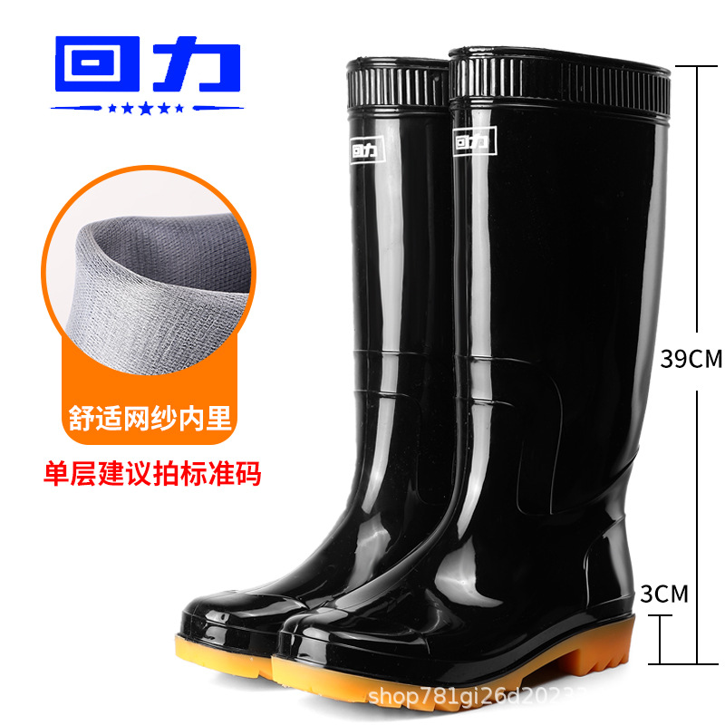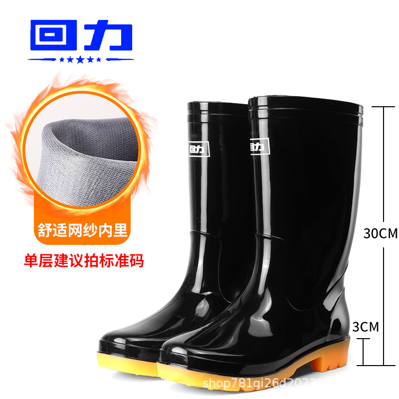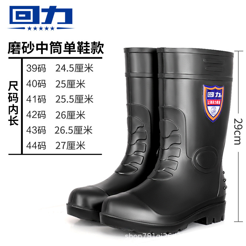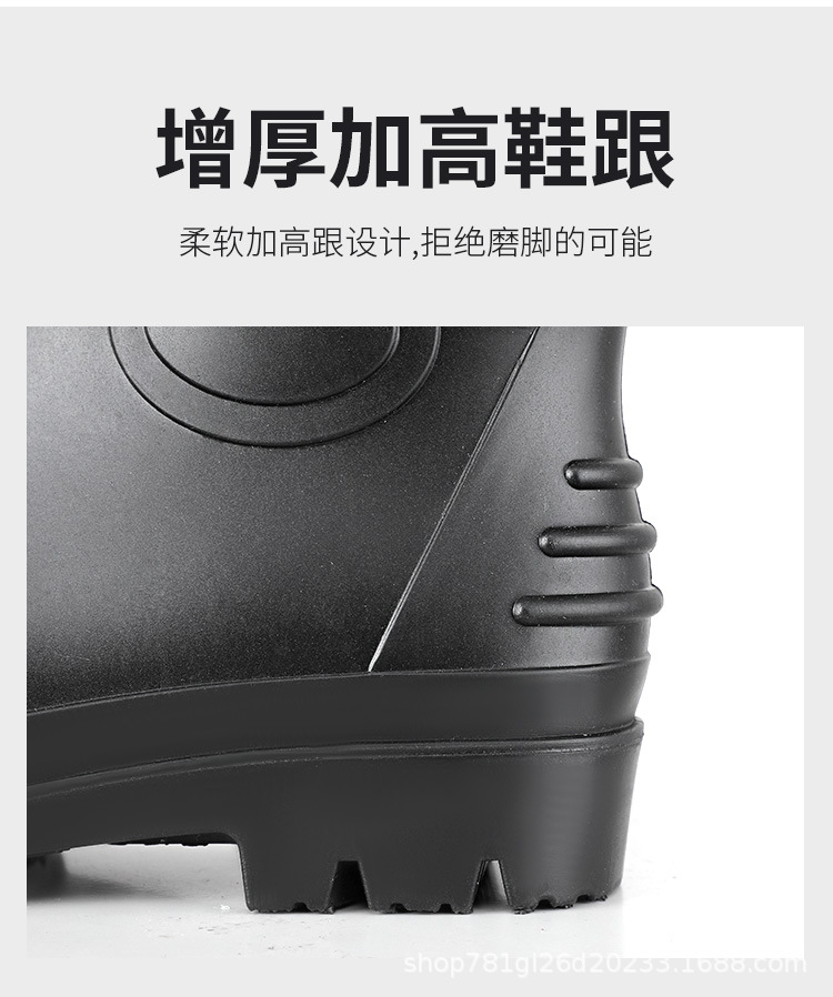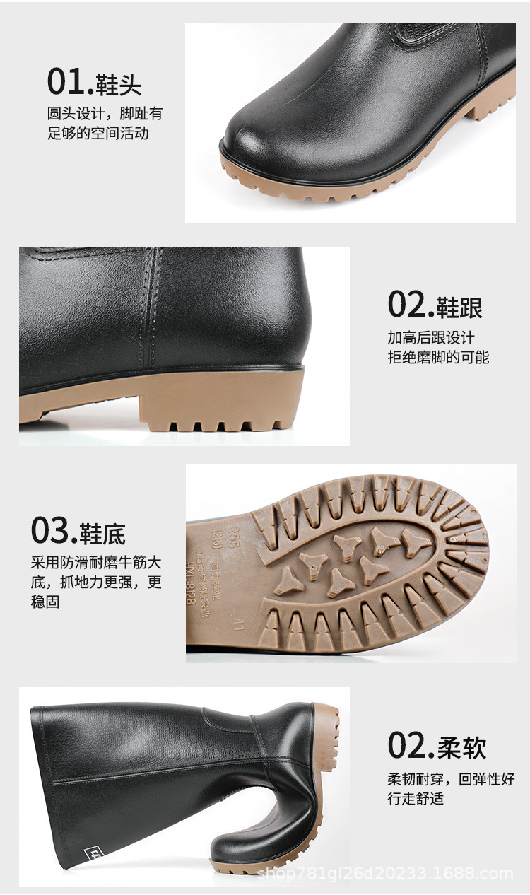 Huili 레인 슈즈 남성용 높은 장화 pvc 미끄럼 방지 쇠고기 바닥 노동 보호 검은 물 신발 807 중간 높이스토어 가기