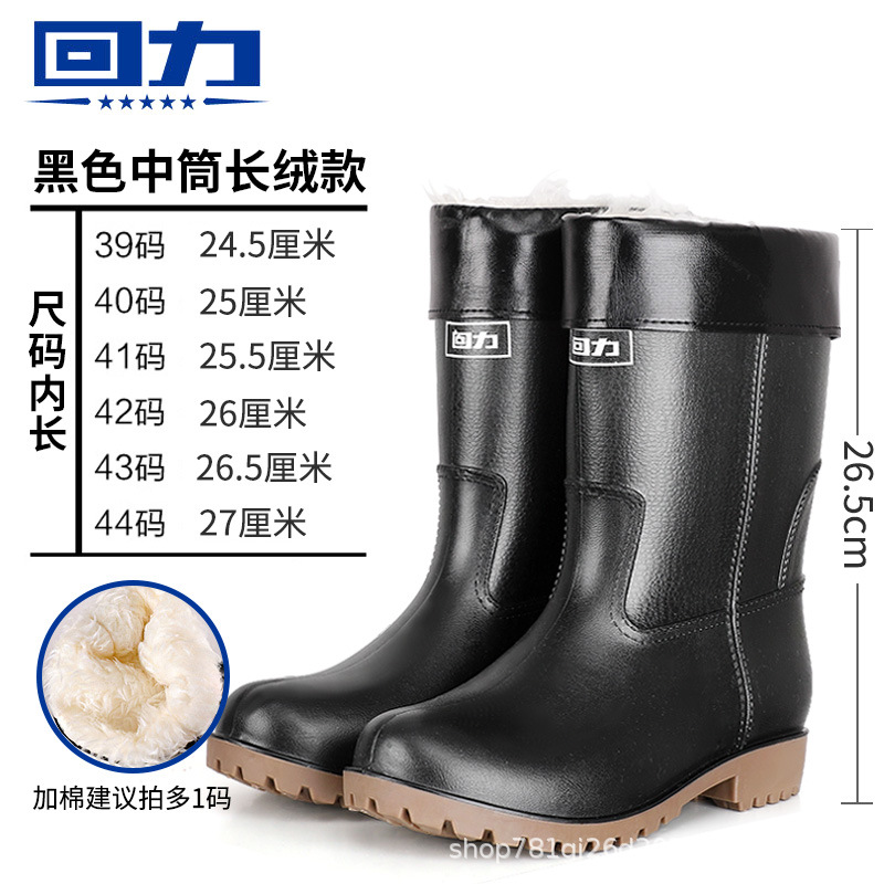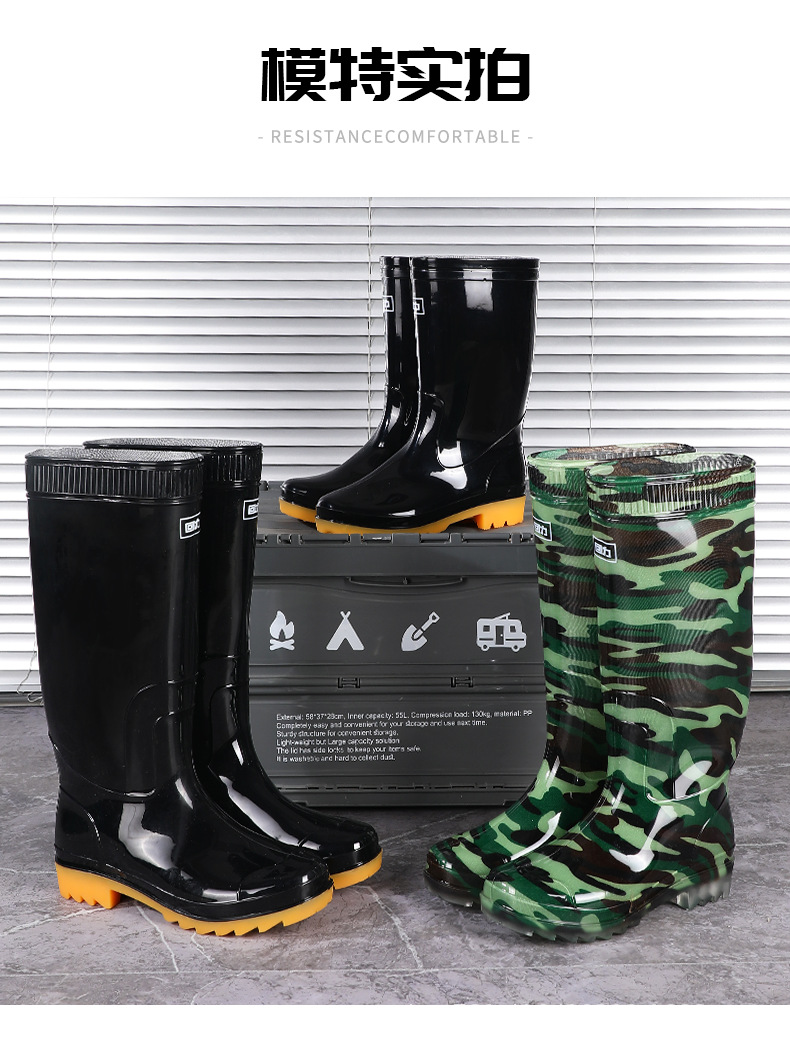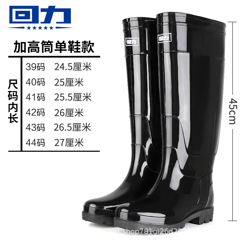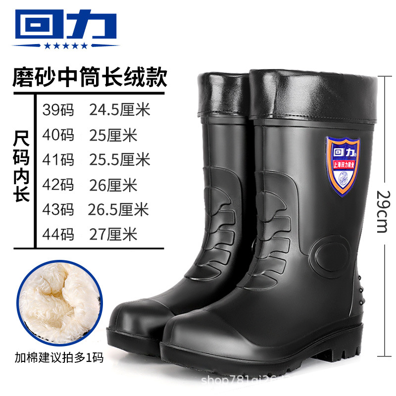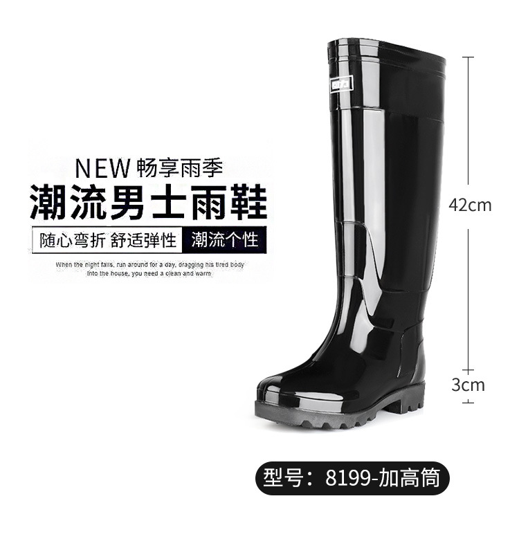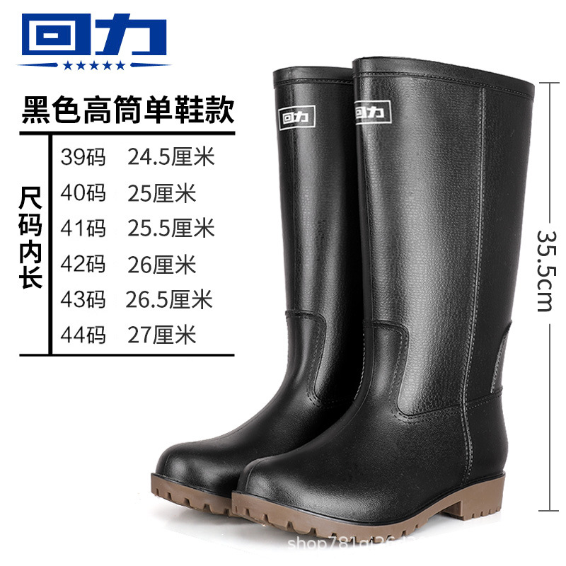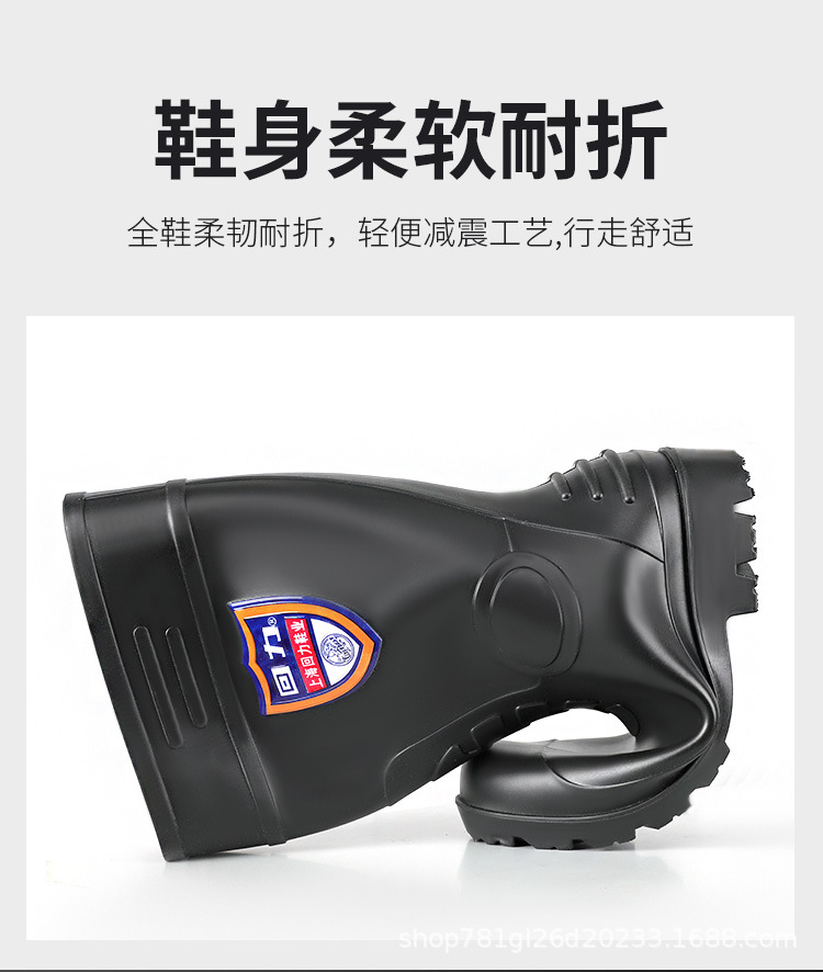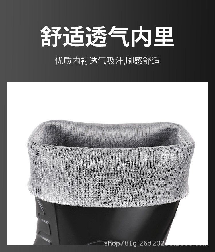 Huili 레인 슈즈 남성용 높은 장화 pvc 미끄럼 방지 쇠고기 바닥 노동 보호 검은 물 신발 807 중간 높이스토어 가기