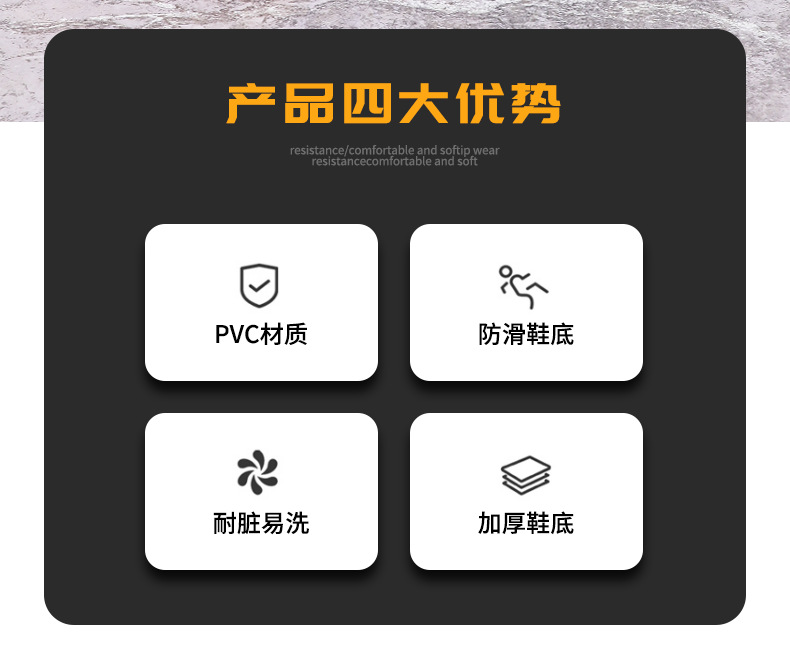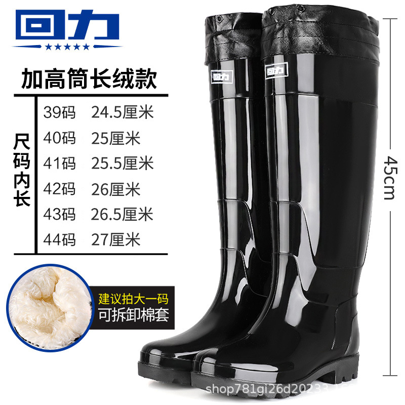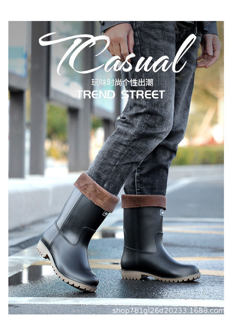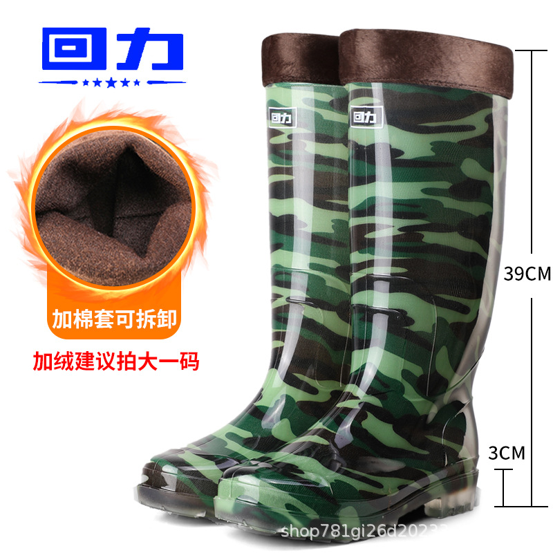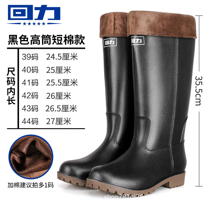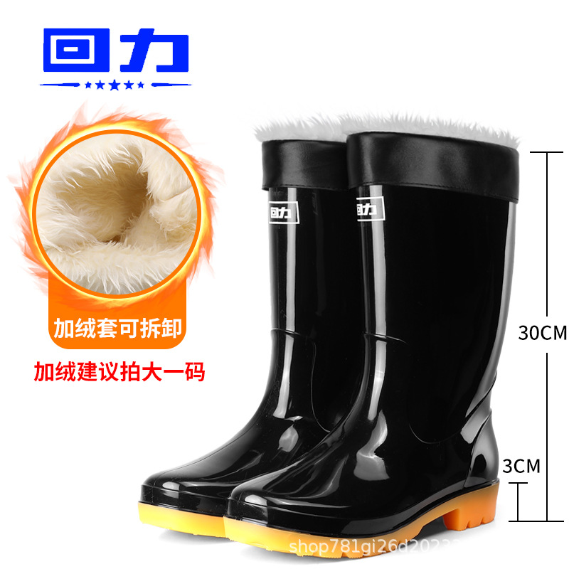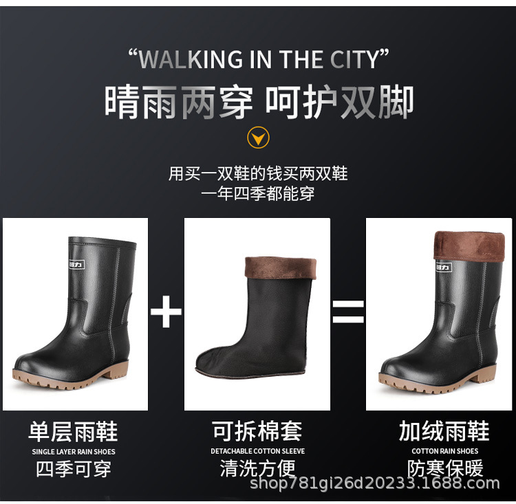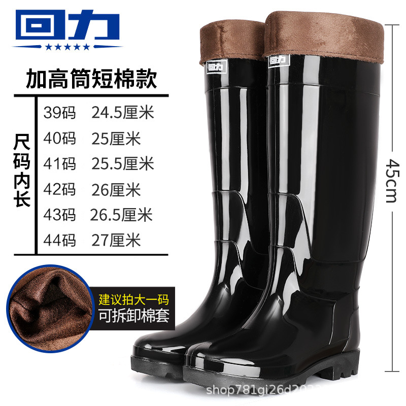 Huili 레인 슈즈 남성용 높은 장화 pvc 미끄럼 방지 쇠고기 바닥 노동 보호 검은 물 신발 807 중간 높이스토어 가기