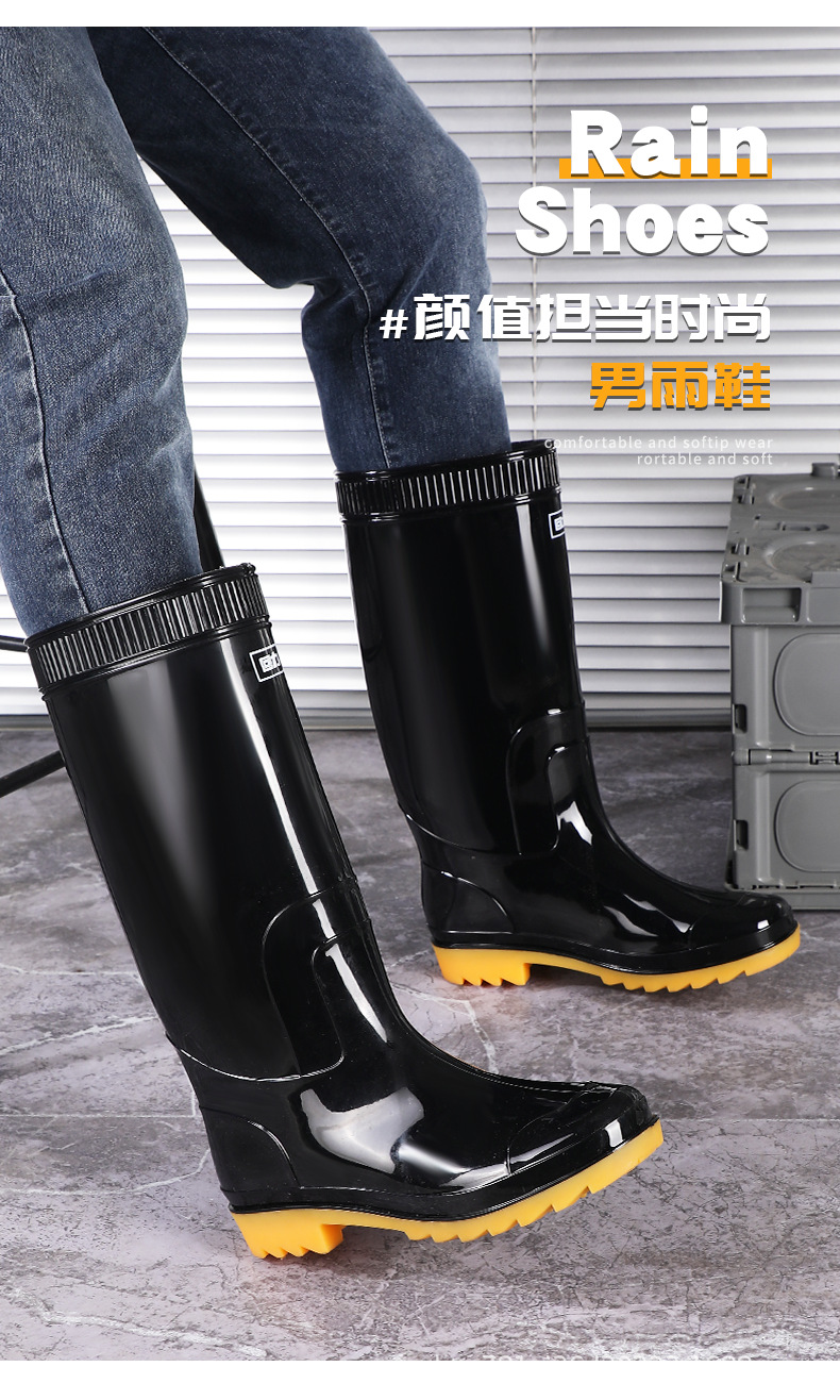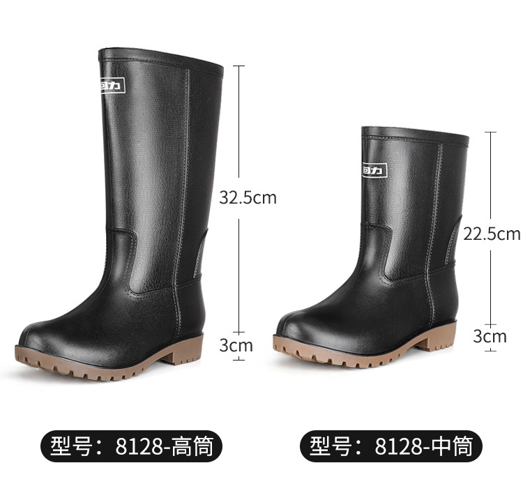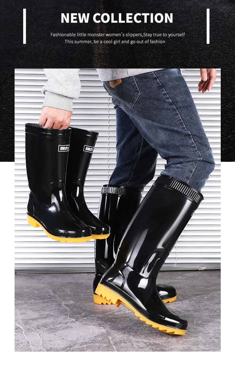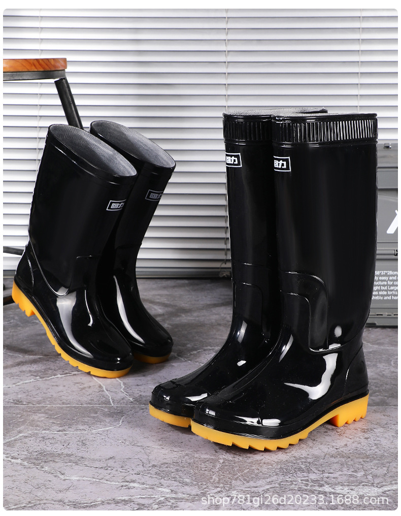Huili 레인 슈즈 남성용 높은 장화 pvc 미끄럼 방지 쇠고기 바닥 노동 보호 검은 물 신발 807 중간 높이