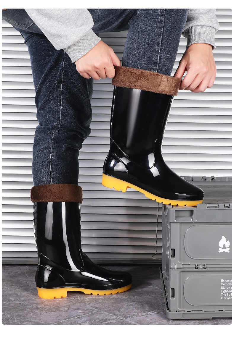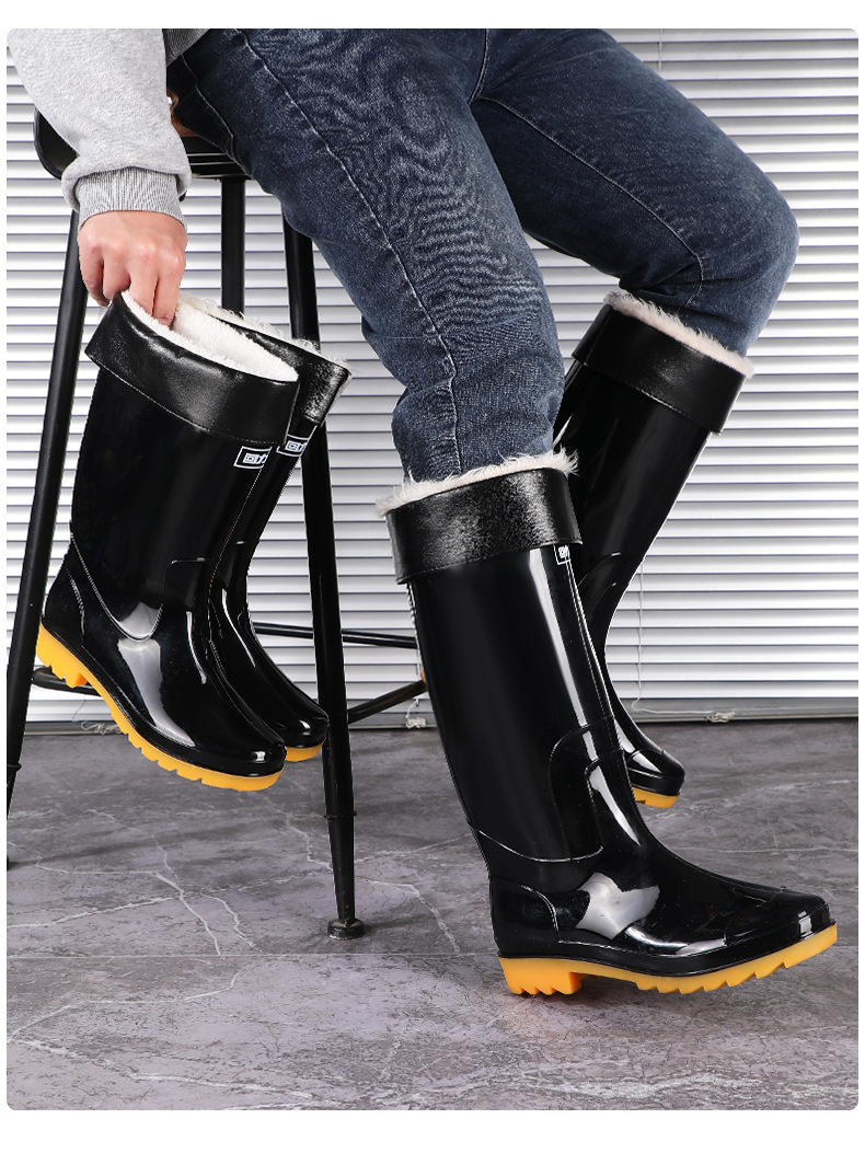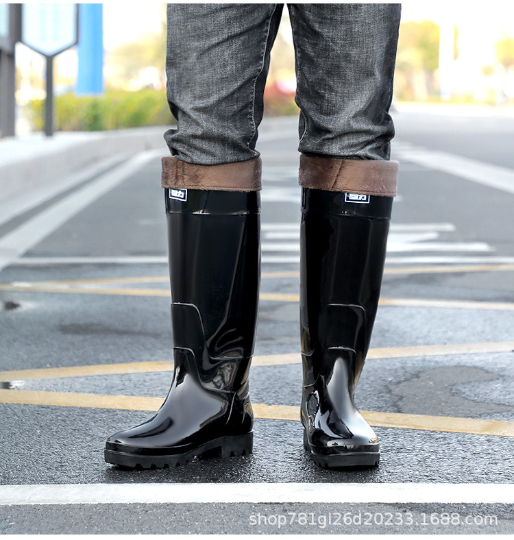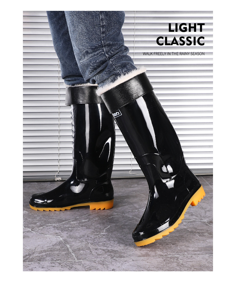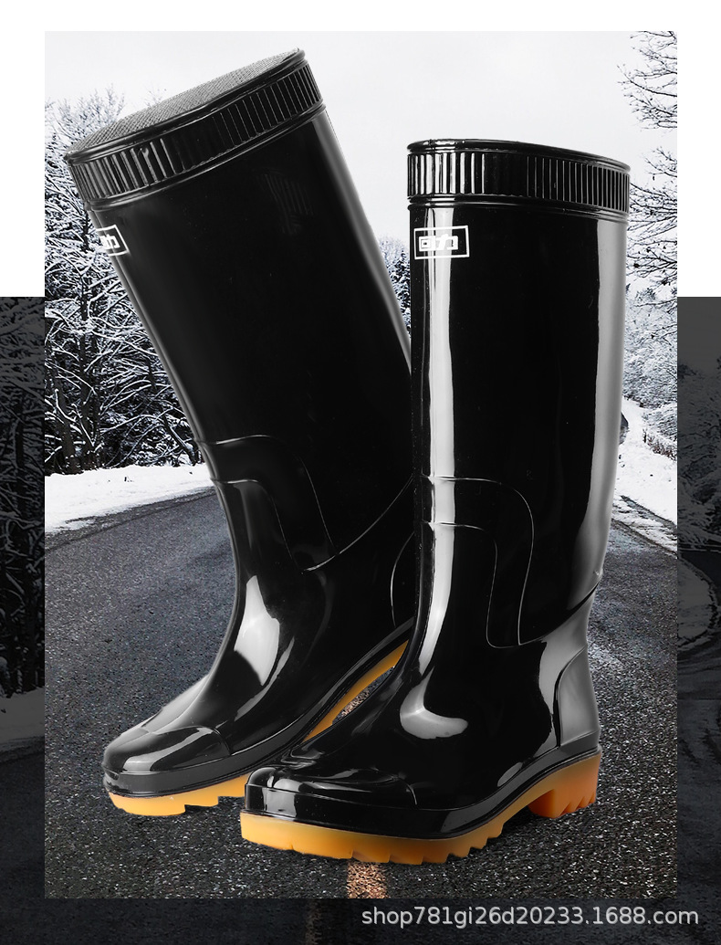 Huili 레인 슈즈 남성용 높은 장화 pvc 미끄럼 방지 쇠고기 바닥 노동 보호 검은 물 신발 807 중간 높이