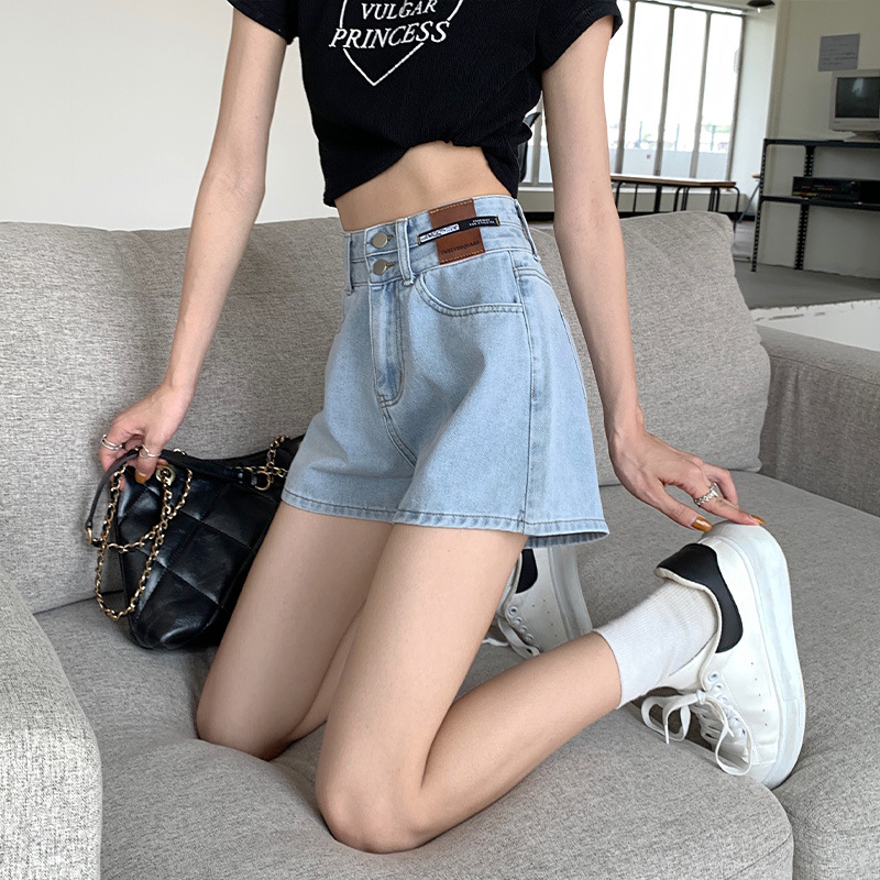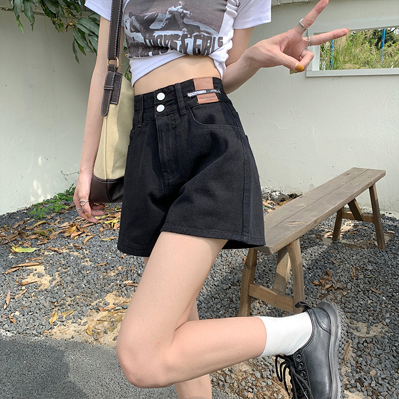 반바지 데님 달콤하고 매운 데님 반바지 여성용 여름 얇은 하이 웨이스트 슬리밍 플러스 사이즈 모든 매치 블랙 와이드 레그 핫 팬츠 트렌디스토어 가기