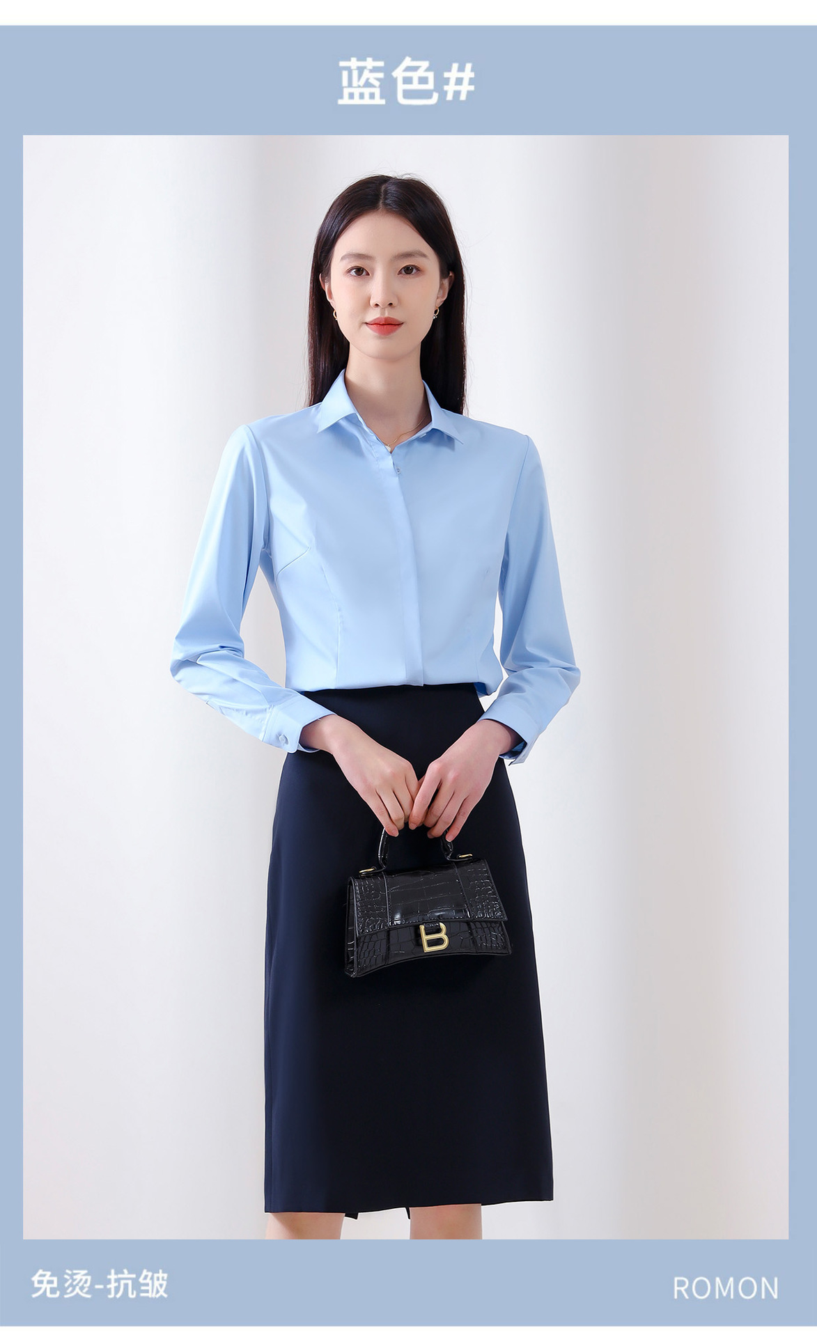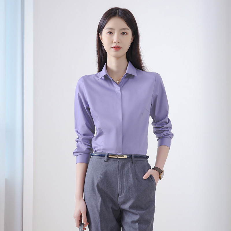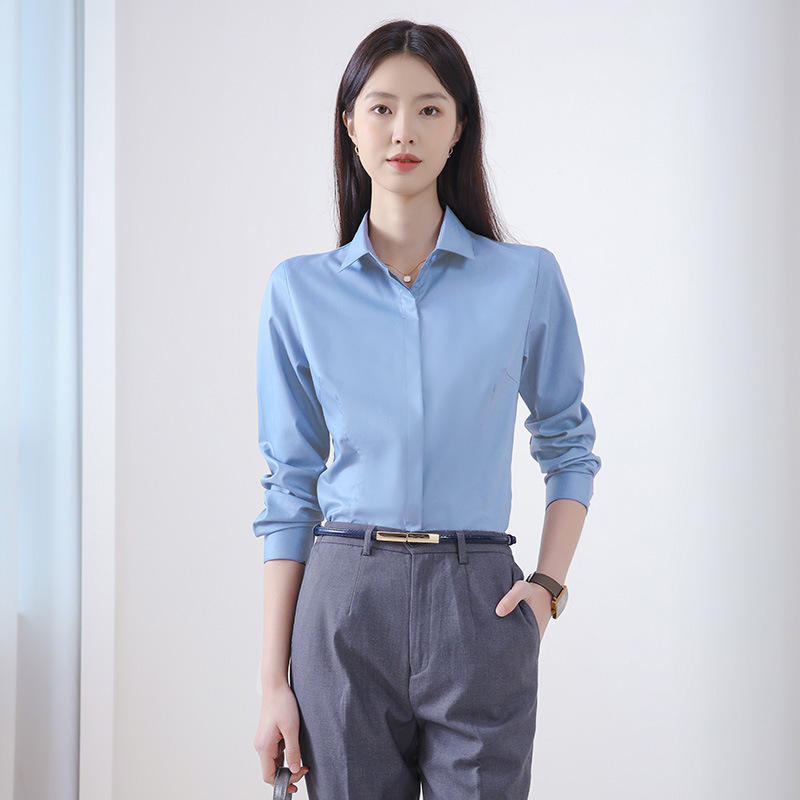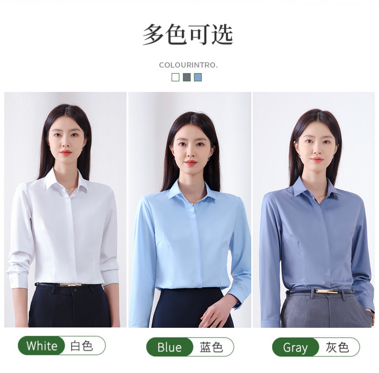 여성용 긴팔 셔츠 가을 직장 출퇴근 면접용 다림질 필요 없는 여성 셔츠 작업복 도매 자수 로고 정장스토어 가기