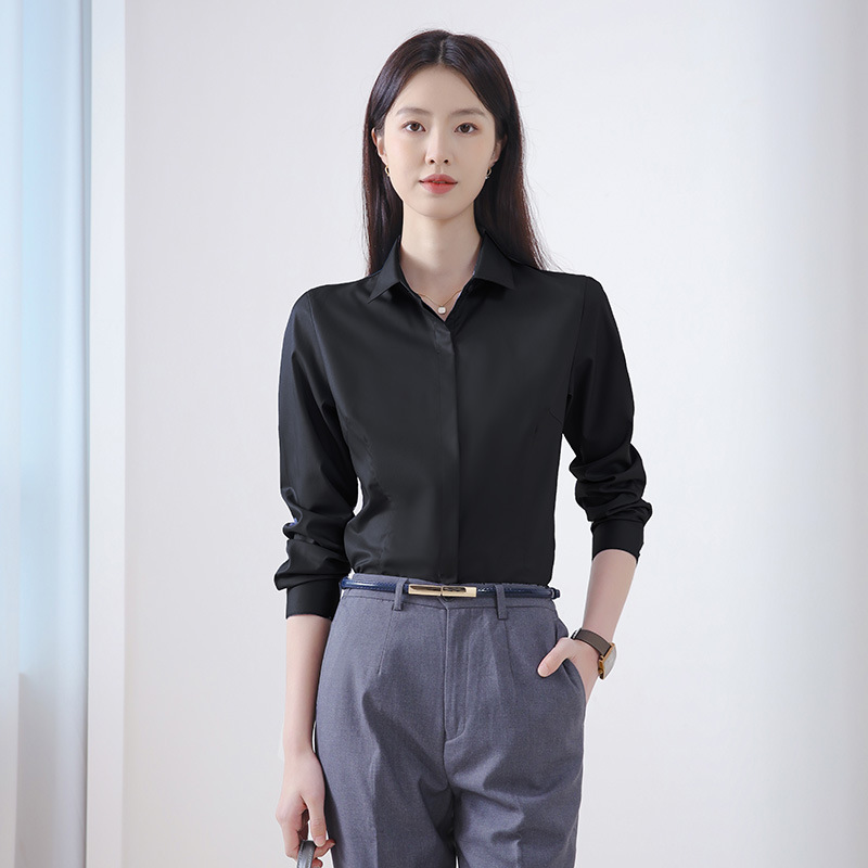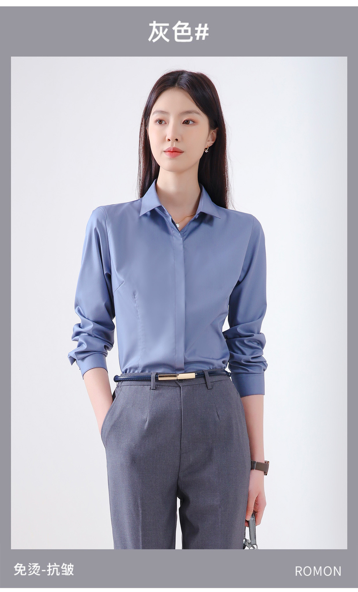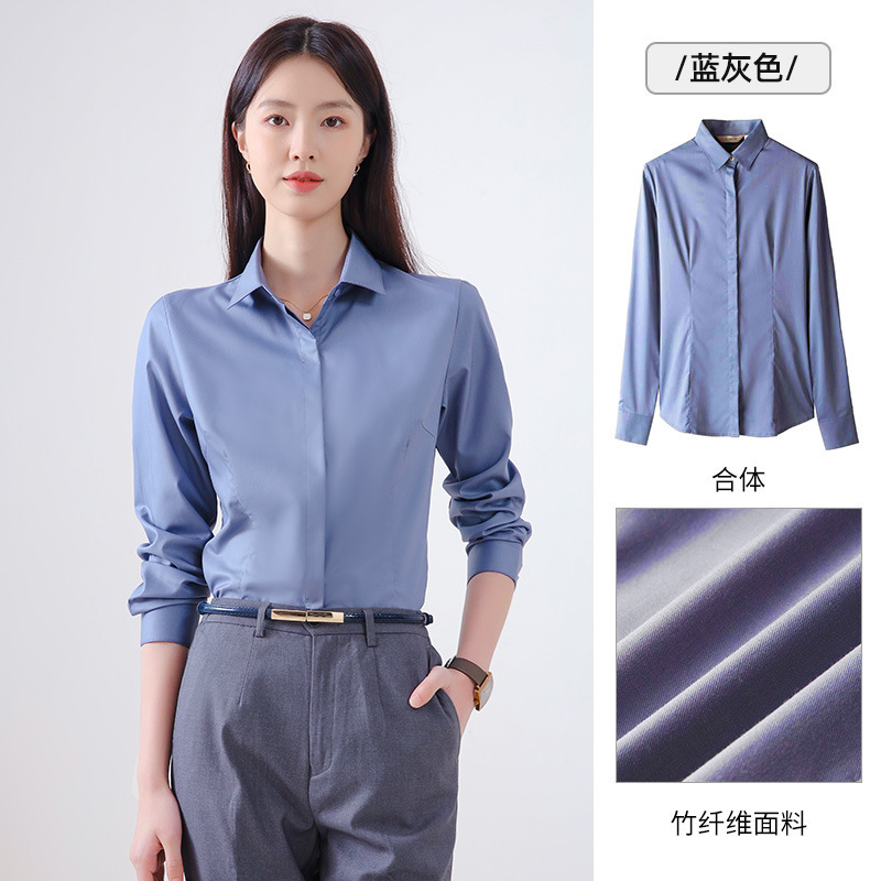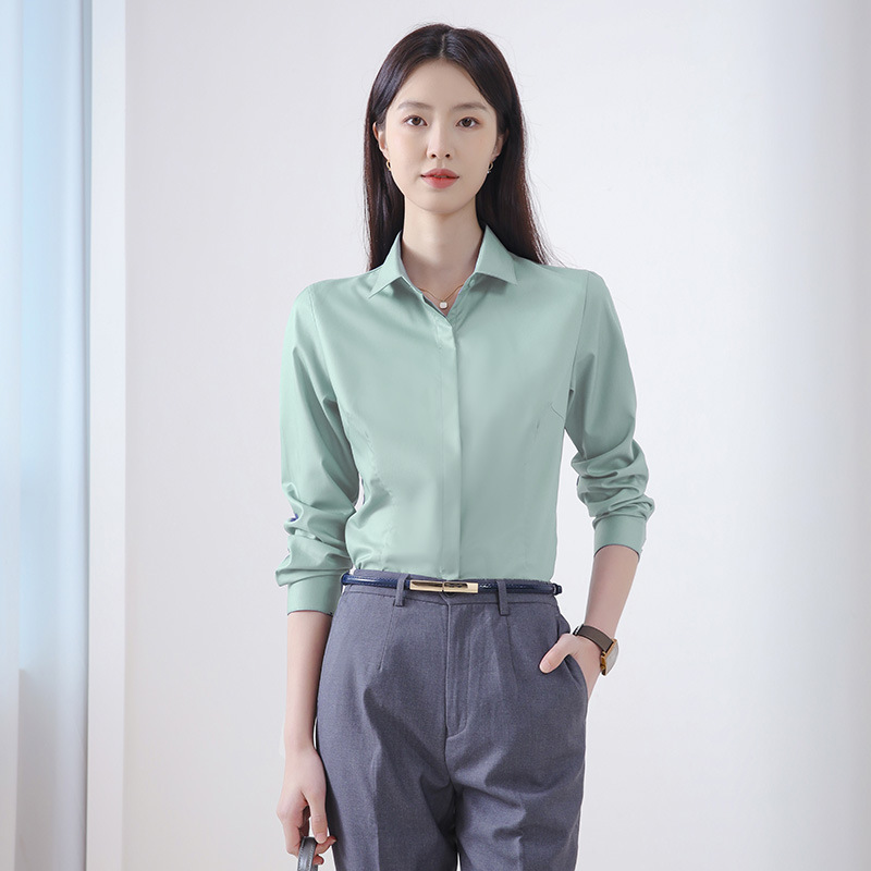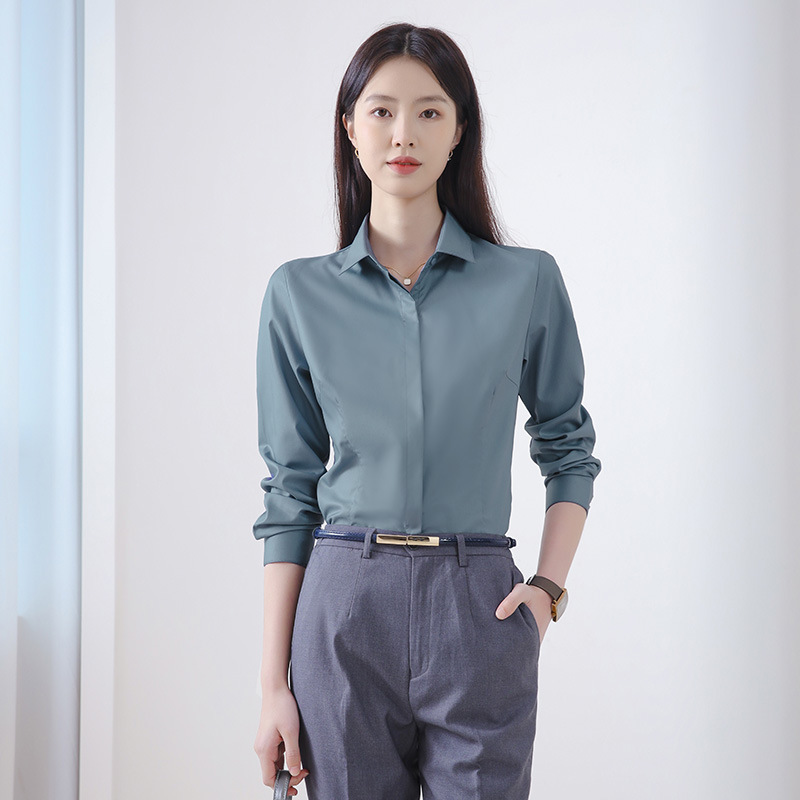 여성용 긴팔 셔츠 가을 직장 출퇴근 면접용 다림질 필요 없는 여성 셔츠 작업복 도매 자수 로고 정장스토어 가기