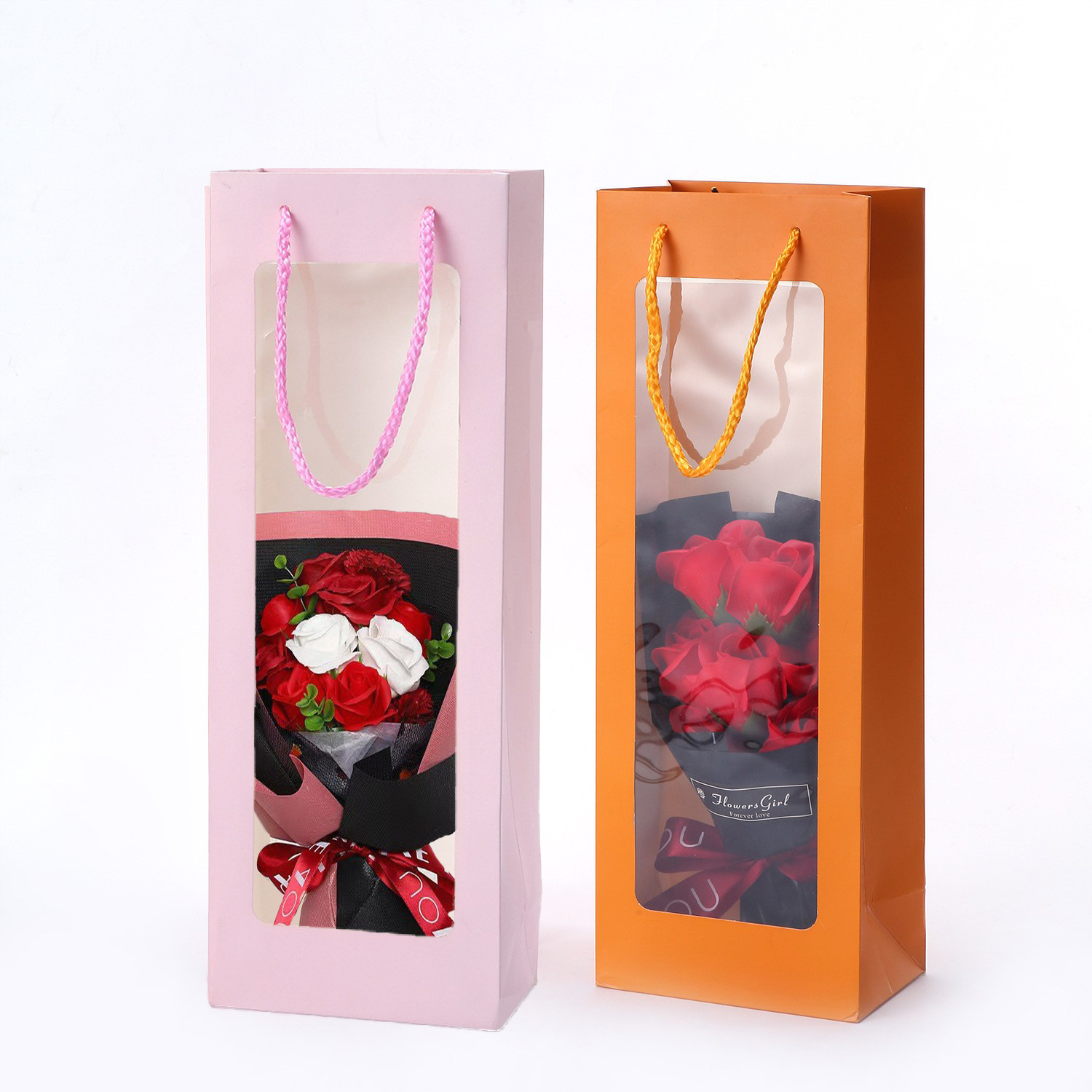꽃다발 종이 가방 휴대용 쇼핑 의류 가게 포장 선물 가방 PVC 투명 간단한 스타일 유니버설 가방