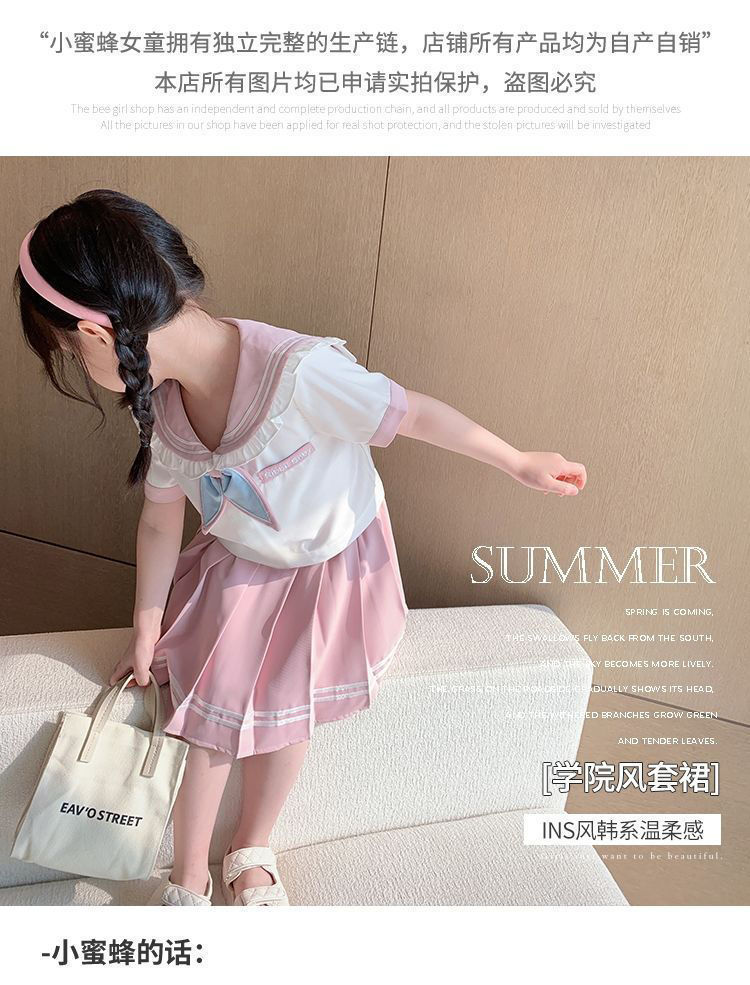 학생용 여아 JK 원피스 한국식 반팔 여름 원피스 세련되게 스타일 셔츠 대학 스타일 플리츠 스커트 투피스 세트스토어 가기