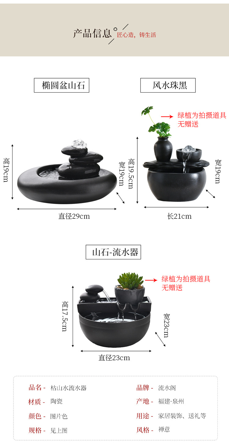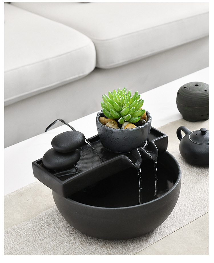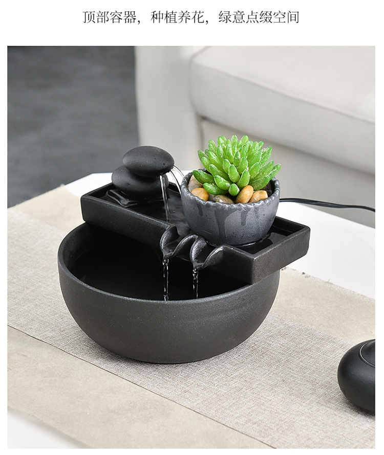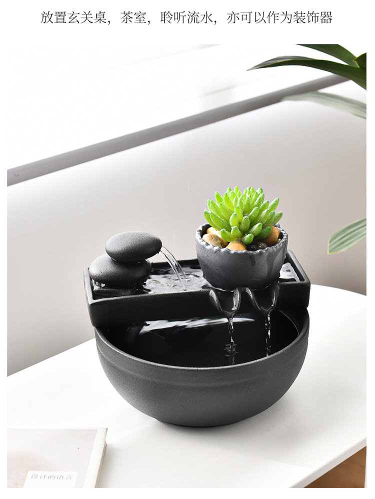 작은 세라믹 풍수 행운의 물 공 분수 장식품 홈 거실 TV 캐비닛 티룸 책 데스크탑 장식스토어 가기