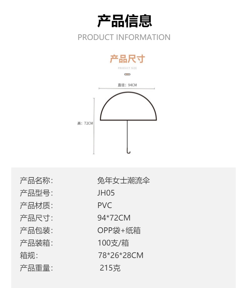 크리에이 티브 신선한 숙녀 맑은 우산 귀여운 동물 토끼 만화 우산 어린이 우산 긴 손잡이 우산 공장 도매스토어 가기
