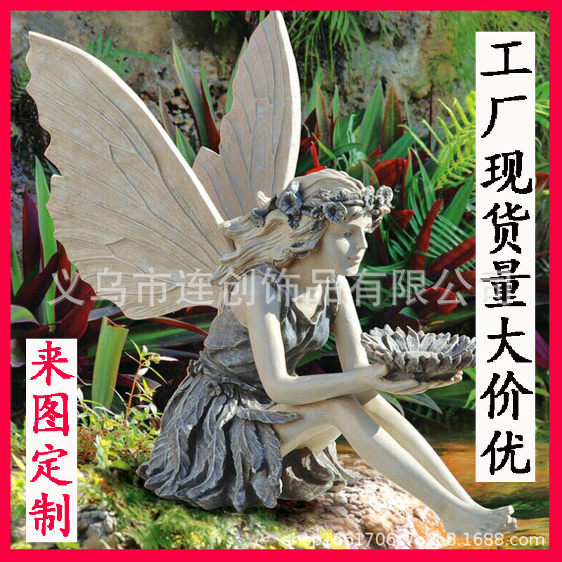 해바라기 요정 동상 수지 장식품 야외 안뜰 정원 꽃 요정 새 피더 천사 장식품 공예스토어 가기