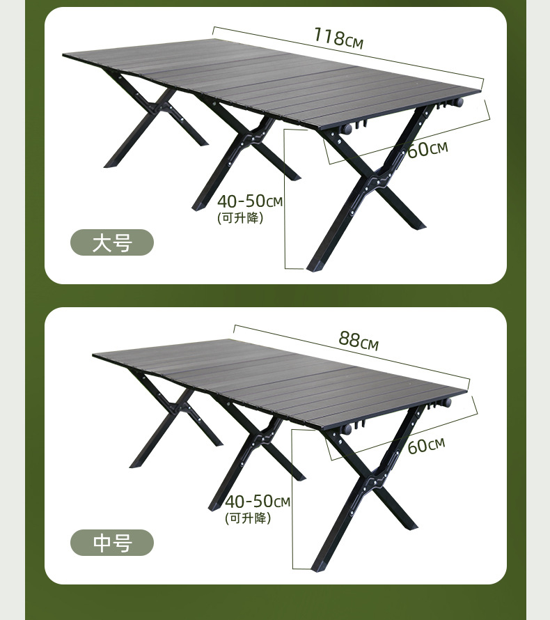 야외 접이식 테이블 휴대용 높이 조절 가능한 에그롤 테이블 캠핑 바베큐 피크닉 테이블 알루미늄 경량