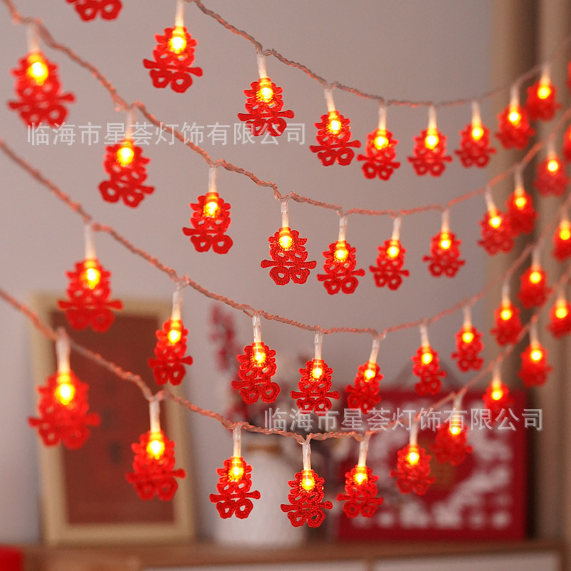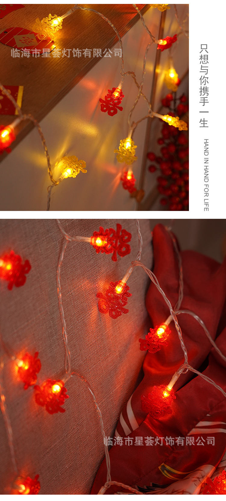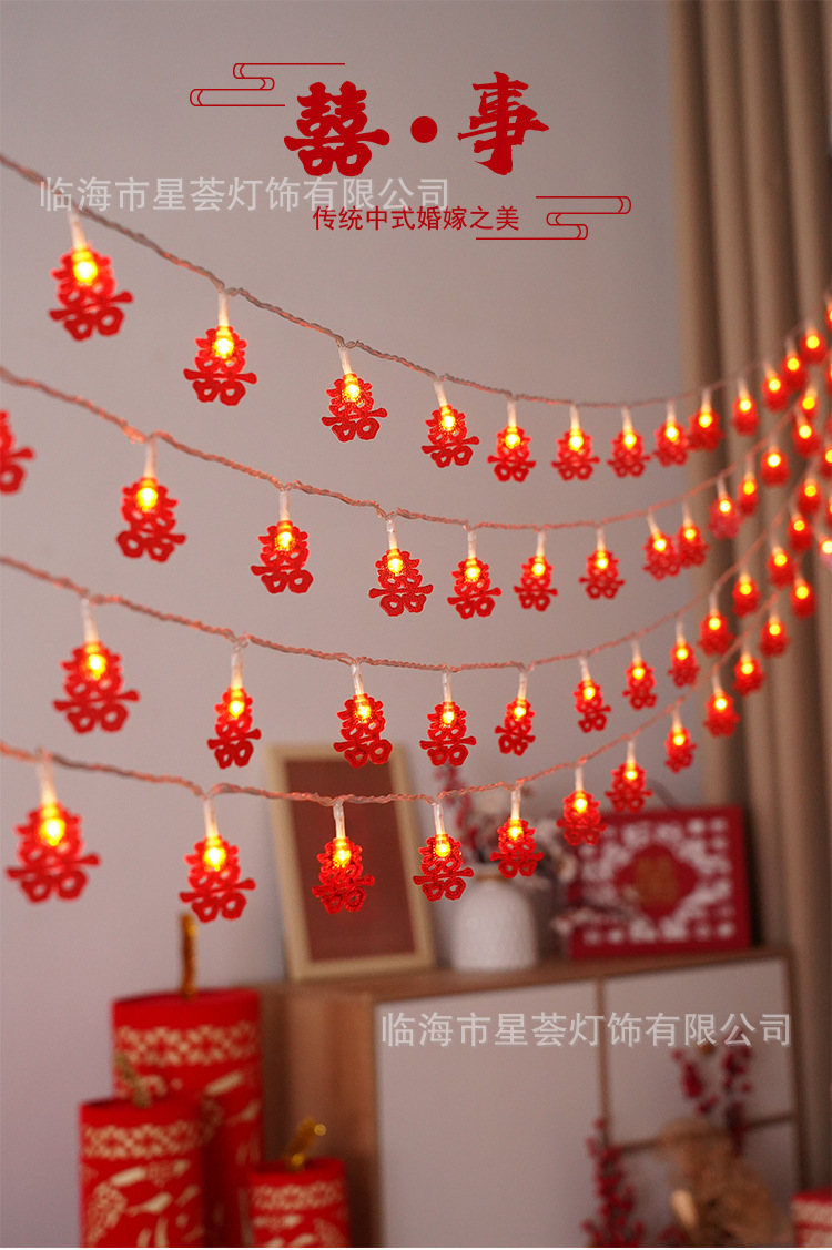 웨딩 조명 빨간색 해피 워드 웨딩 레드 더블 해피 웨딩 장식 유형 led 문자열 라이트 룸 장면 레이아웃스토어 가기