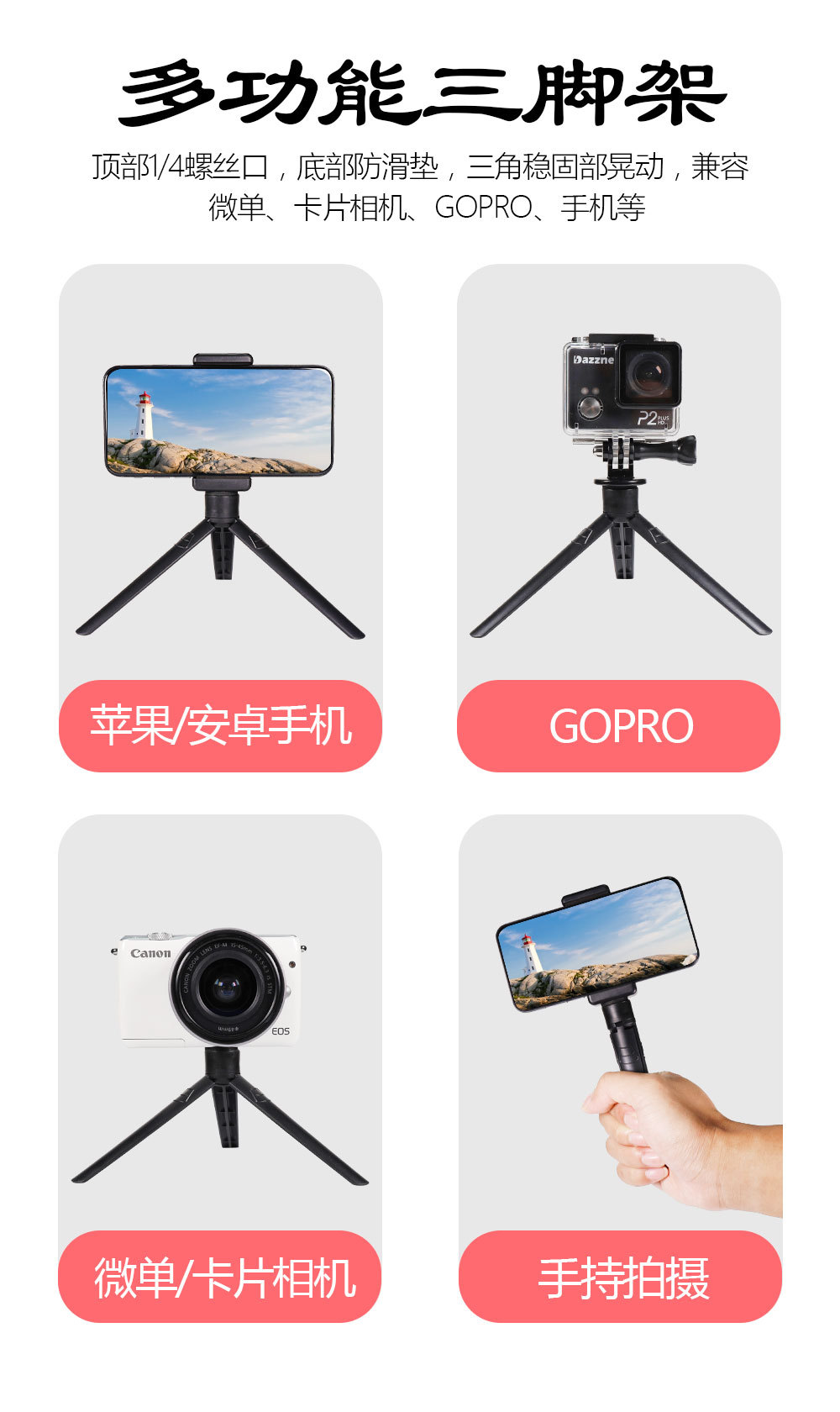 小三角架 铝合金三角架 八爪鱼海绵支架 三脚架带云台 小三脚架