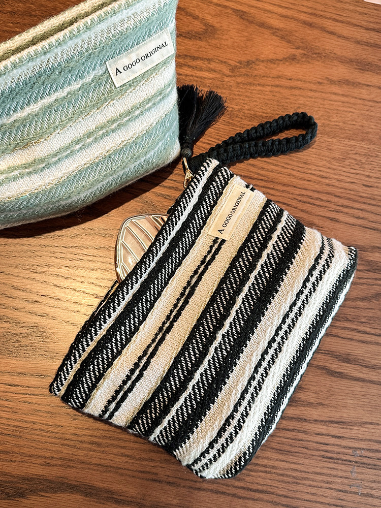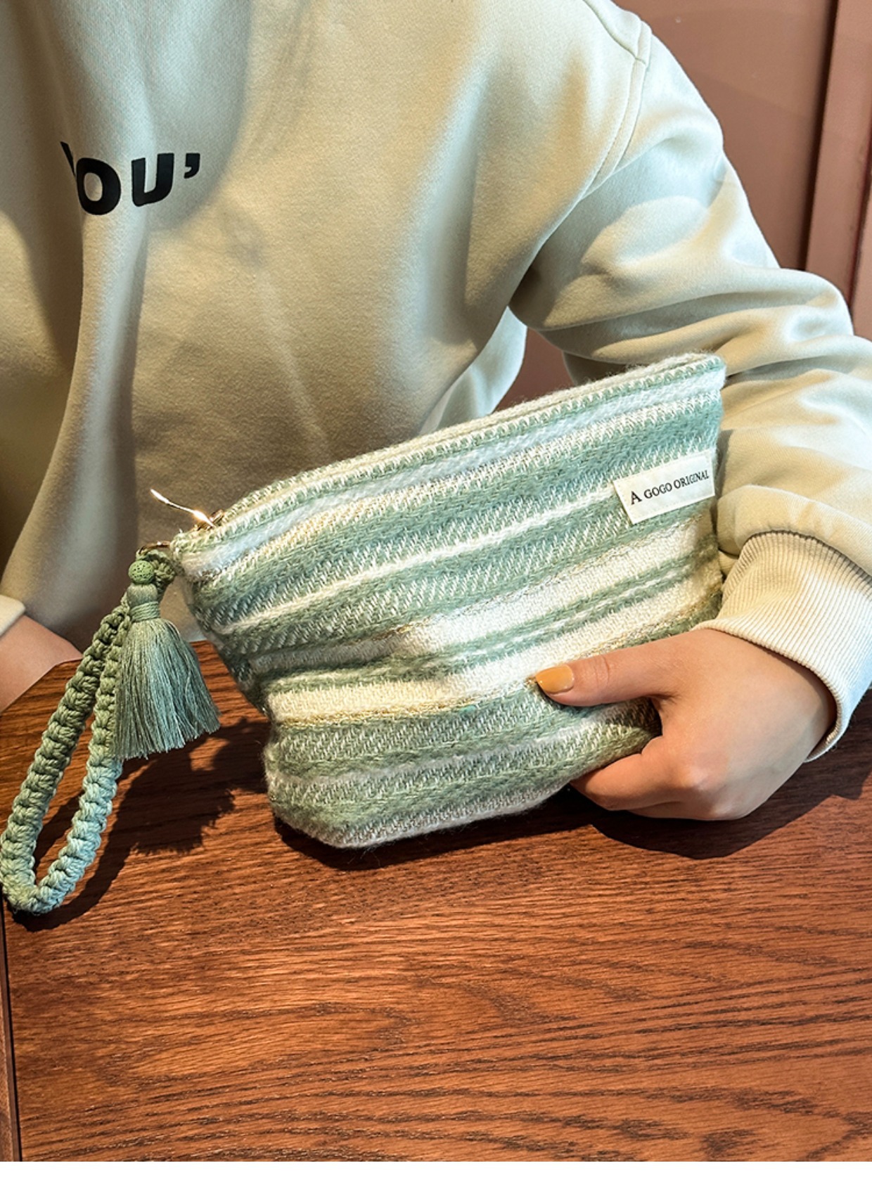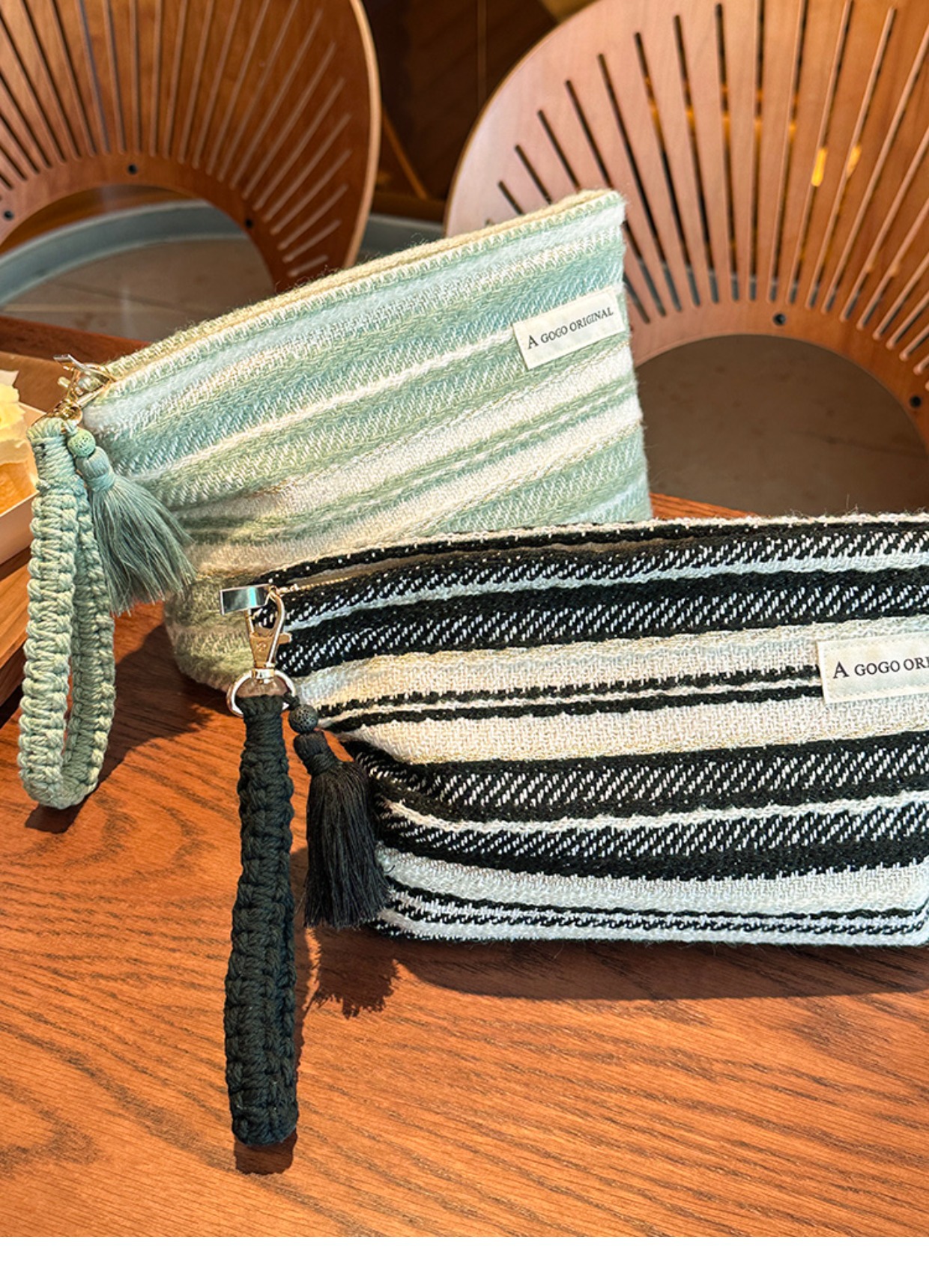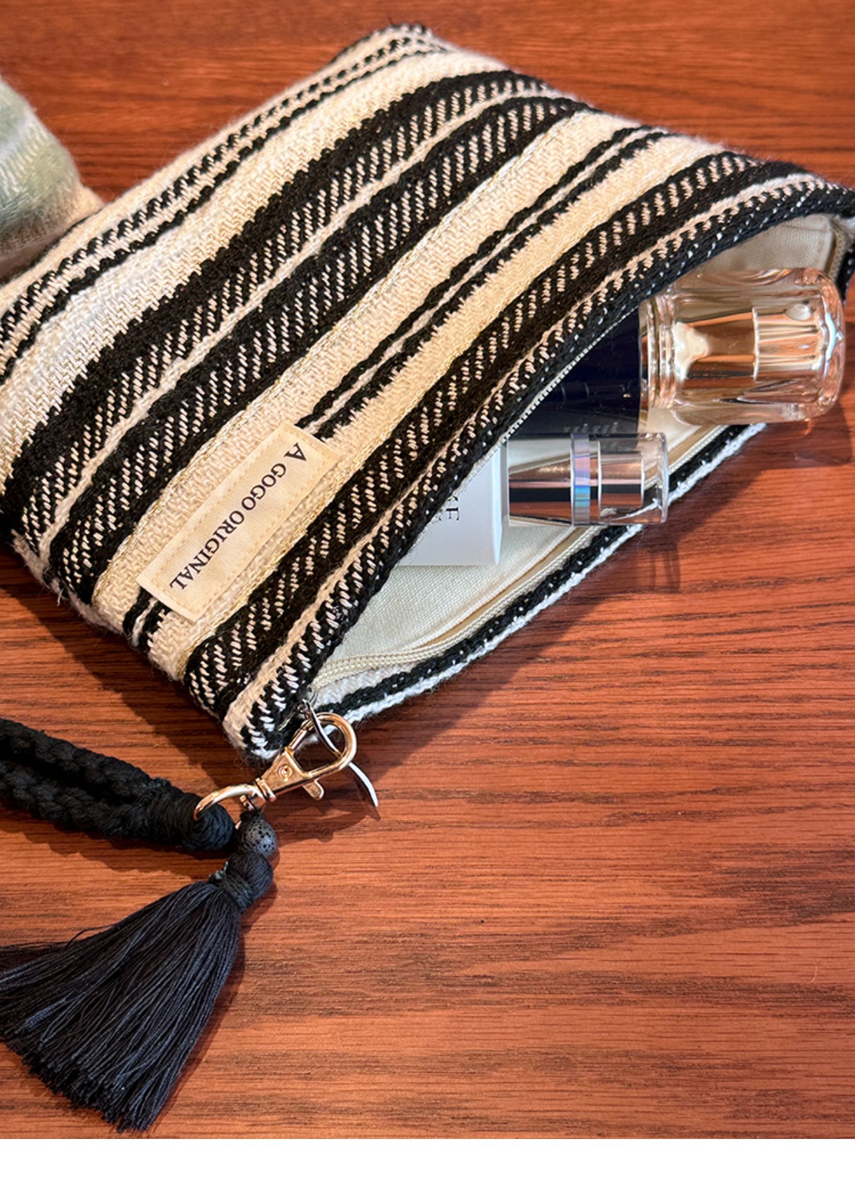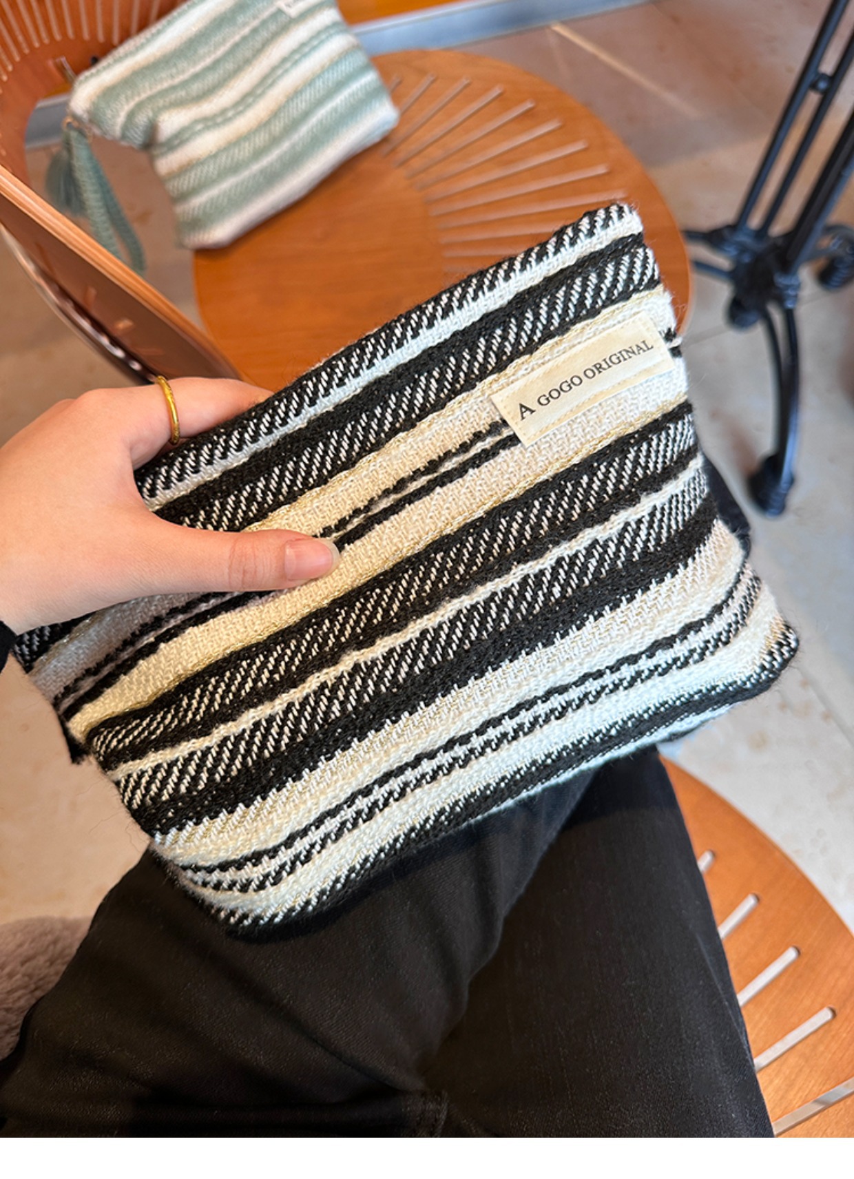 크로스 보더 하이 엔드 느낌 손으로 운반 작은 향수 스트라이프 화장품 가방 여행 및 세척을 위한 스킨 케어 보관 가방스토어 가기