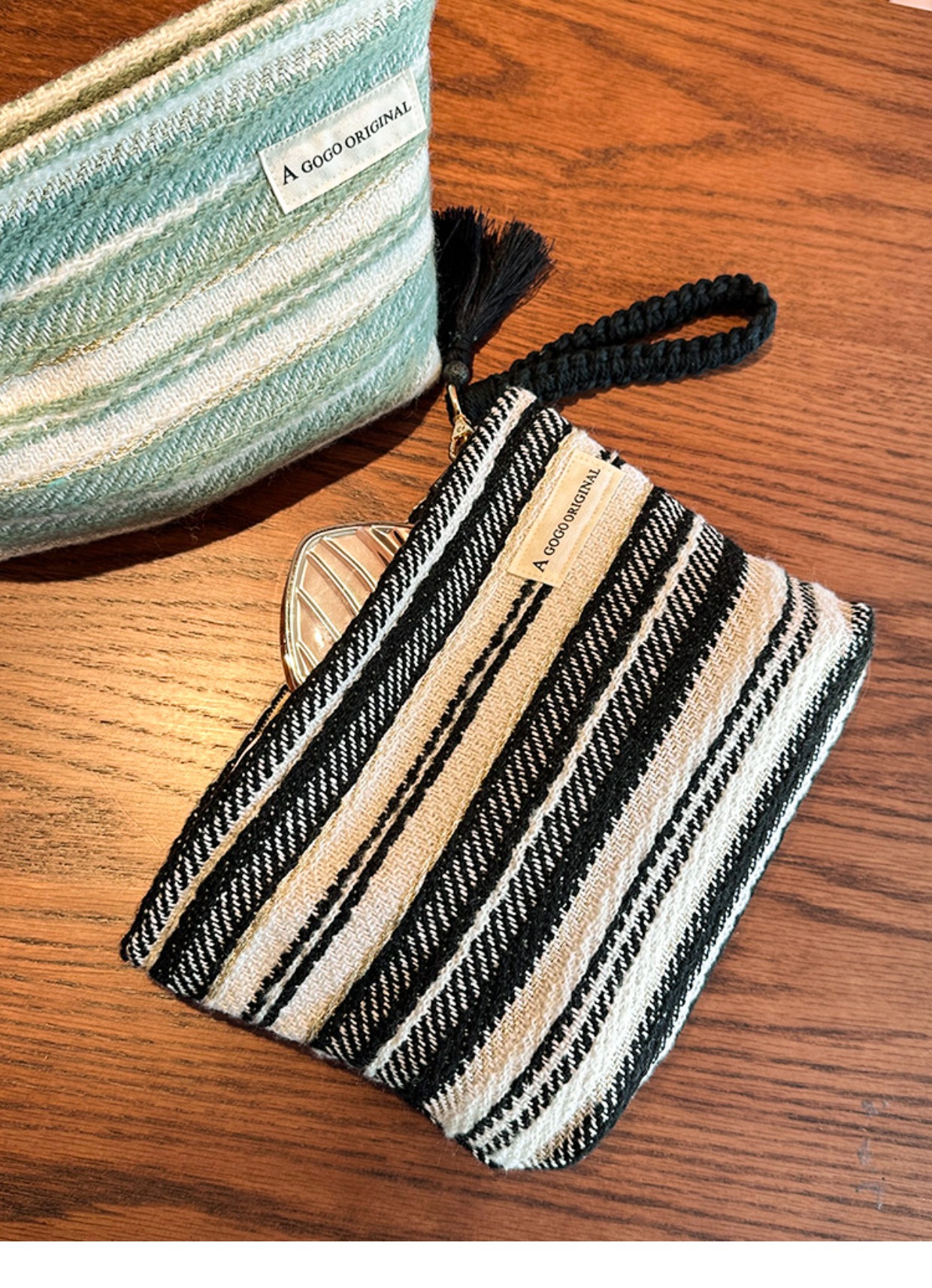 크로스 보더 하이 엔드 느낌 손으로 운반 작은 향수 스트라이프 화장품 가방 여행 및 세척을 위한 스킨 케어 보관 가방
