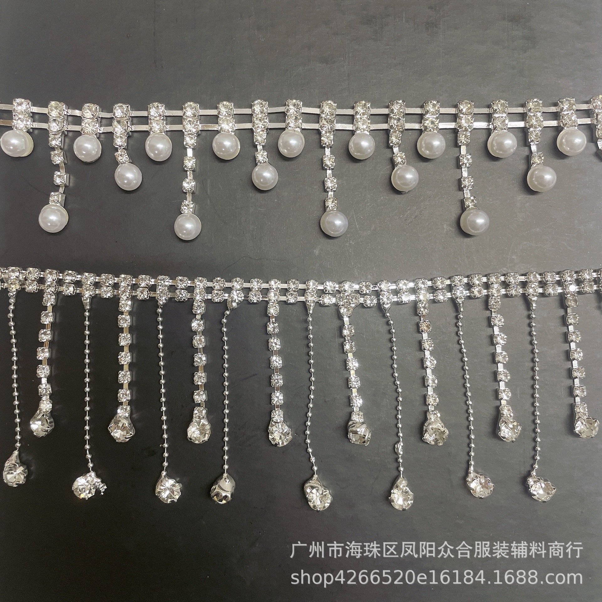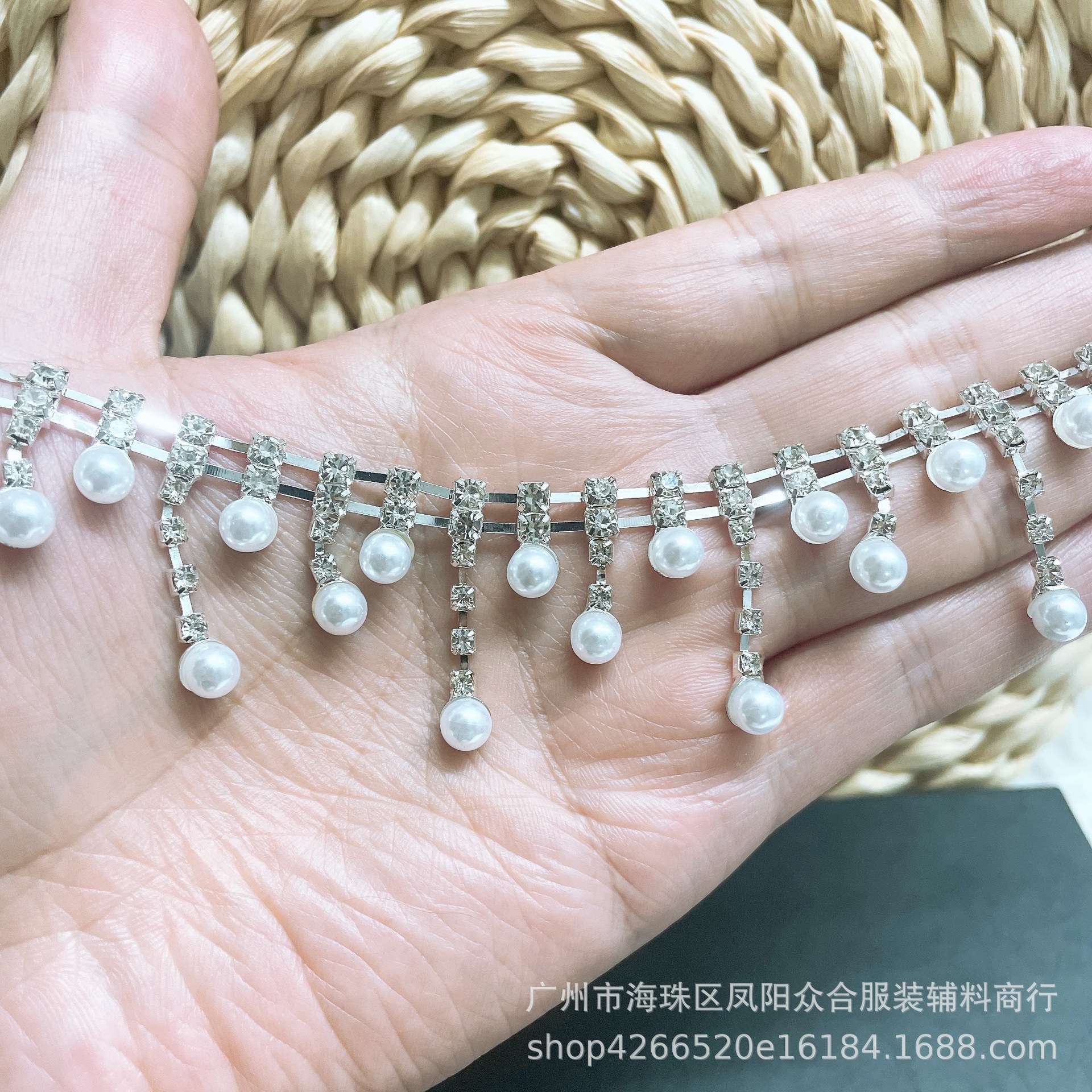 공장 재고 모조 다이아몬드 술 발톱 체인 진주 다이아몬드 체인 수하물 의상 액세서리 DIY 보석 반제품 액세서리