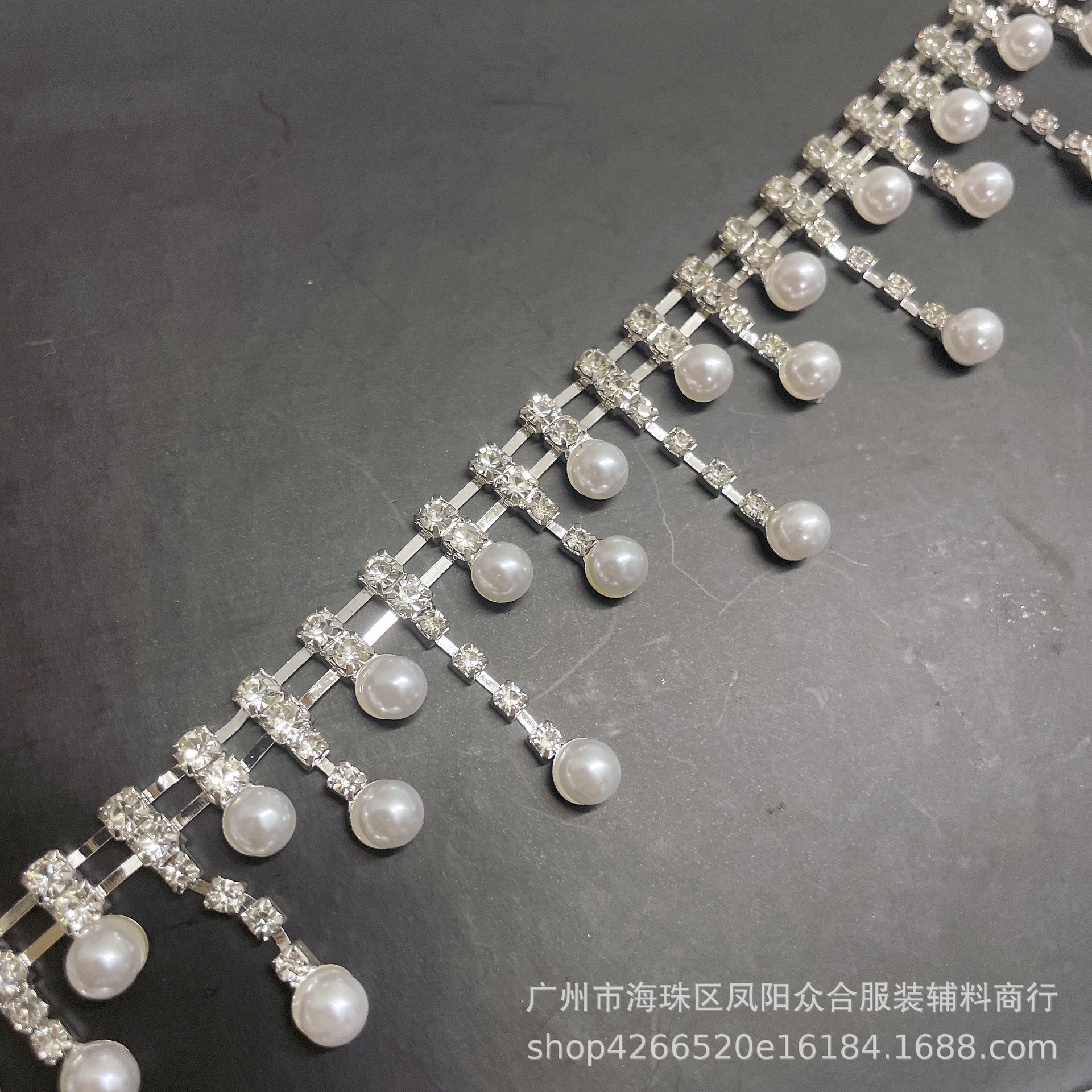 공장 재고 모조 다이아몬드 술 발톱 체인 진주 다이아몬드 체인 수하물 의상 액세서리 DIY 보석 반제품 액세서리스토어 가기