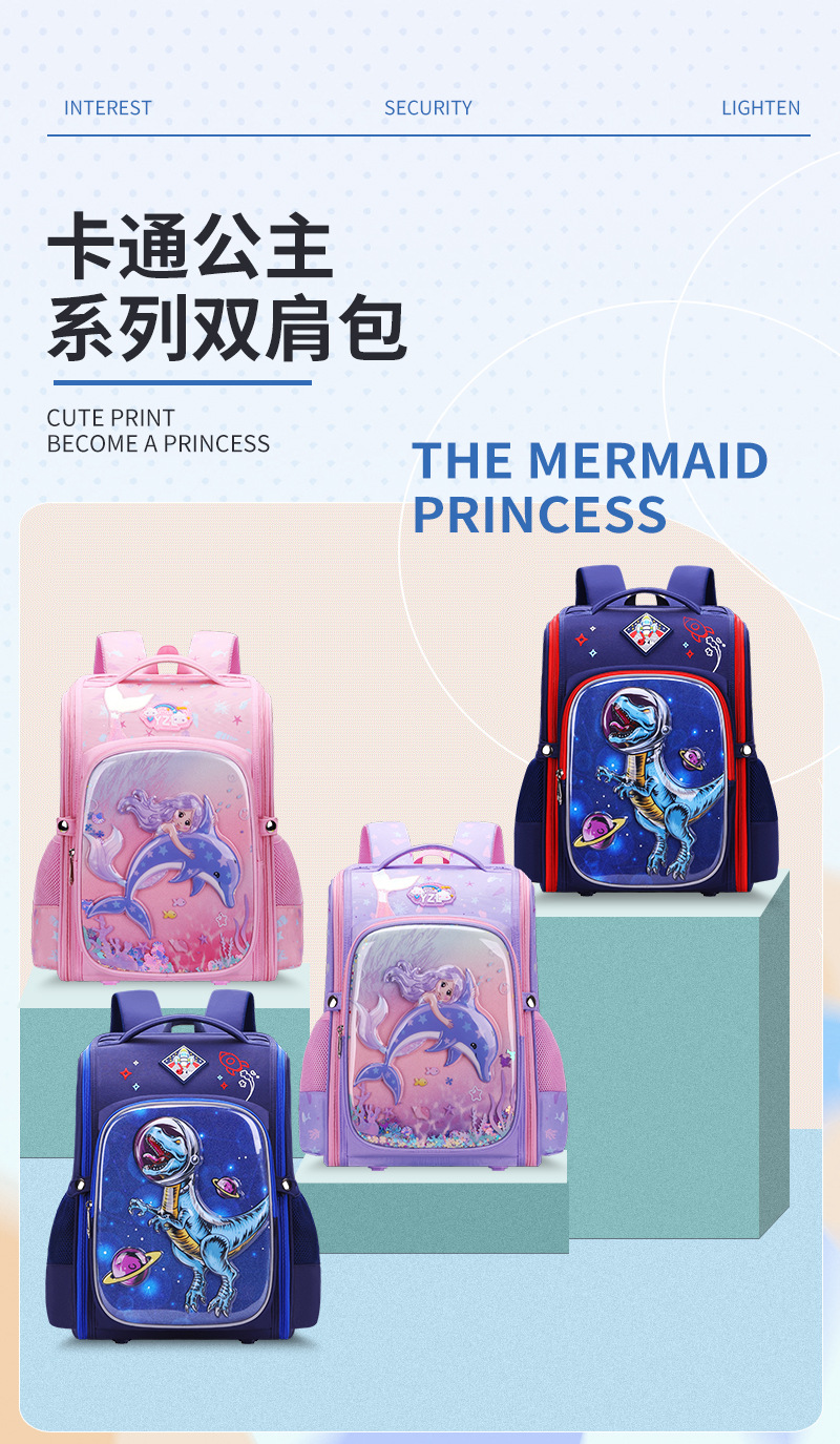 초등학생 책가방 1~6학년용 환상적인 공주 공룡 만화 시리즈 척추 보호 어린이용 귀여운 가방스토어 가기