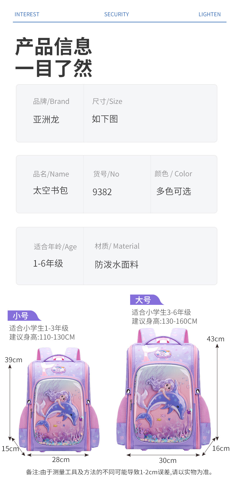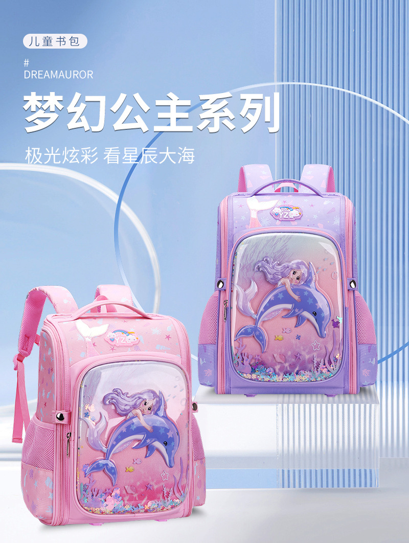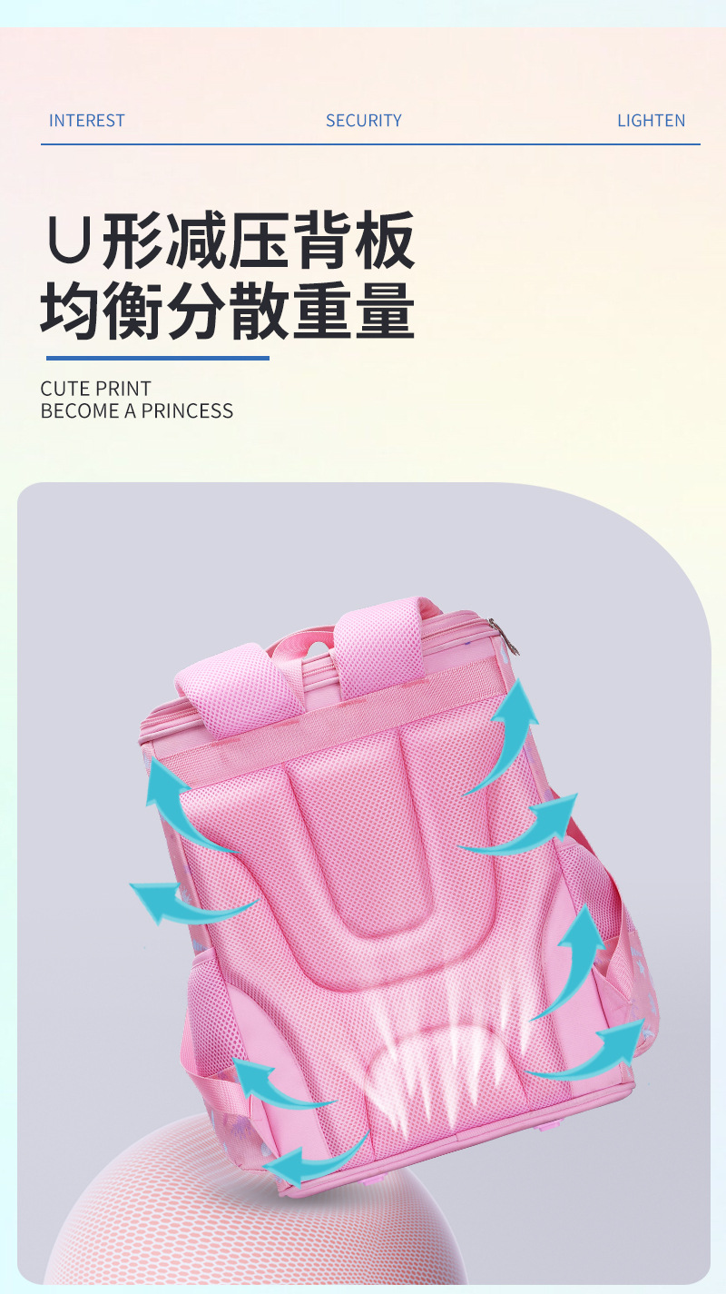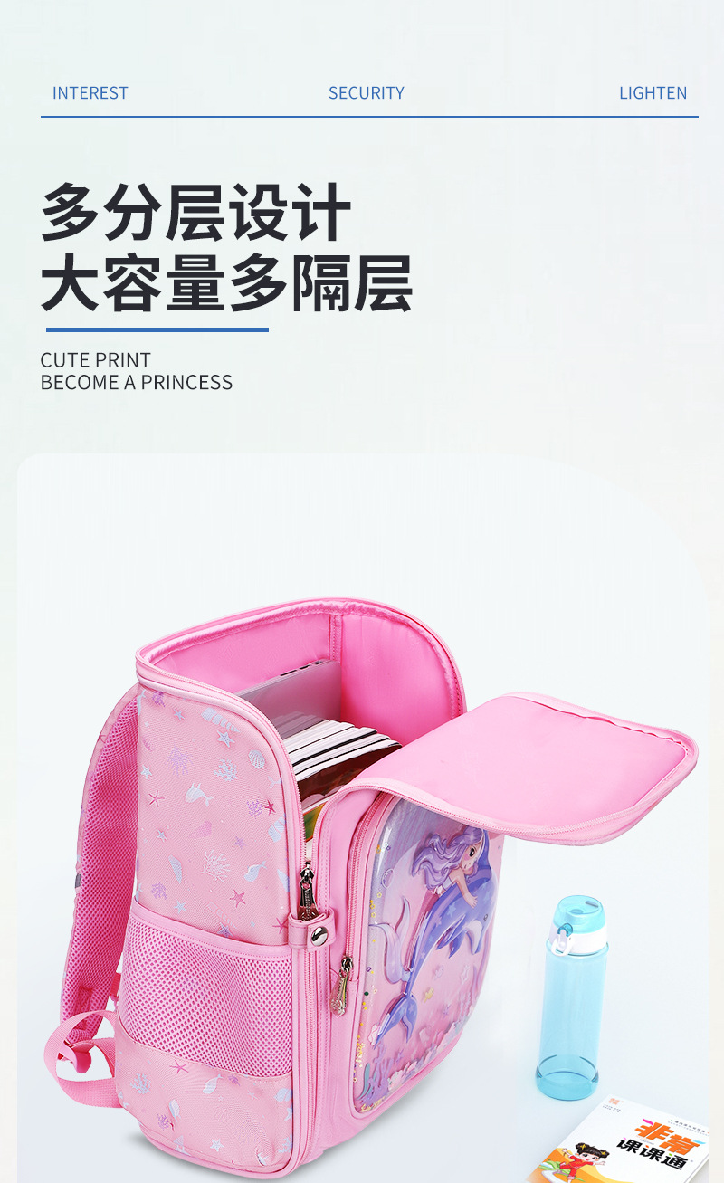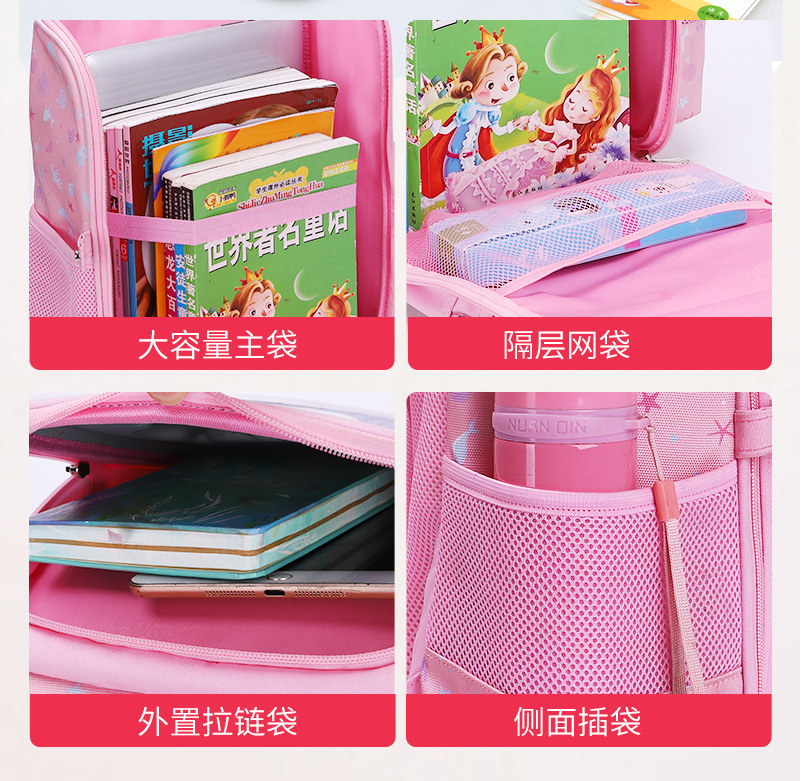 초등학생 책가방 1~6학년용 환상적인 공주 공룡 만화 시리즈 척추 보호 어린이용 귀여운 가방