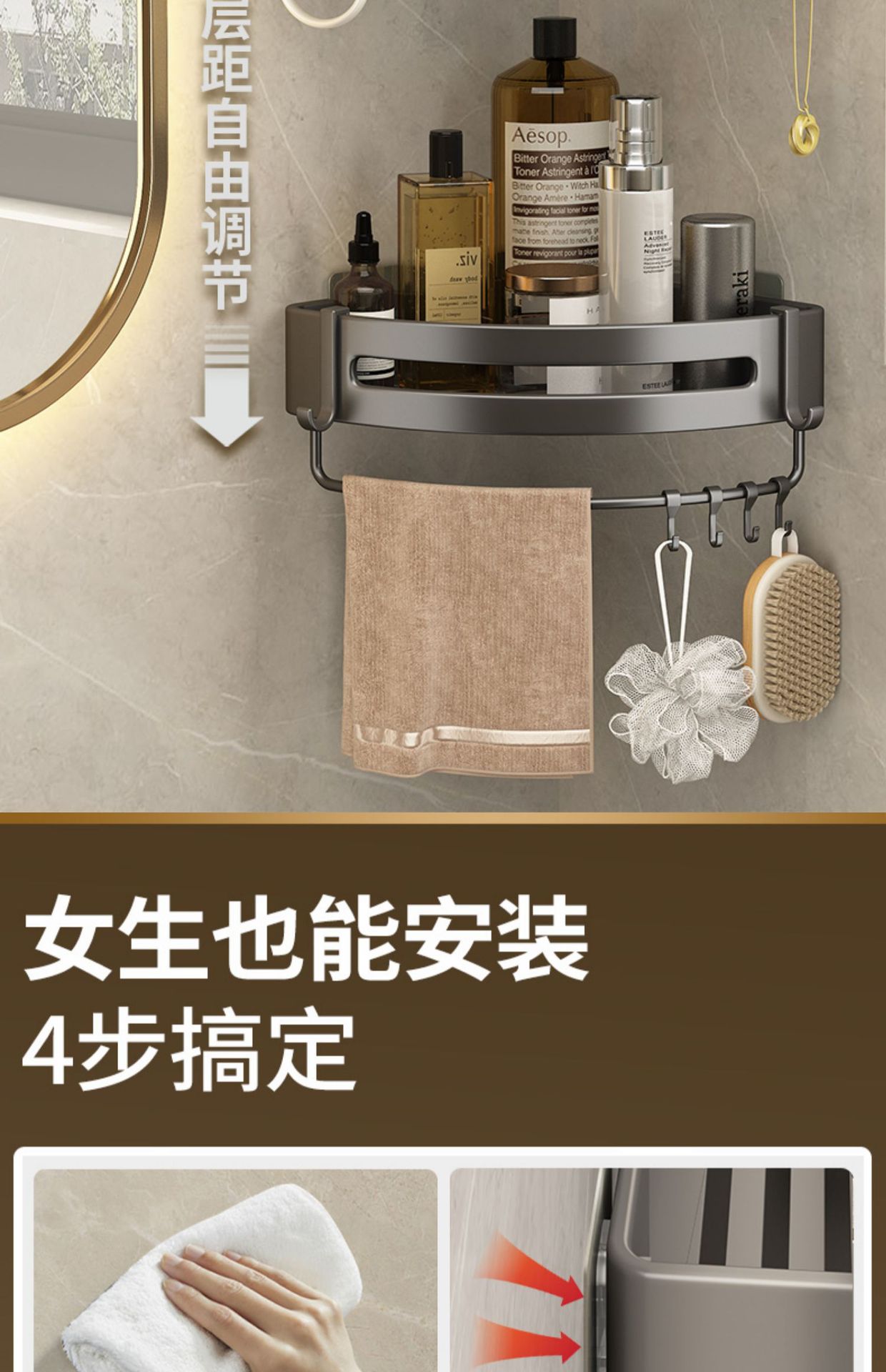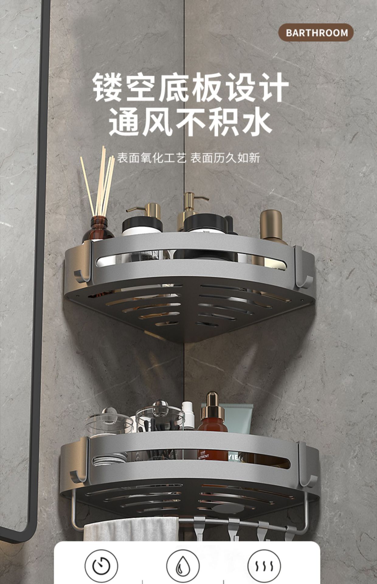 화장실 수납 랙 삼각 벽걸이 욕실 펀치 프리 가정용 코너 화장실 세척 욕실 수납 랙