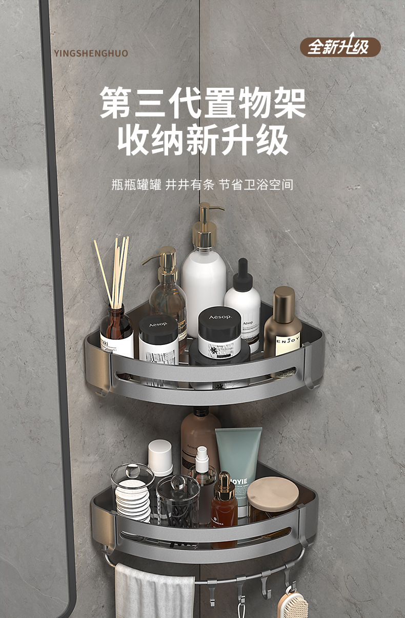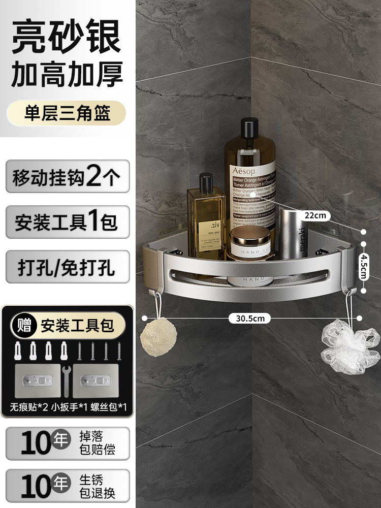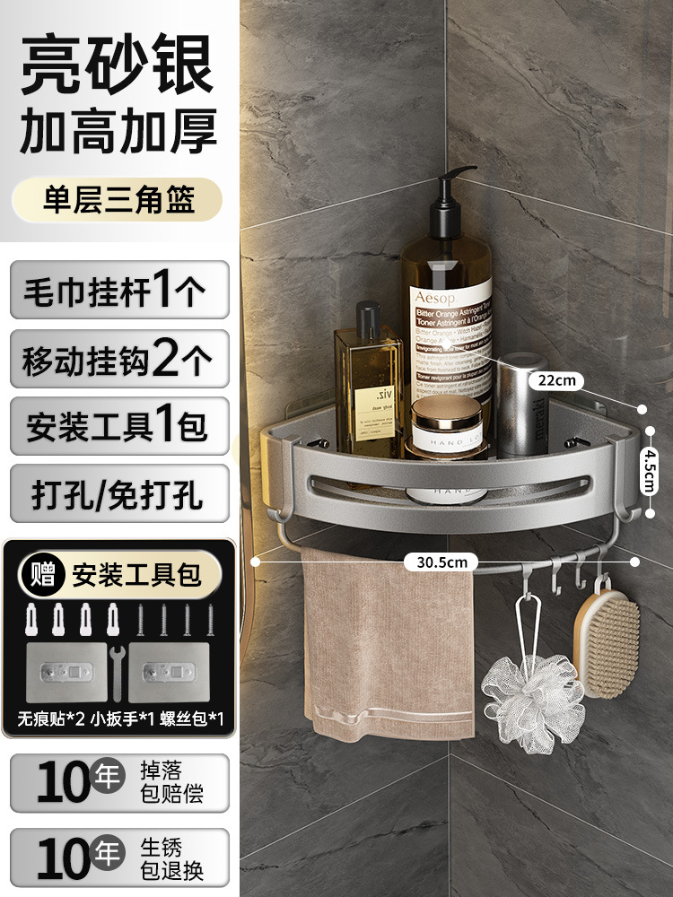 화장실 수납 랙 삼각 벽걸이 욕실 펀치 프리 가정용 코너 화장실 세척 욕실 수납 랙스토어 가기