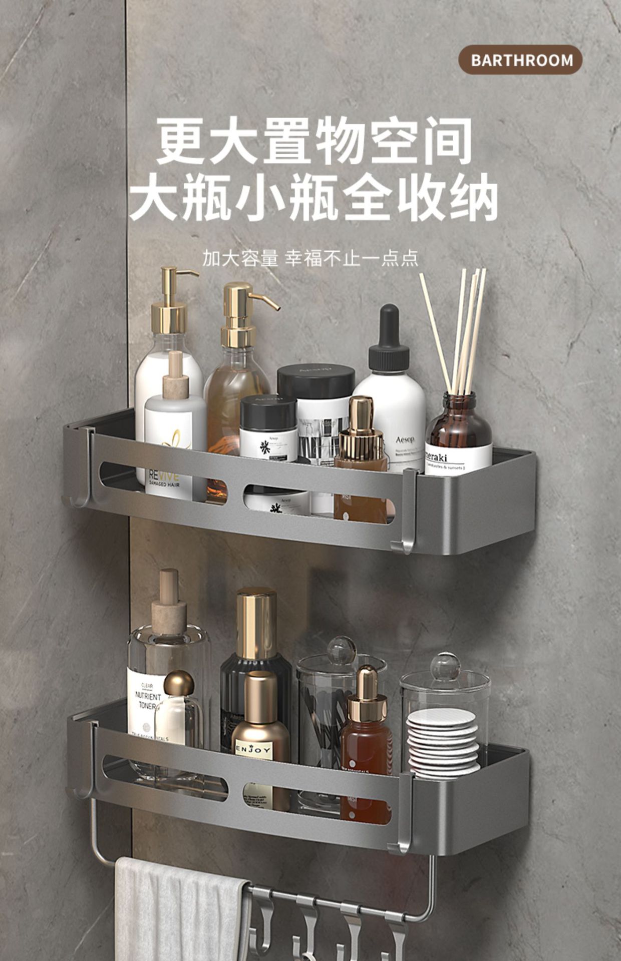 • 건 애쉬 두꺼운 패치 스퀘어 바스켓 3 층 막대
