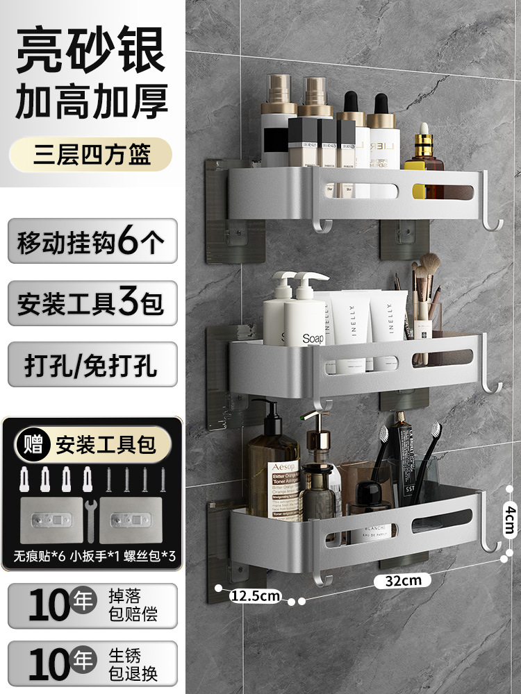 • 밝은 모래 실버 두꺼운 패치 사각 바구니 3 층 막대