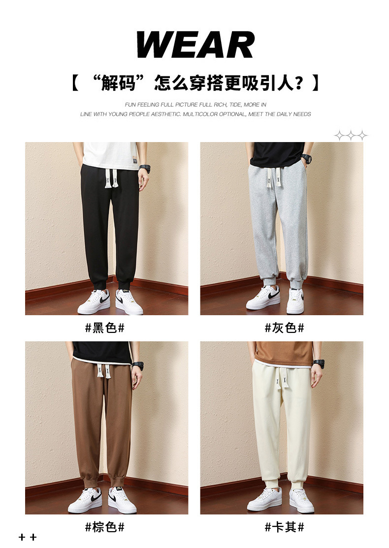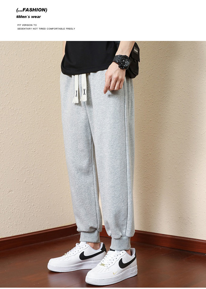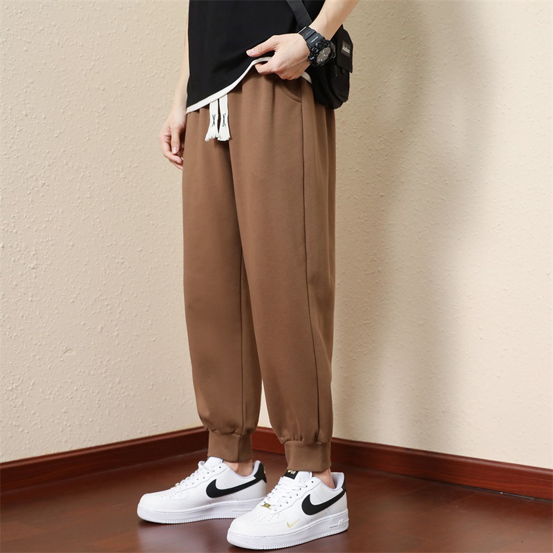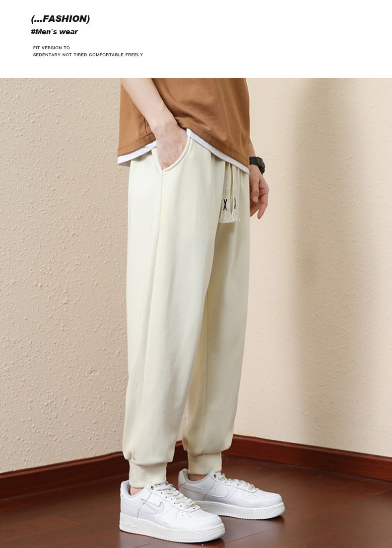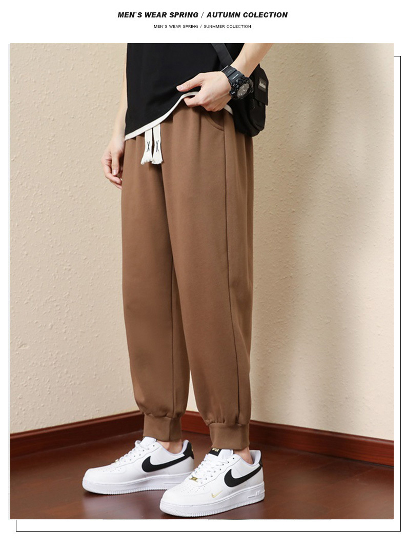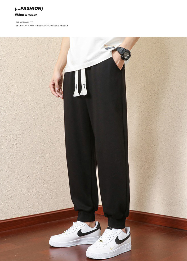 2023 여름 새로운 유행 남자의 단색 캐주얼 학생 바지 발목 길이 바지 플러스 사이즈 스포츠 캐주얼 바지스토어 가기