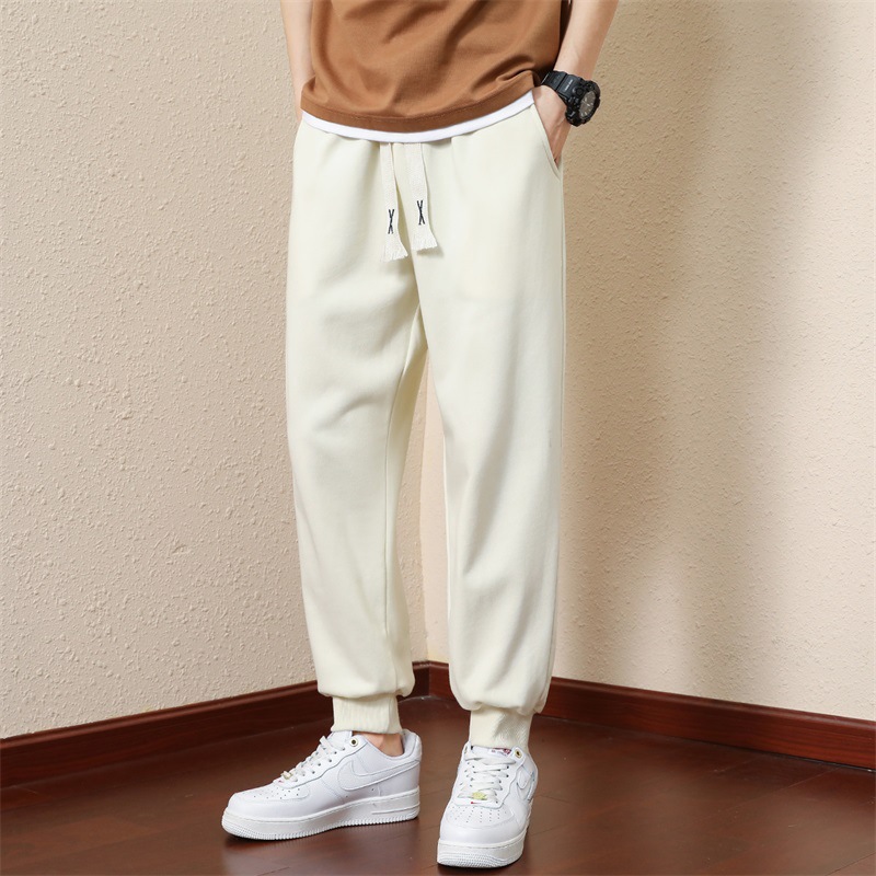 2023 여름 새로운 유행 남자의 단색 캐주얼 학생 바지 발목 길이 바지 플러스 사이즈 스포츠 캐주얼 바지