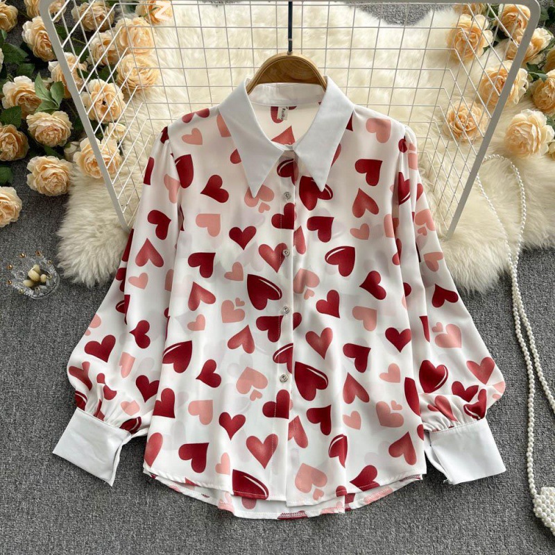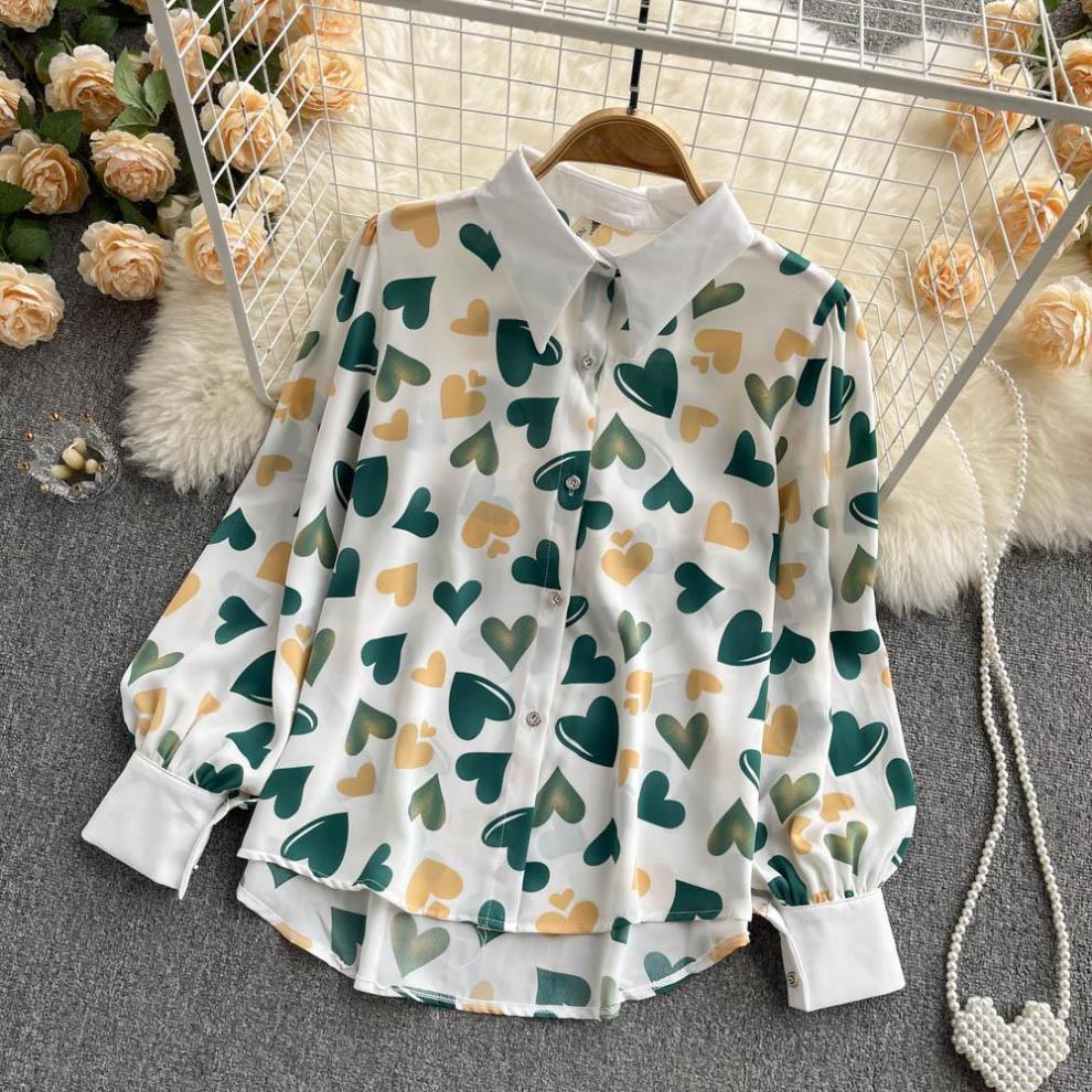 2025년 초특급 인기 셔츠, 봄 신상 여성복, 다용도 디자인, 유니크한 상의, 프린트 긴팔 쉬폰 셔츠, 트렌디스토어 가기