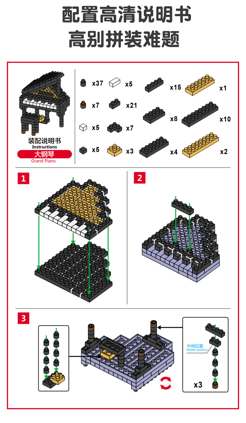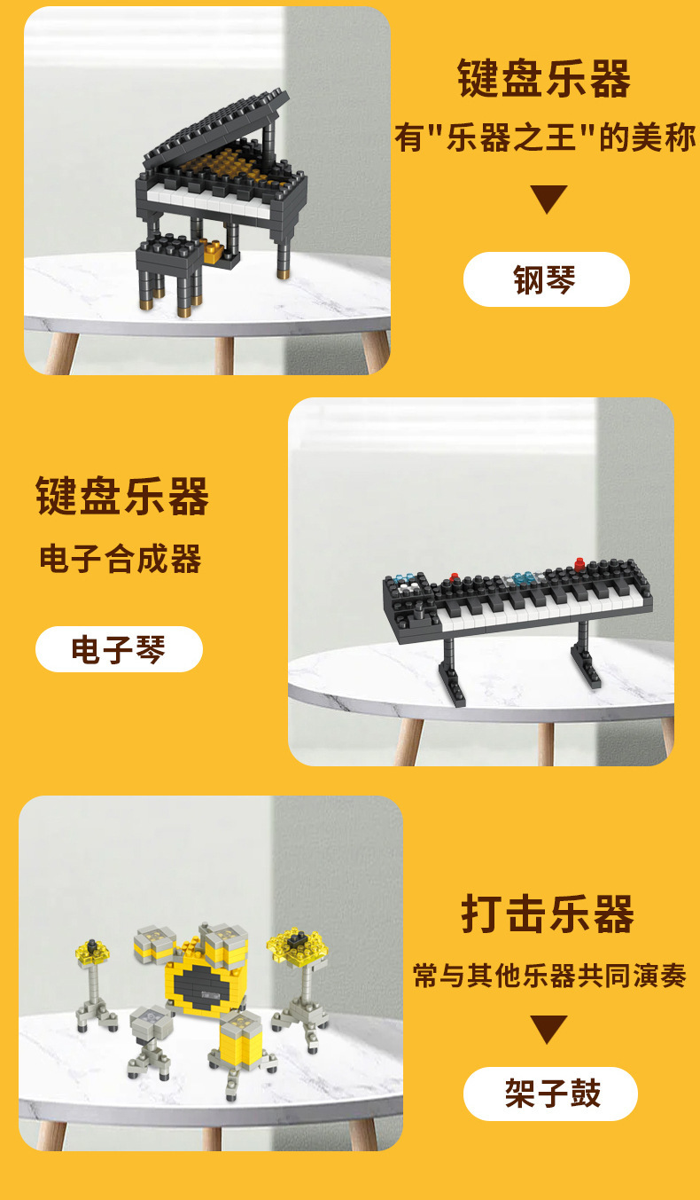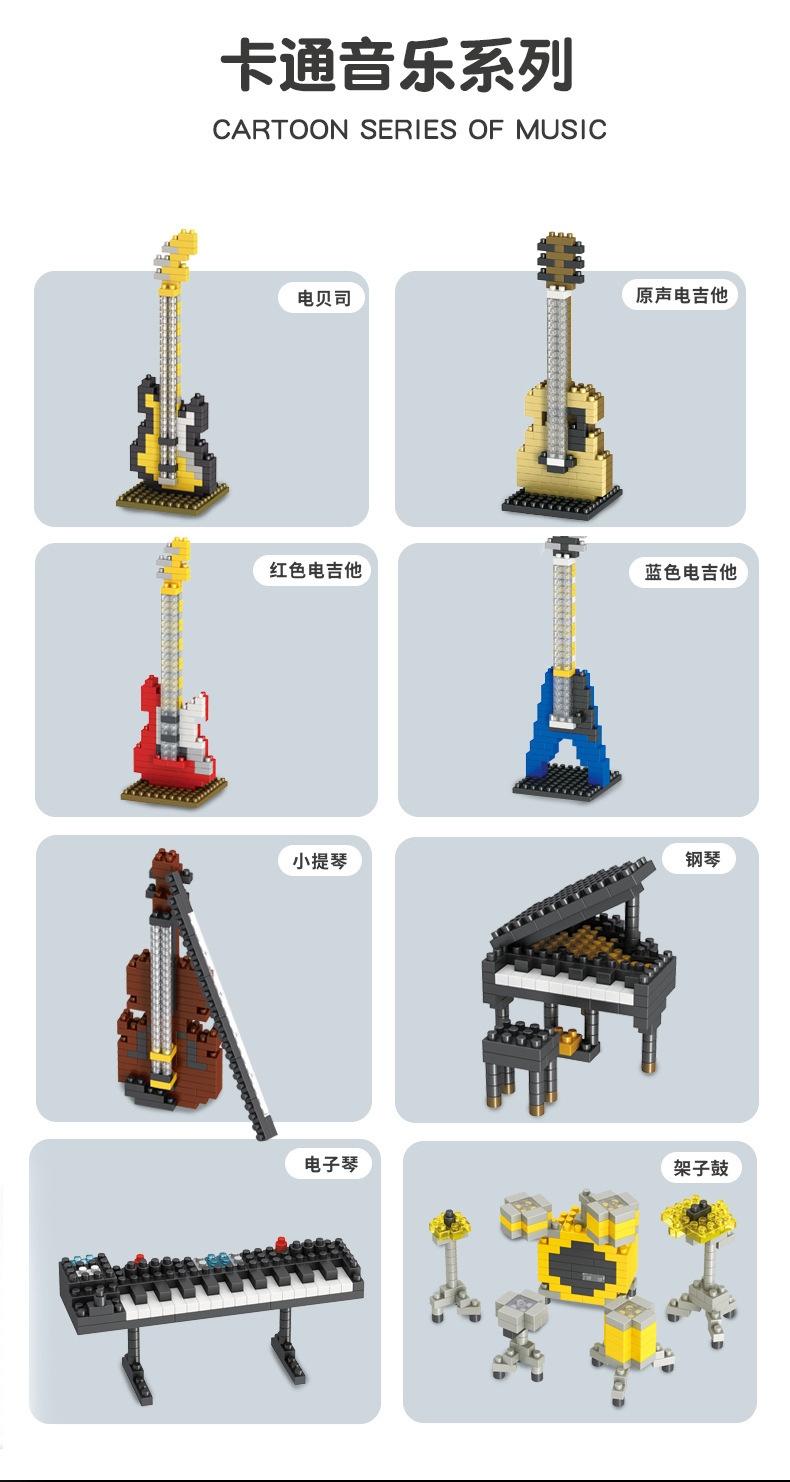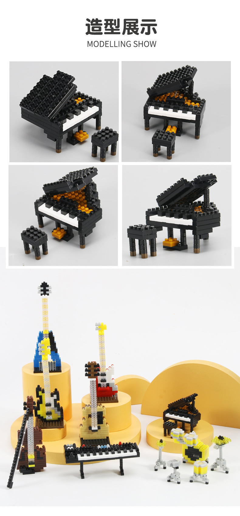 레고 빌딩 블록과 호환 음악 악기 피아노 기타 작은 선물 테이블 세트 작은 입자 어린이 교육 조립 완구스토어 가기