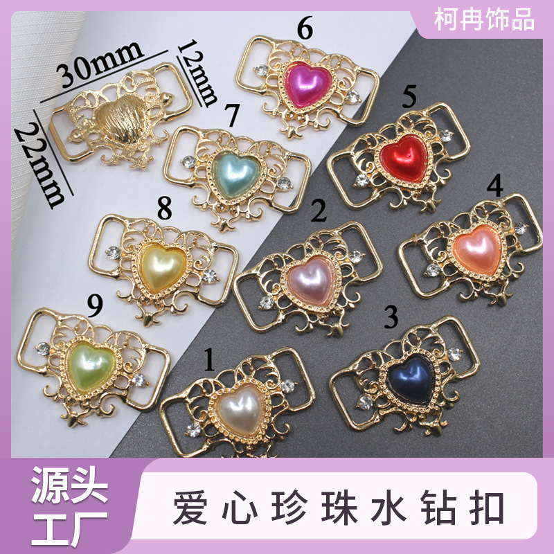 여러 가지 빛깔의 사랑 진주 모조 다이아몬드 버클 신발 버클 황금 비키니 수영복 장식 버클 브래지어 버클 DIY 수하물 액세서리