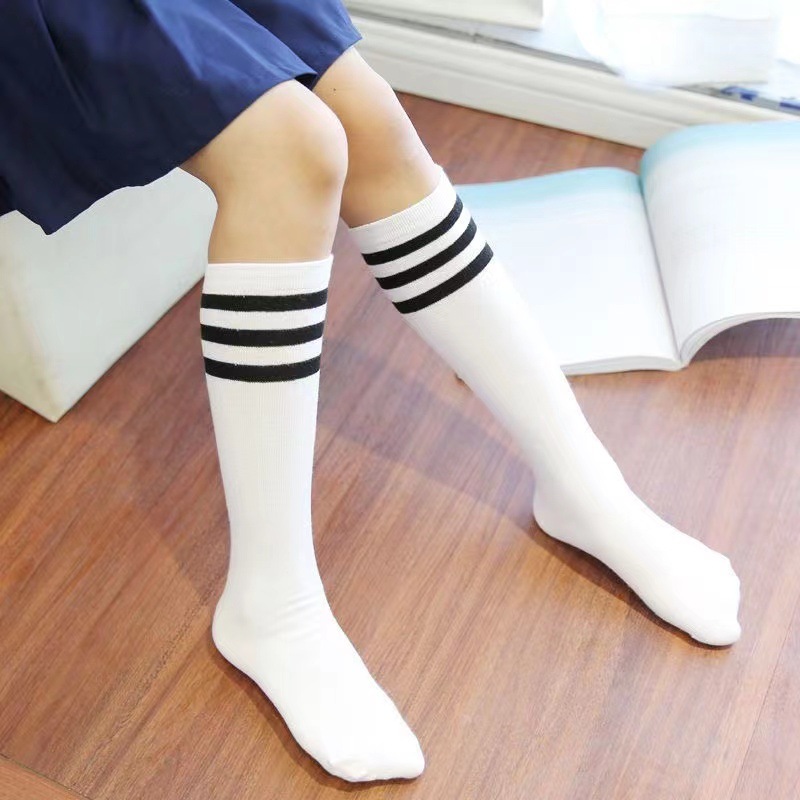 교복 화이트 3 바 양말 성능 스트라이프 튜브 양말 소년과 소녀 양말 성능 댄스 양말 축구 양말스토어 가기