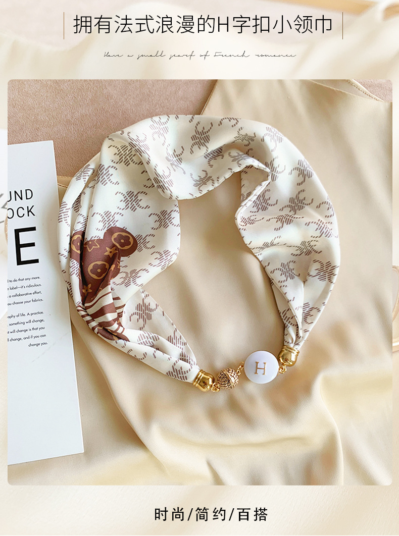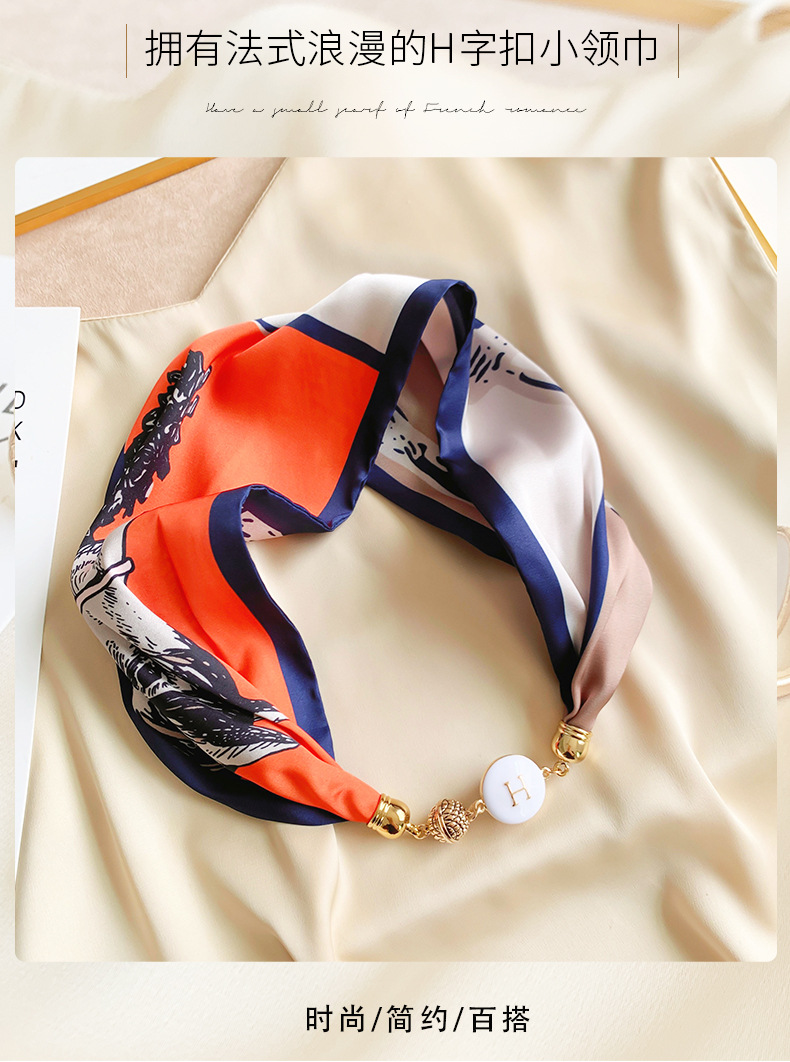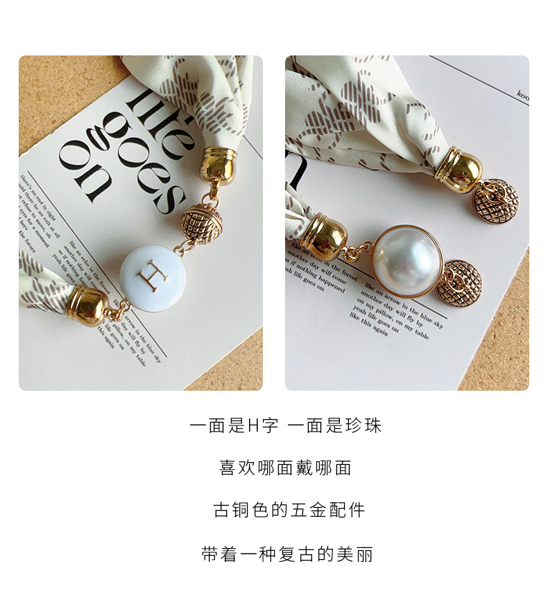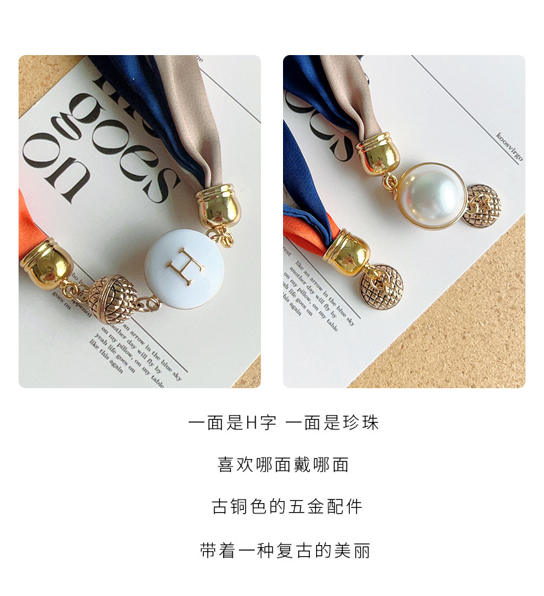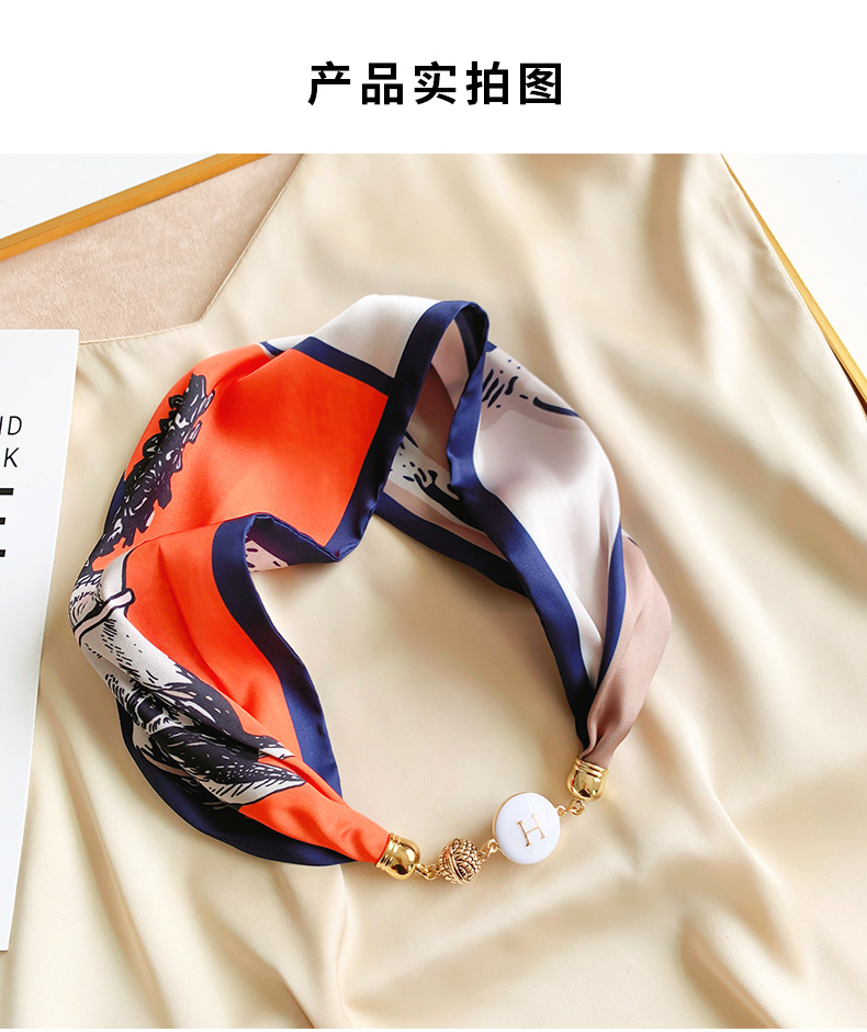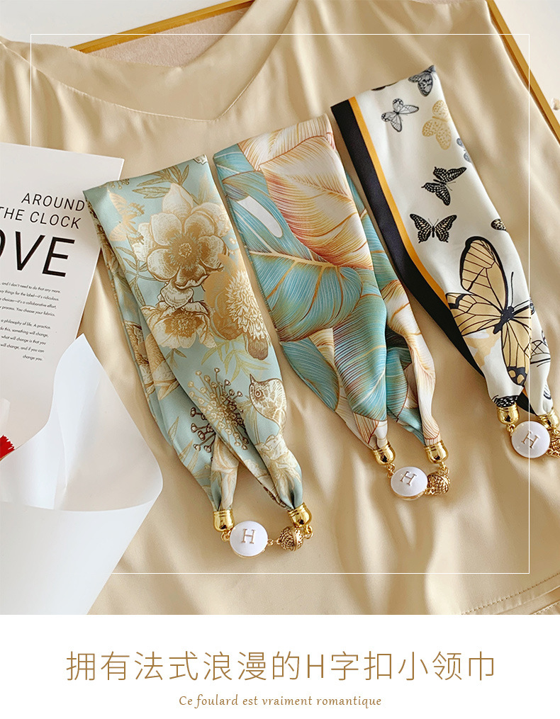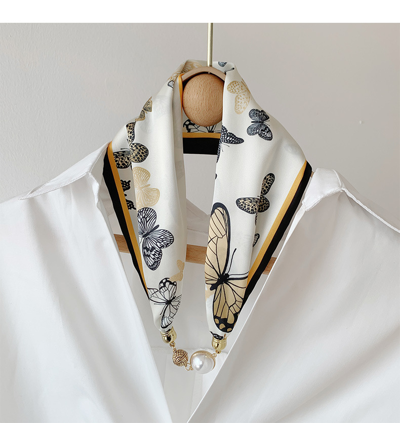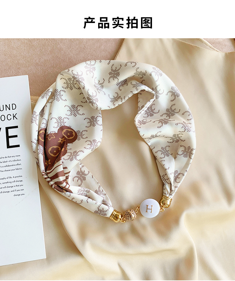 마그네틱 버클 실크 스카프 여성 진주 목걸이 게으른 장식 여름 2025 스카프 목 보호 장식 새로운 스카프 도매스토어 가기